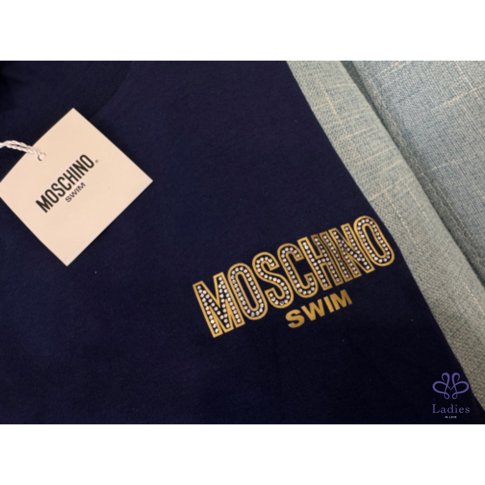 新款Moschino上衣,Moschino Logo 是水鑽縫製而成的非常精緻,這件深藍色超級美 ,喜歡的姐妹不要錯過了。