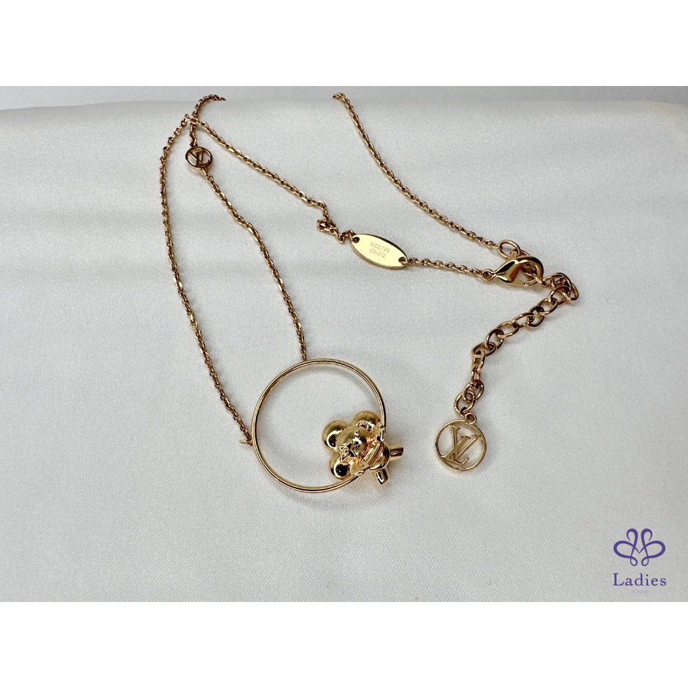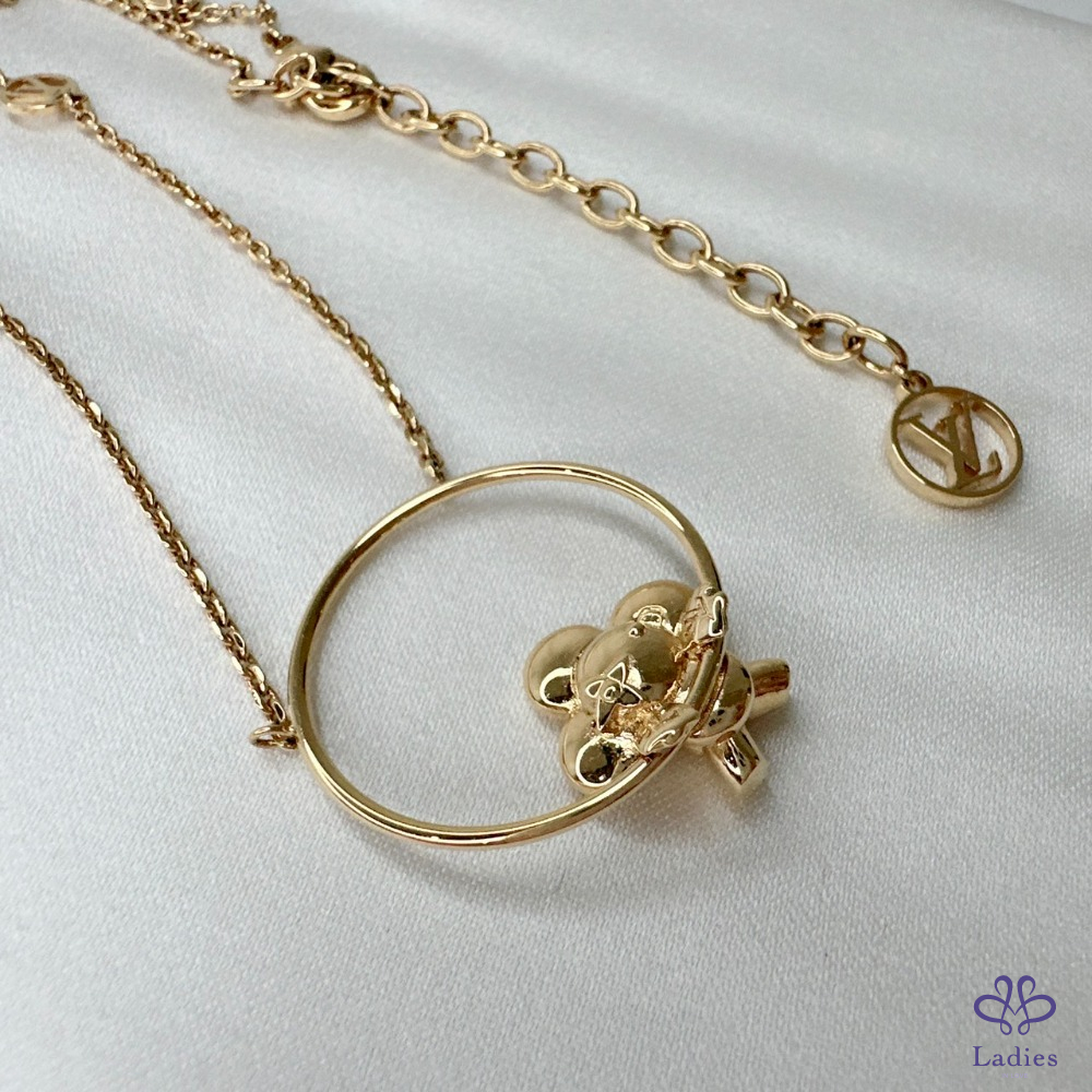 產品信息 【LV 吉祥物Vivienne項鏈】 這款Vivienne Swinging項鍊 飾有拋光金屬製成的大環形吊墜 並綴有俏皮的LV吉祥物Vivienne 明亮的圓圈懸掛在精緻的鏈條上,鏈條上飾有LV Circle裝飾 整體品項約9成7新,二手商品均有正常使用/存放痕跡 型號:M00799 尺寸:吊墜約2.5x2.8cm|鍊長約45cm 附件:原廠防塵袋 #A113030804