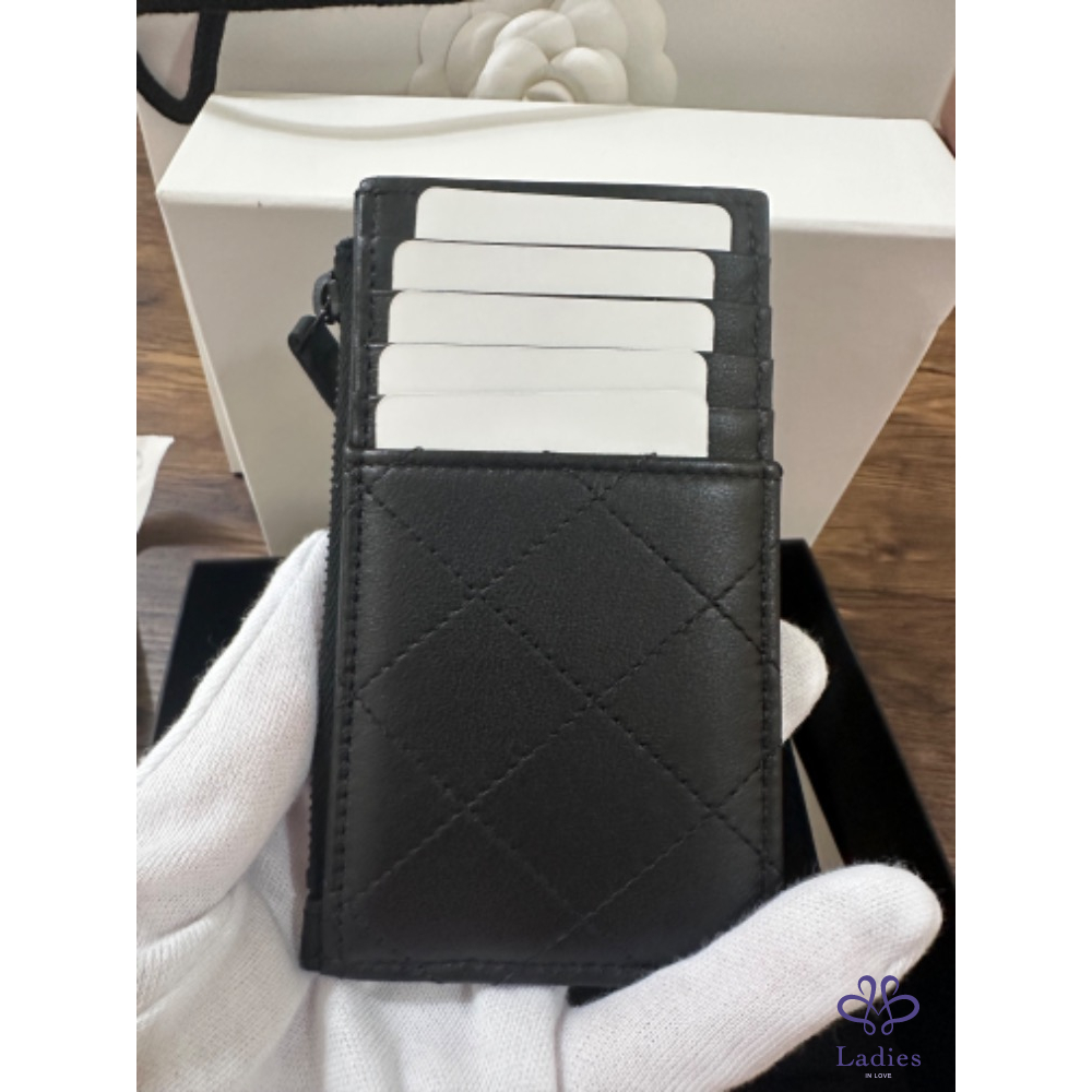 產品信息 Chanel All black 卡夾零錢包 - 全黑款 - 黑釦 - 全新全配 - 6卡夾層 最實用方便的就屬薄卡夾 不佔小包容量又實用 還能放零錢,一包搞定 全配附:白盒、緞帶、紙袋、防塵袋、購證影本去個資 台北新竹台中可面交 可郵寄、店到店、宅配