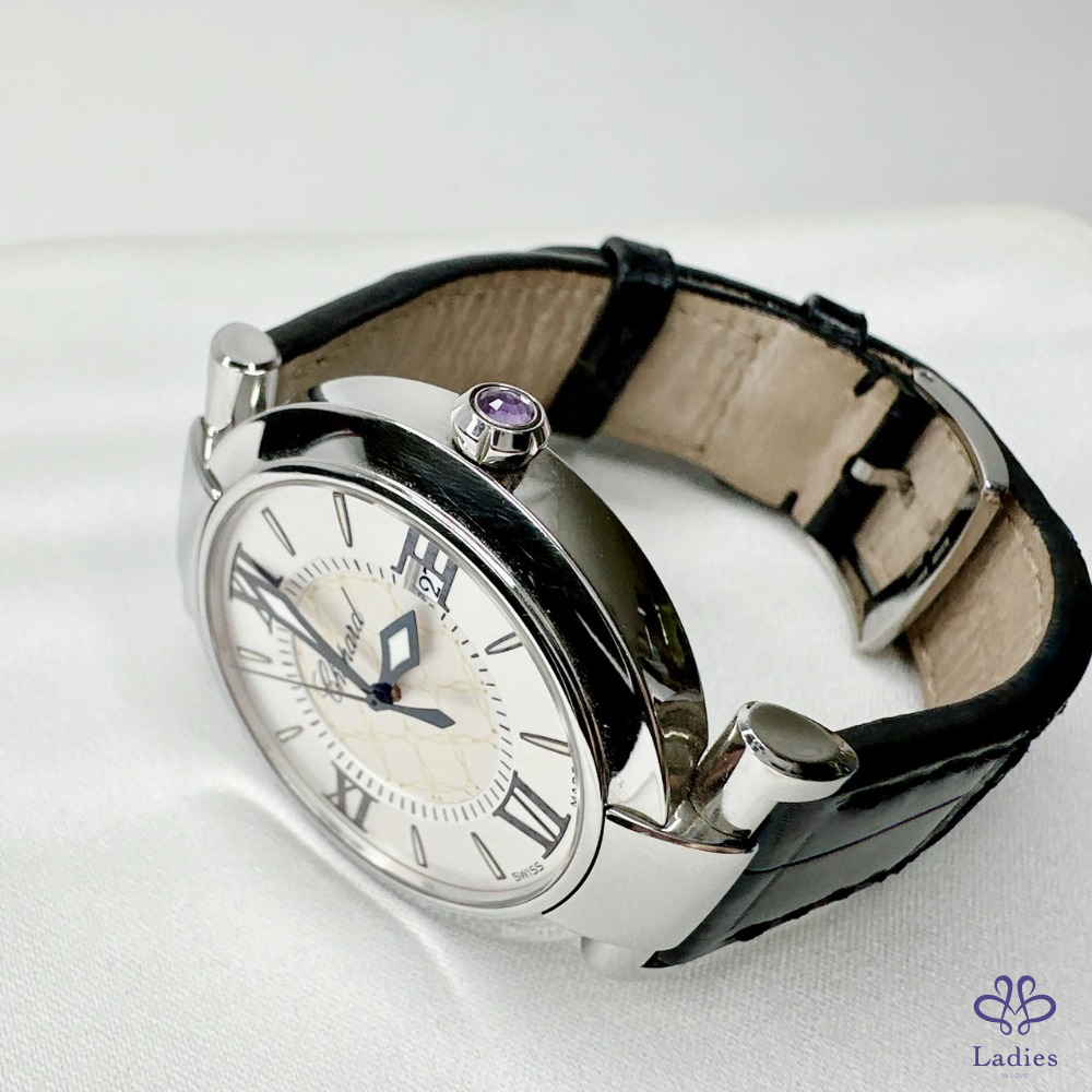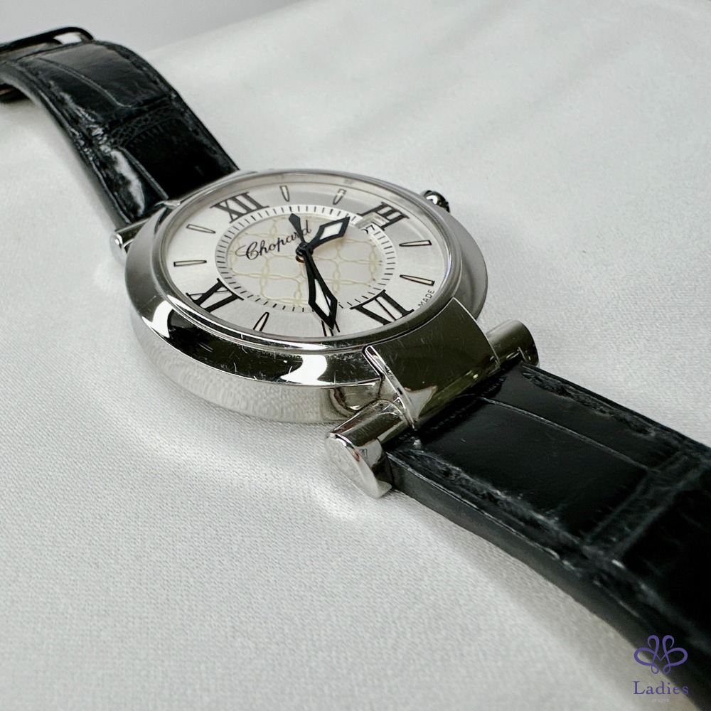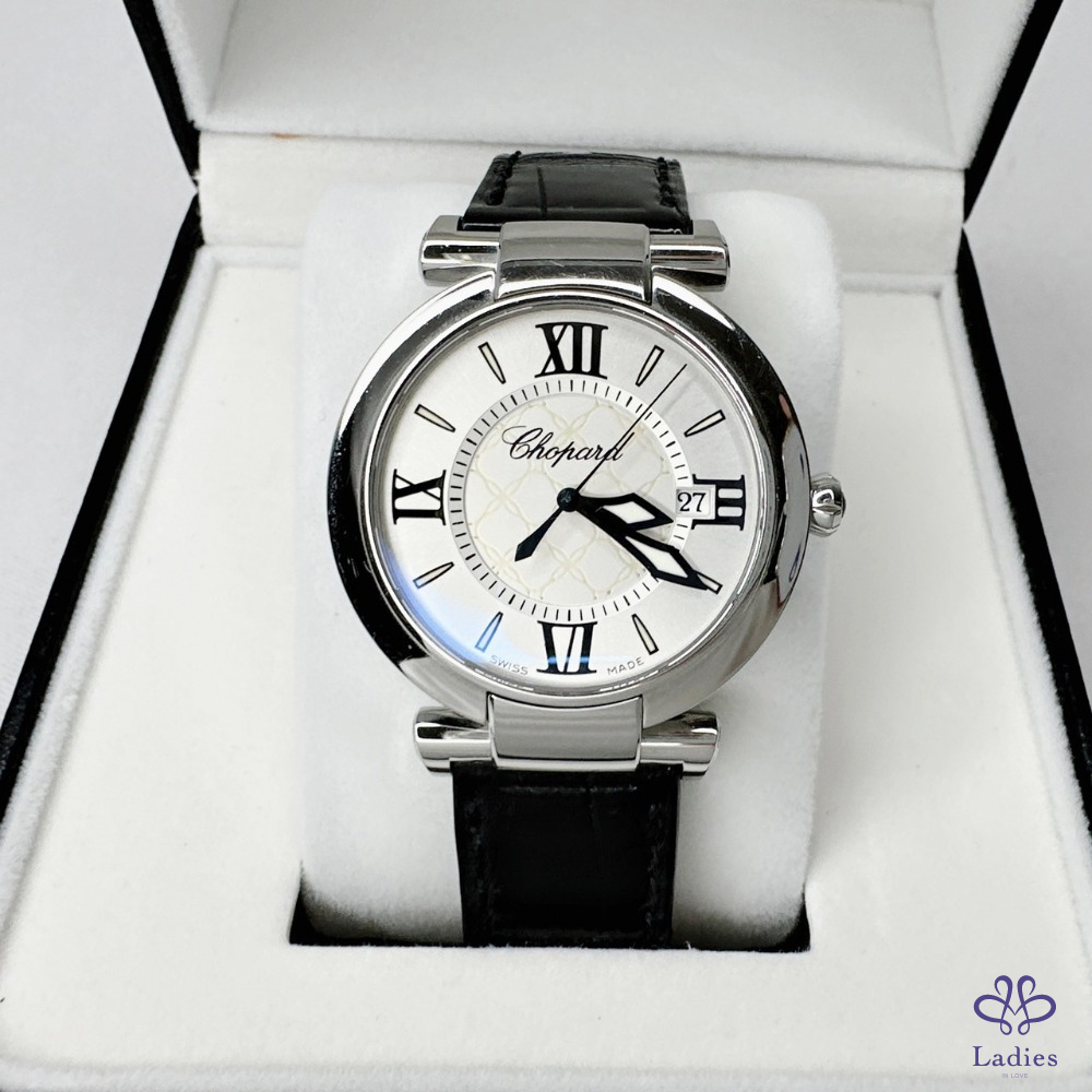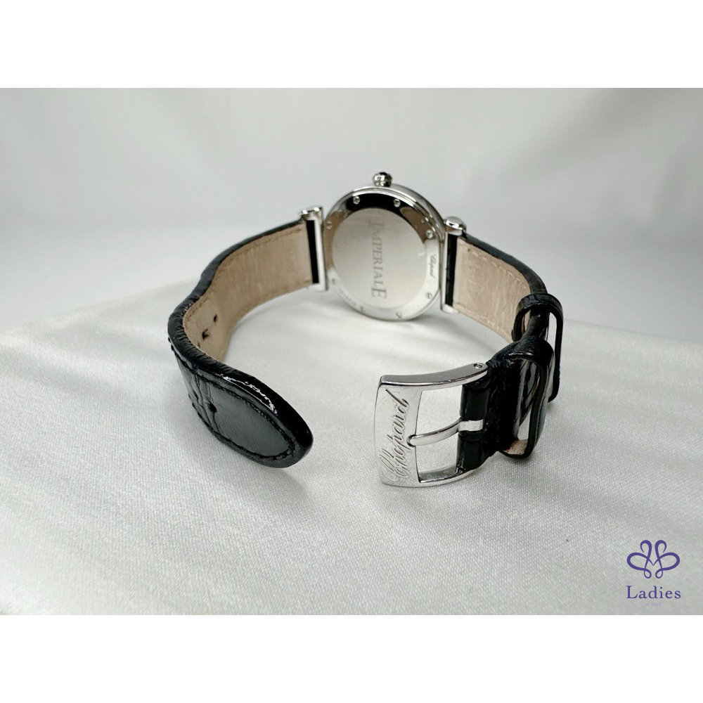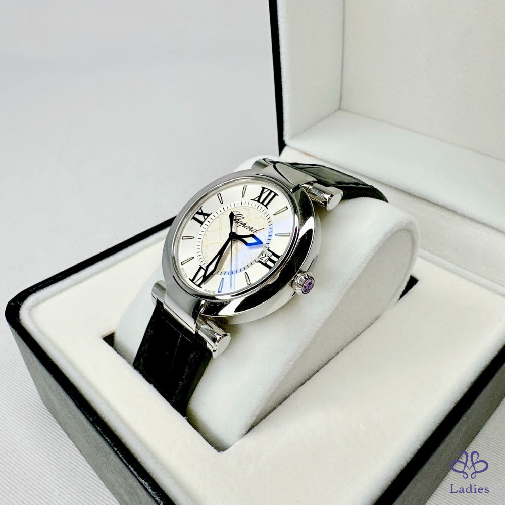 產品信息 【Chopard 蕭邦Imperiale石英腕錶】 #櫃上價約18萬 日期功能 / 皮革錶帶 瑩白色珍珠面盤 / 藍寶石玻璃鏡面 劍形指針和羅馬時標,蓮花形錶冠鑲嵌紫水晶 整體品項新舊如圖,二手商品均有正常使用/存放痕跡 型號:388532-3001 錶徑:36mm 附件:精美錶盒 #A113060803