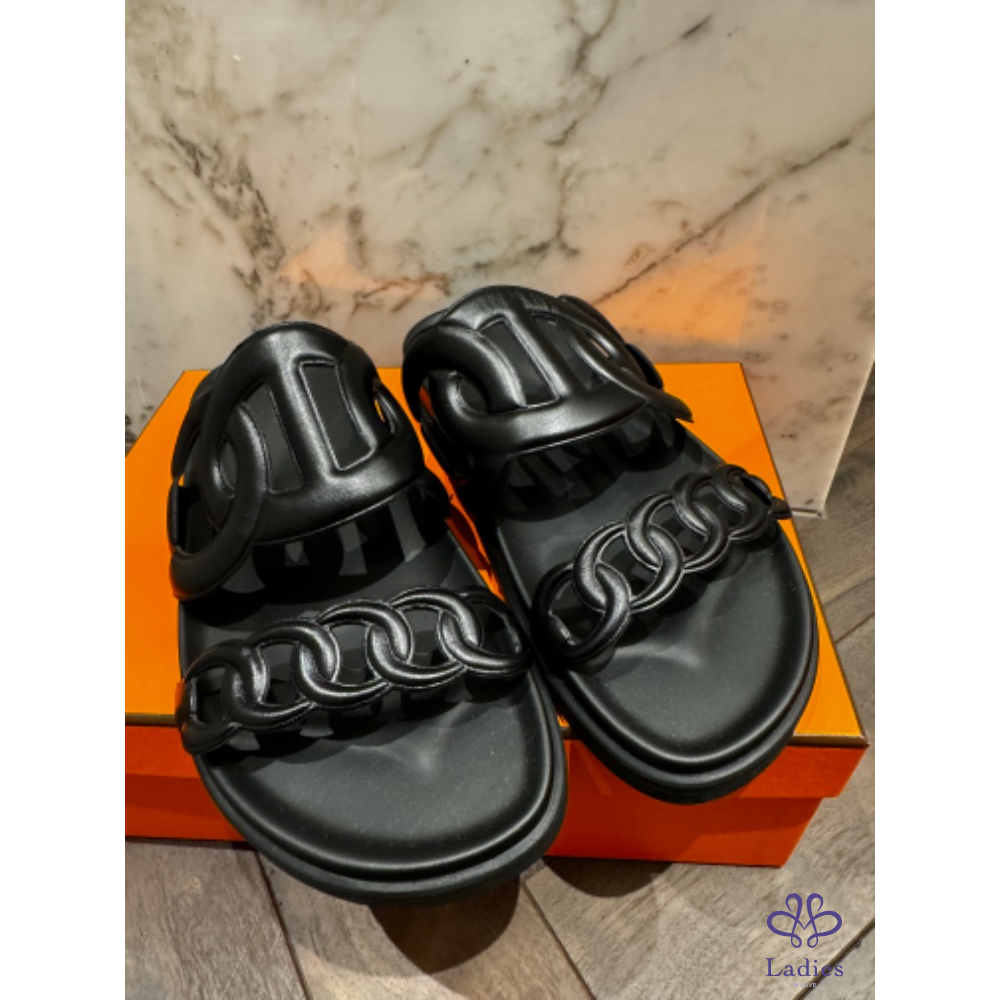 產品信息 A006077 全新????????Hermès 豬鼻子二舅拖 黑色豬鼻好顯白 版小建議38-38.5or 39腳瘦 尺寸:39 售 25800含運 不議價 附件:美國購證影本、橘盒、緞帶、紙袋 台北市面交 訂金3000 亂議價大刀不會回、已讀不回者勿來。 高標勿入 售出不退。 使用官網交易安全又便利