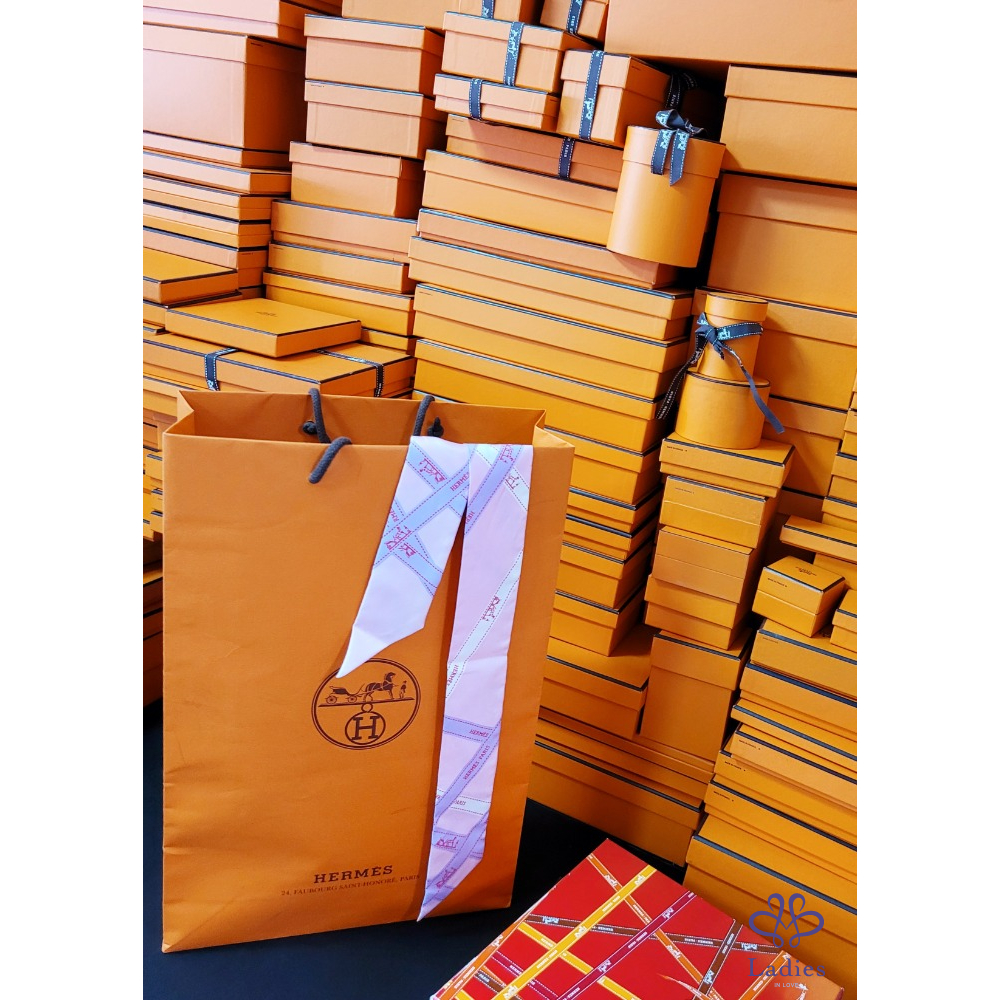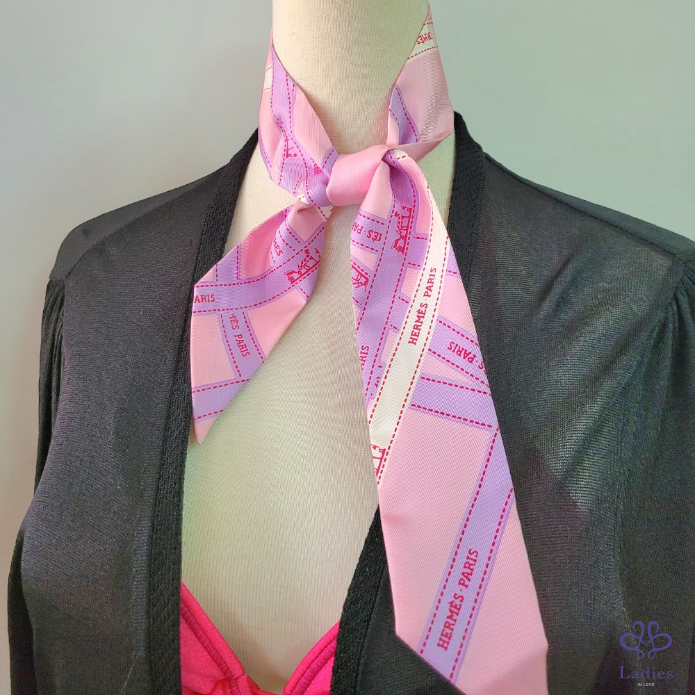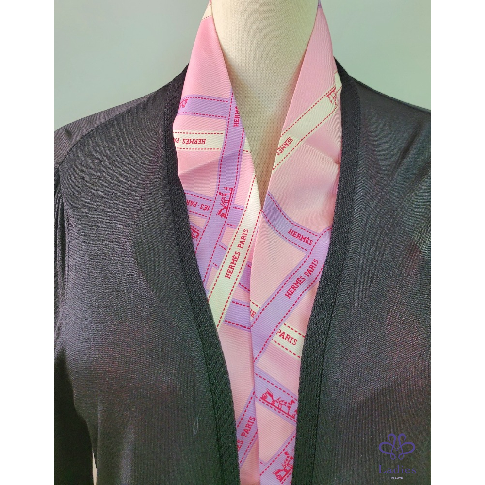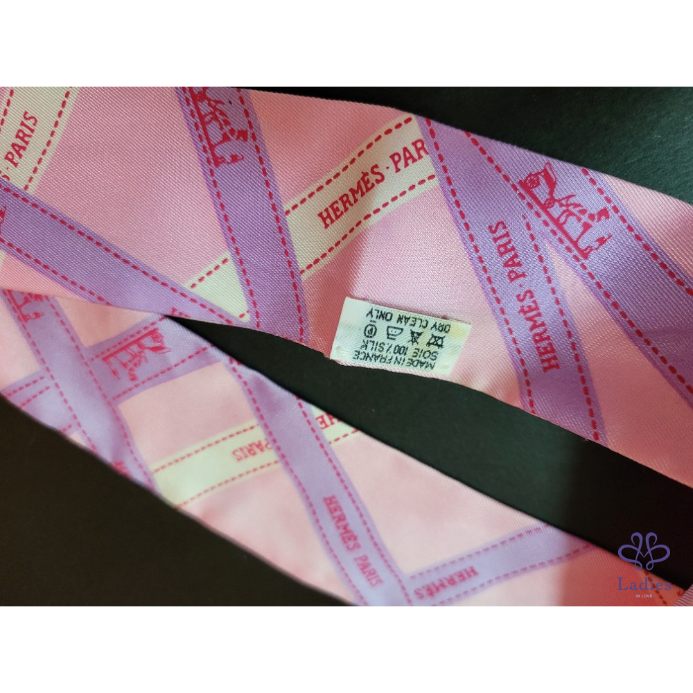 ~HERMES TWILLY 未使用品 附原廠盒 粉色織帶圖案絲巾