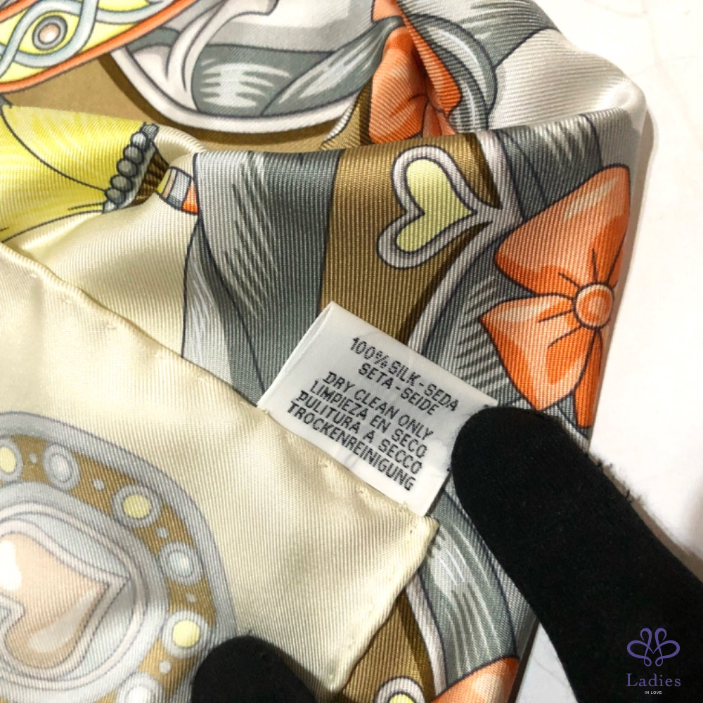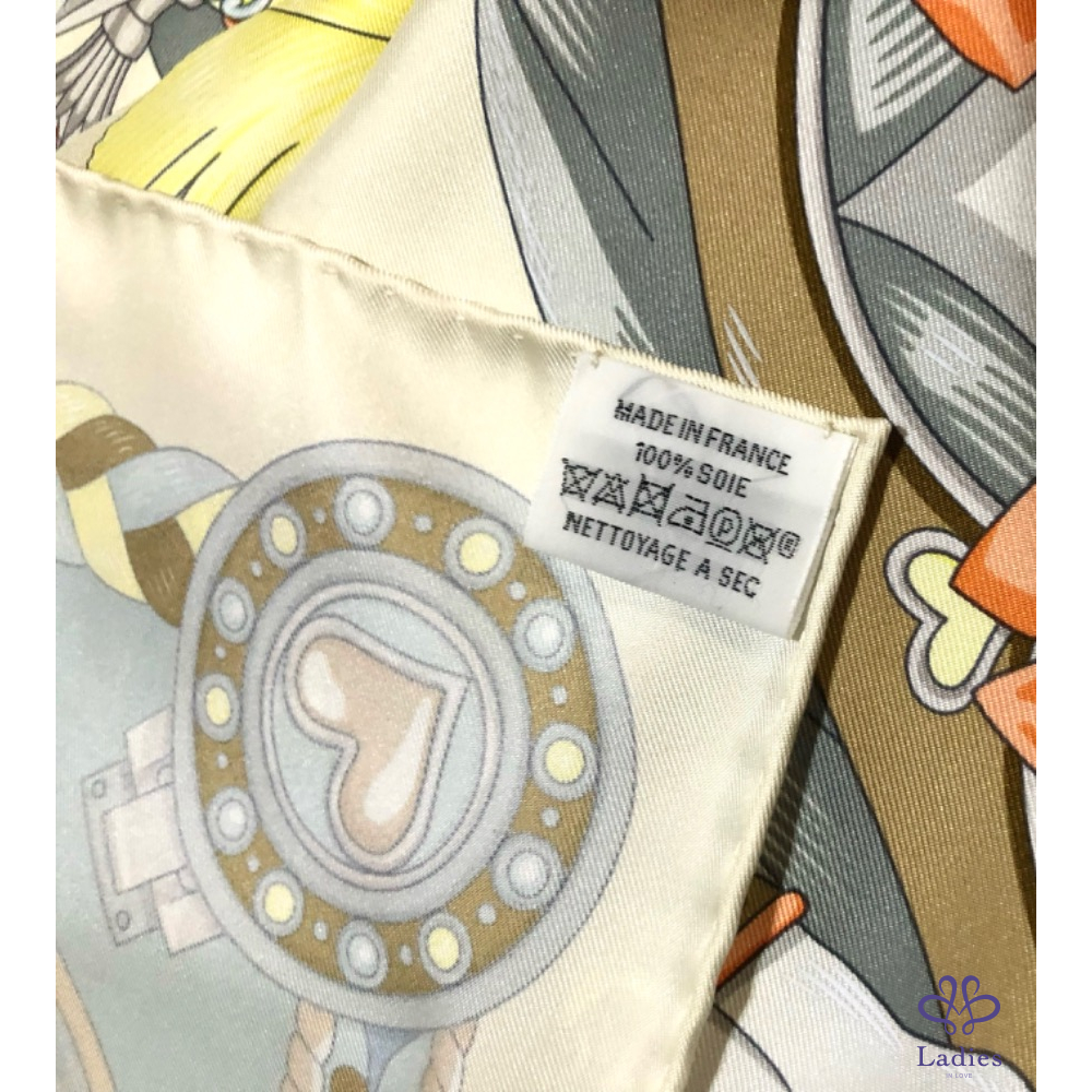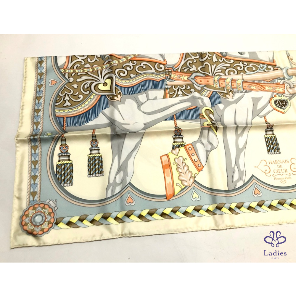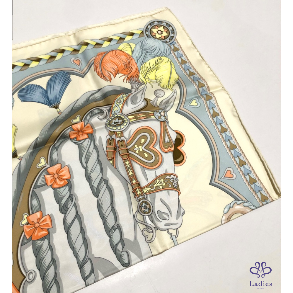Hermes 愛馬仕 Harnais de Coeur 甜蜜馬鞍 奶油色 / 灰色 珍珠白 / 杏桃色 90x90cm 絲巾方巾