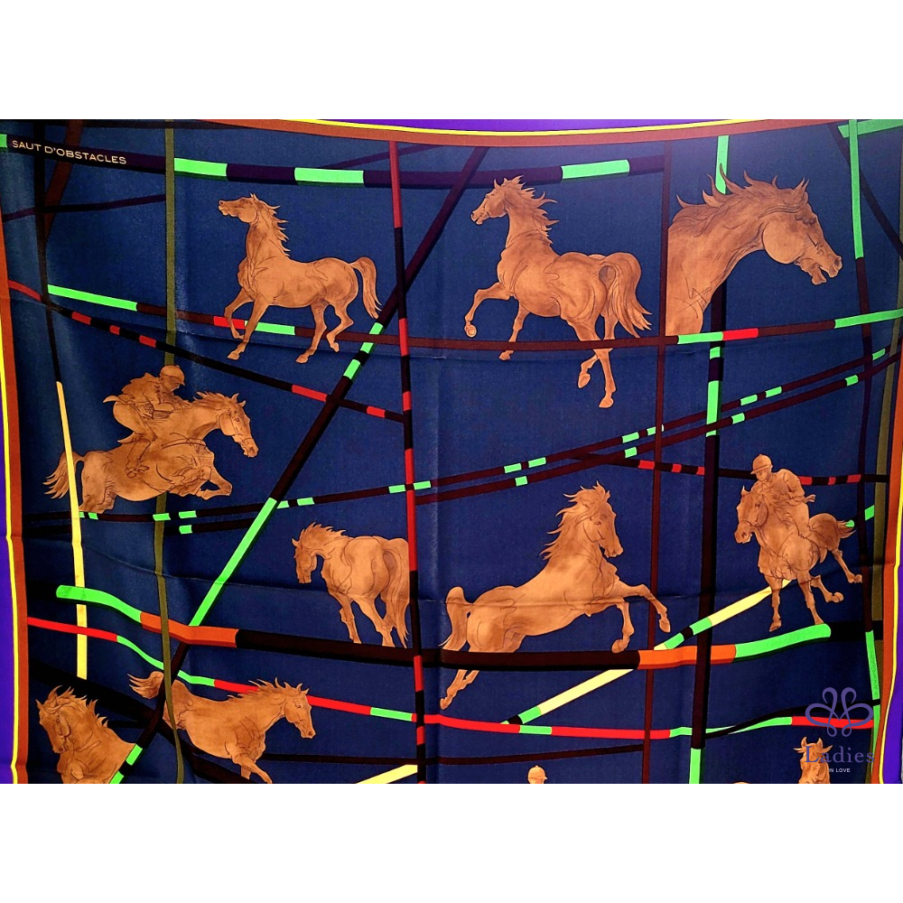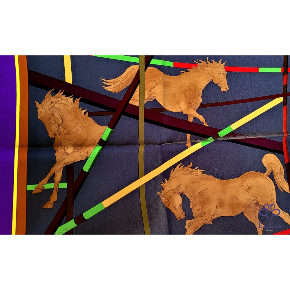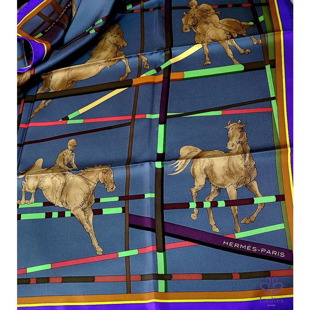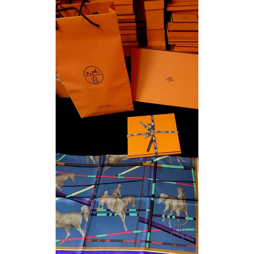 ~HERMES 極新極美 馬跨欄圖案絲巾