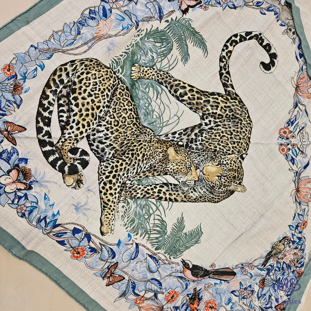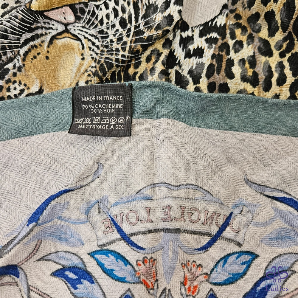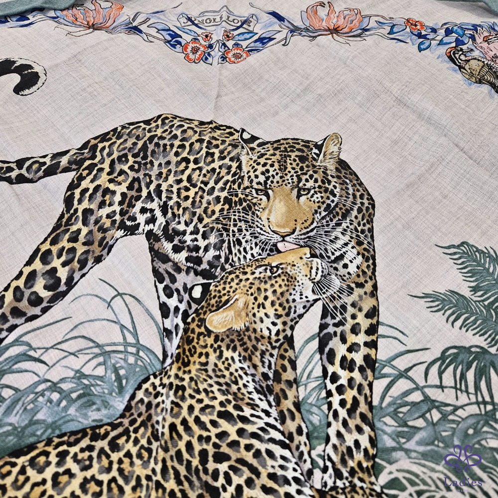 產品信息 售 全新 Hermès 三角羊絨圍巾 Jungle Love [#Ada在寵愛] 售價 : 25800元 含郵寄 入手價:台灣愛馬仕專櫃購入,入手價超過30000元 使用狀況:未使用過,實際狀況如照片。 材質: 30 % Silk + 70% cashmere 尺寸:94x188cm 附件:紙盒、購證電子檔 三角羊絨圍這個尺寸真的需要大力推薦,Jungle Love 非常經典,這個配色的豹的顏色貼近原來的顏色,兩邊有花朵點綴非常美麗