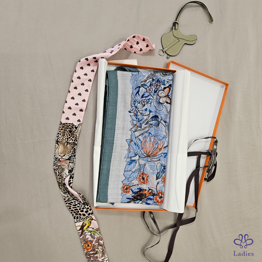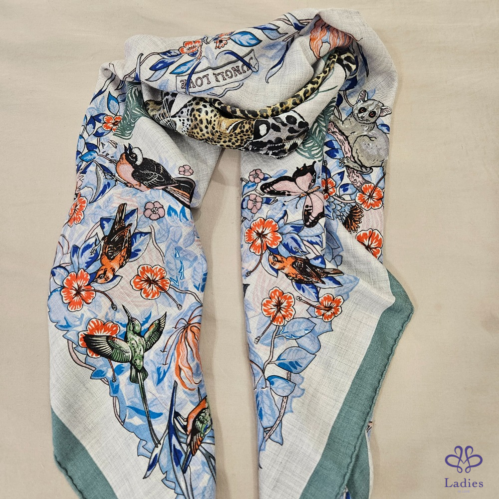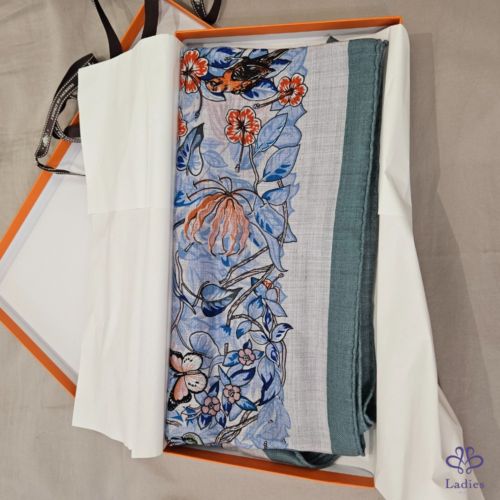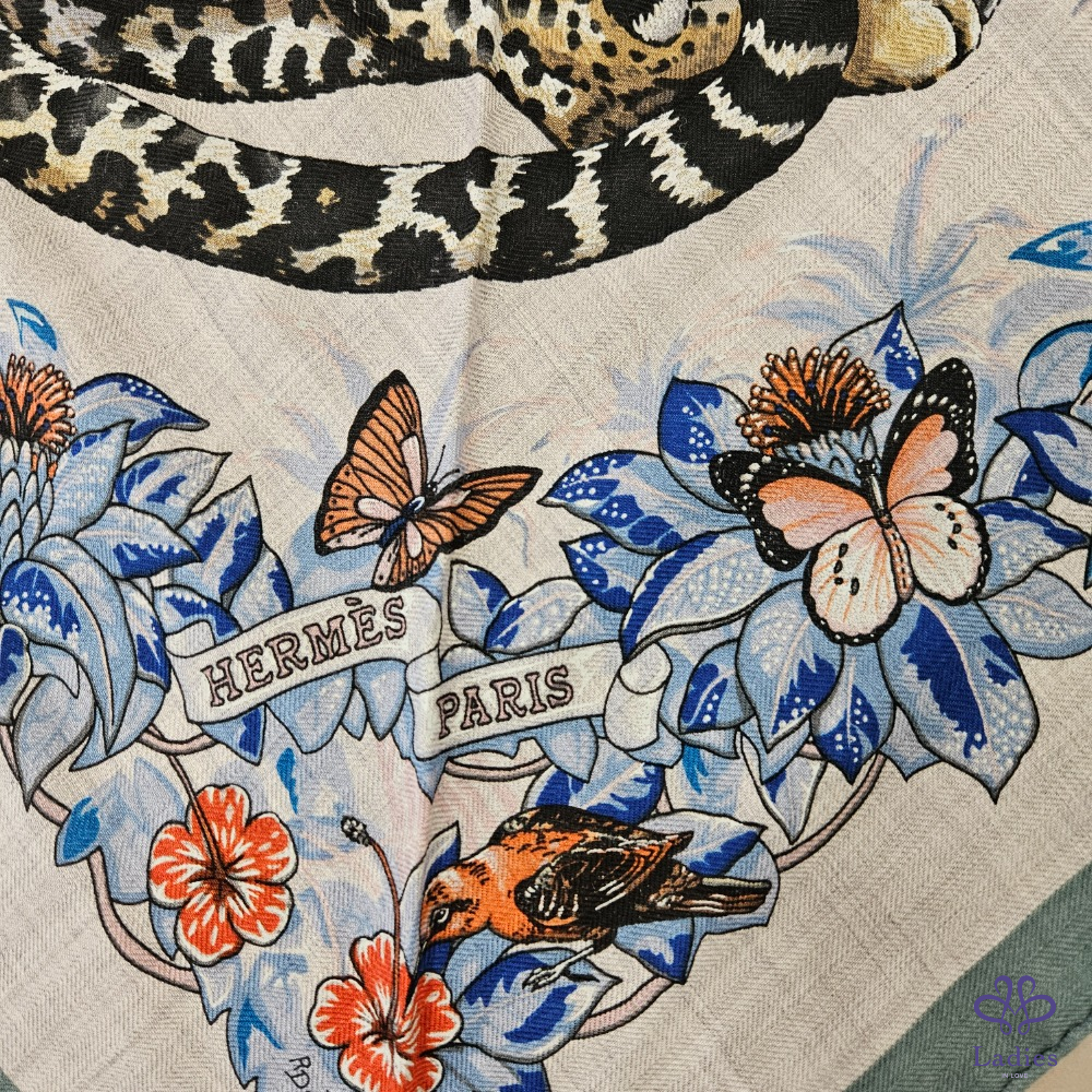 產品信息 售 全新 Hermès 三角羊絨圍巾 Jungle Love [#Ada在寵愛] 售價 : 25800元 含郵寄 入手價:台灣愛馬仕專櫃購入,入手價超過30000元 使用狀況:未使用過,實際狀況如照片。 材質: 30 % Silk + 70% cashmere 尺寸:94x188cm 附件:紙盒、購證電子檔 三角羊絨圍這個尺寸真的需要大力推薦,Jungle Love 非常經典,這個配色的豹的顏色貼近原來的顏色,兩邊有花朵點綴非常美麗