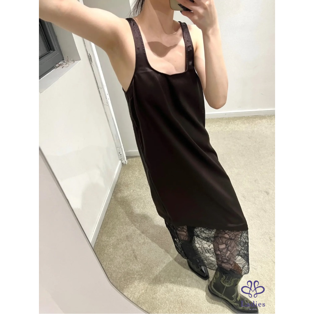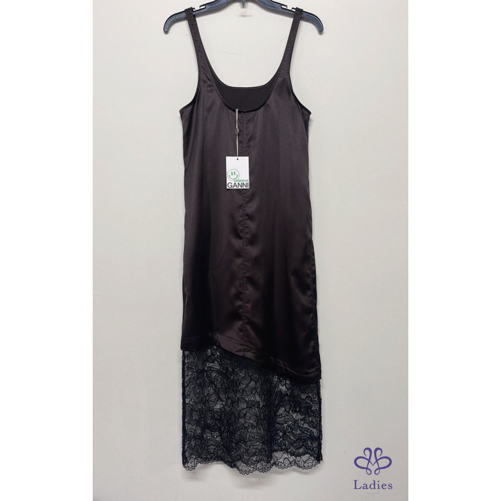 全新超美GANNI緞面蕾絲拼接洋裝