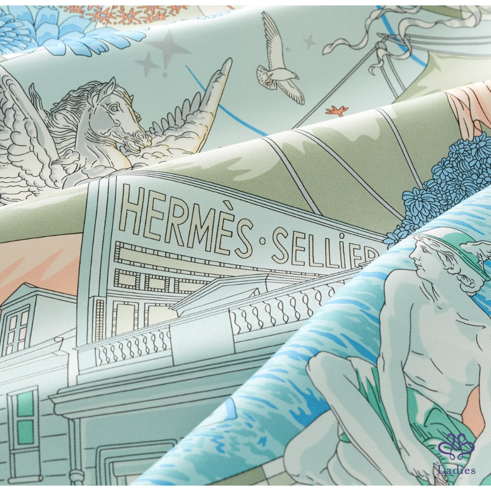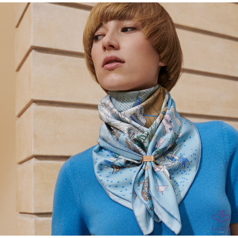 Hermes 愛馬仕旗艦 天空藍 / 灰綠色 / 粉色 90 x 90 cm 方巾 絲巾 全新✨
