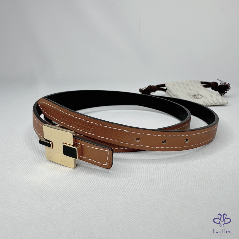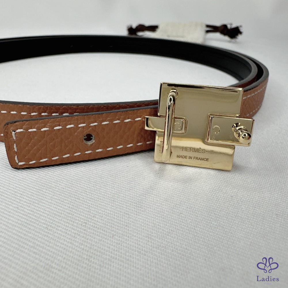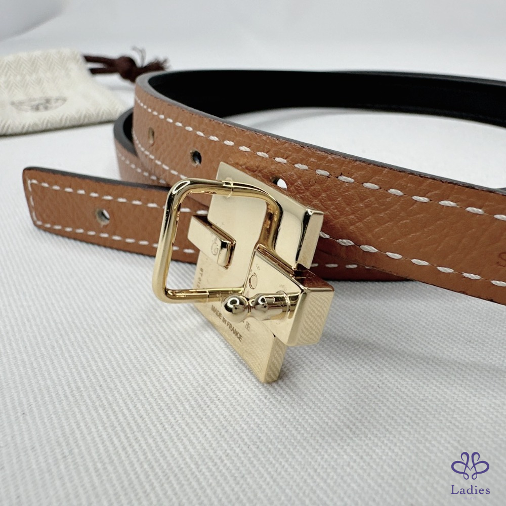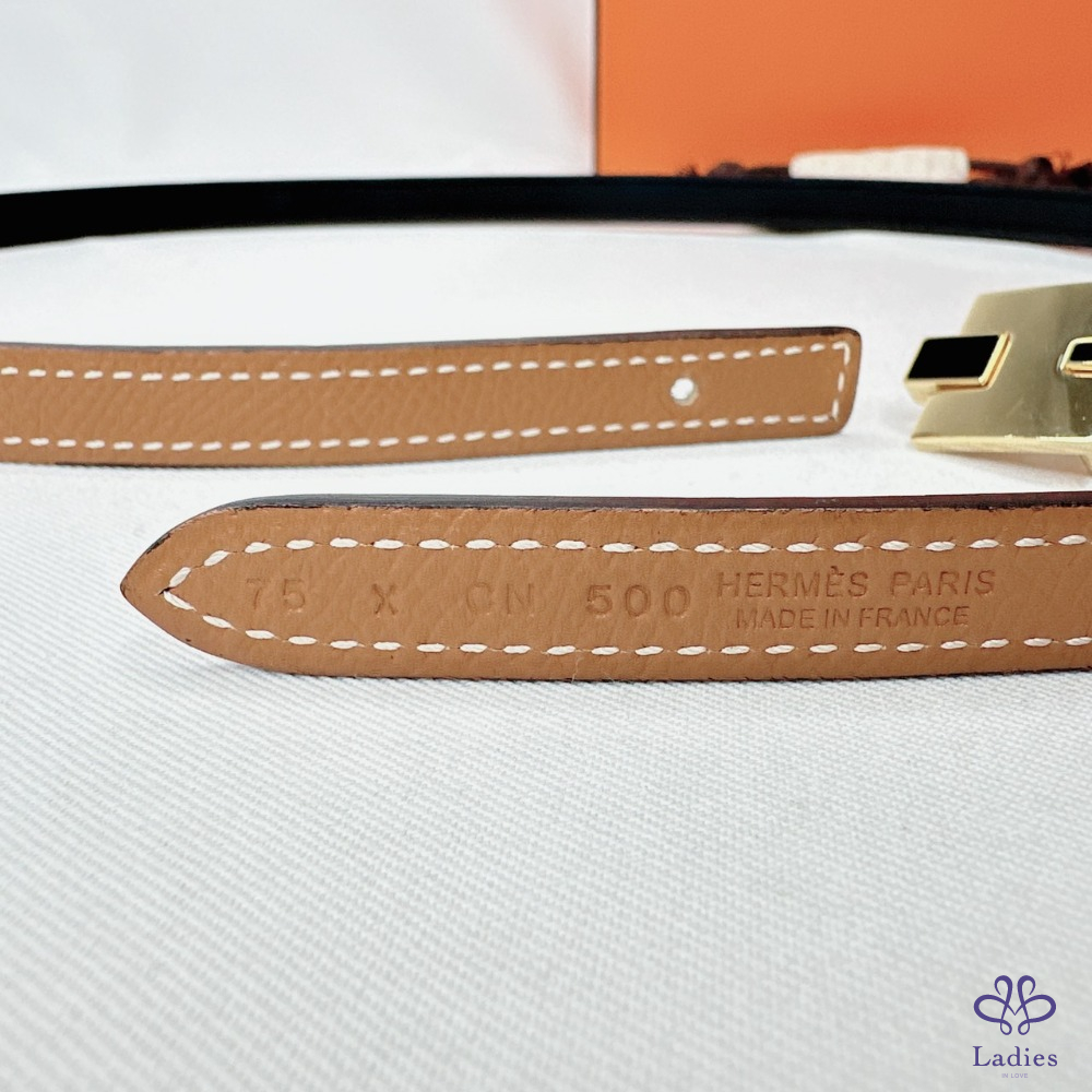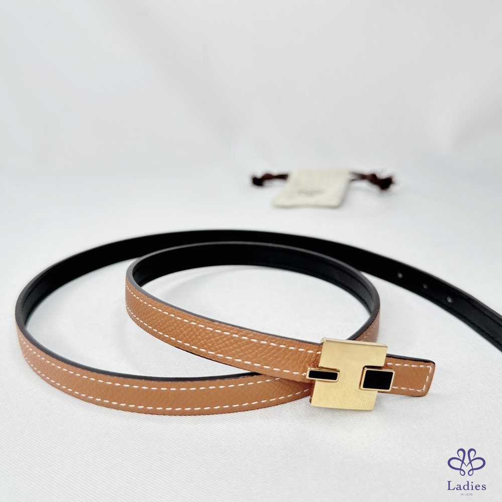 產品信息 【HERMES H 12雙面皮腰帶】 Epsom小牛皮腰帶,搭配鍍鈀金屬扣頭 細窄版最能展現柔美風格 適合搭配各式大衣裙裝褲裝 整體品項新舊如圖,二手商品均有正常使用/存放痕跡 尺寸:75 寬度:12mm 附件:原廠盒、金屬扣防塵袋 #B113062003