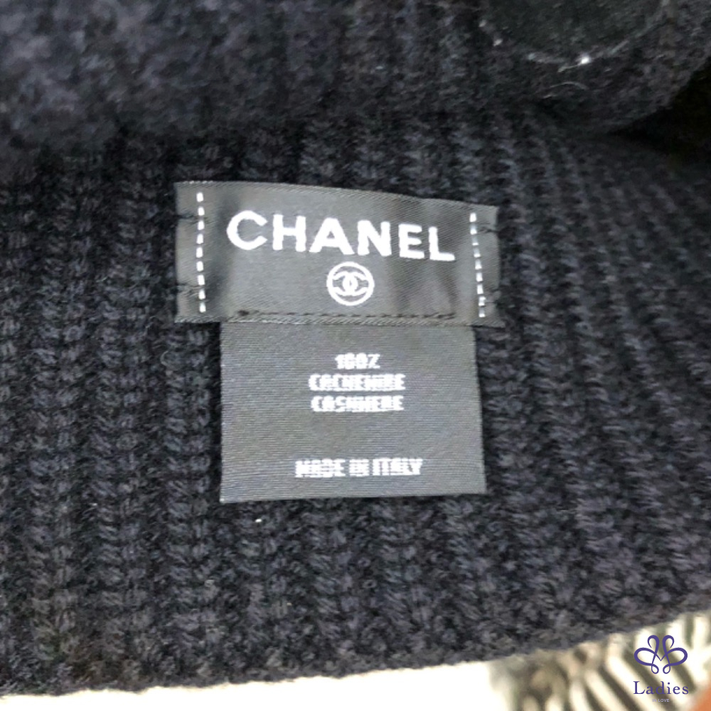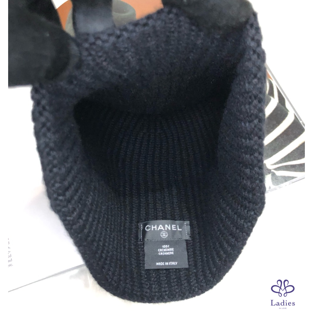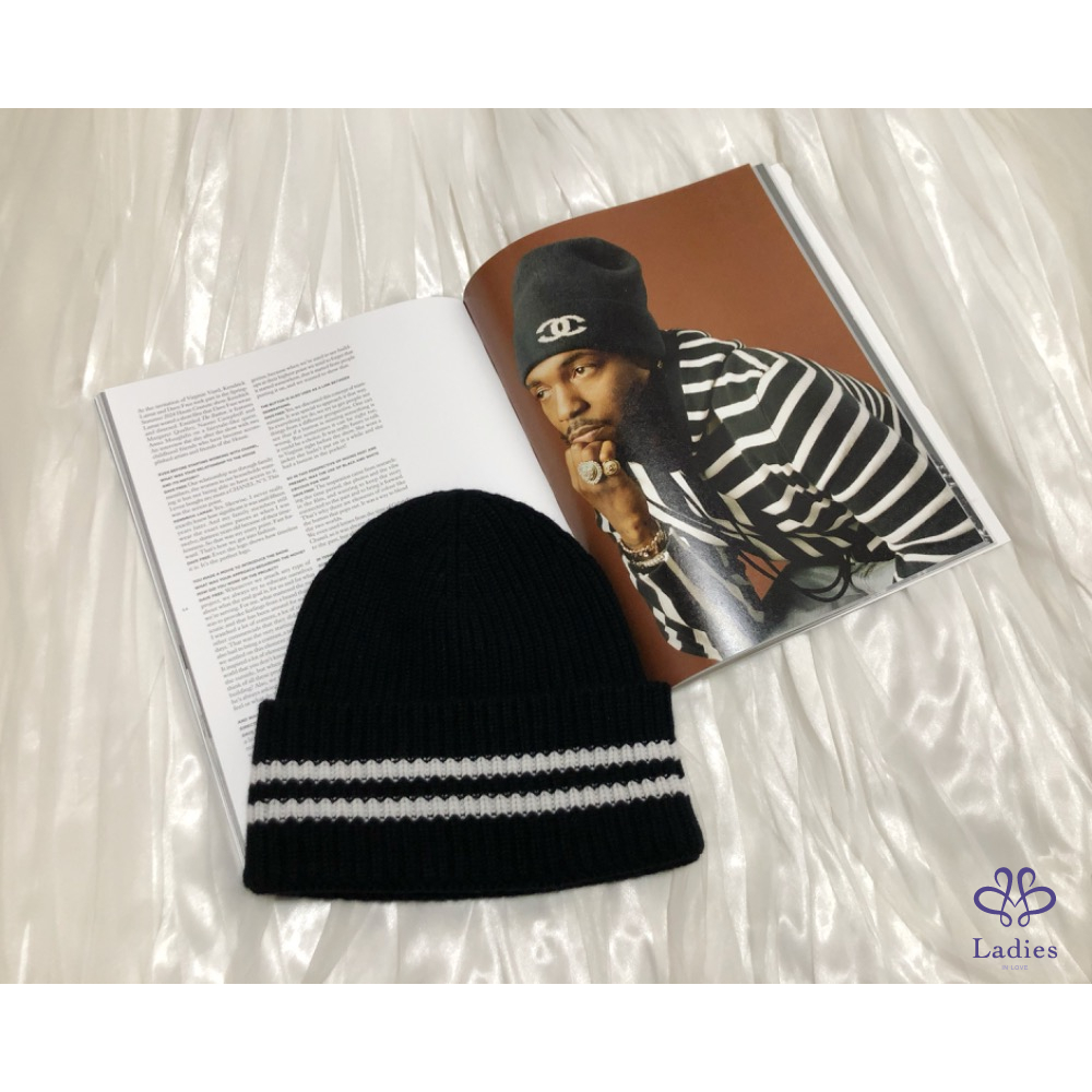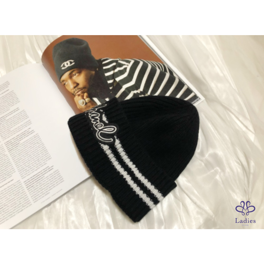 CHANEL 香奈兒 小香 24B 黑色 字母草寫 條紋 羊毛 毛帽 全新✨