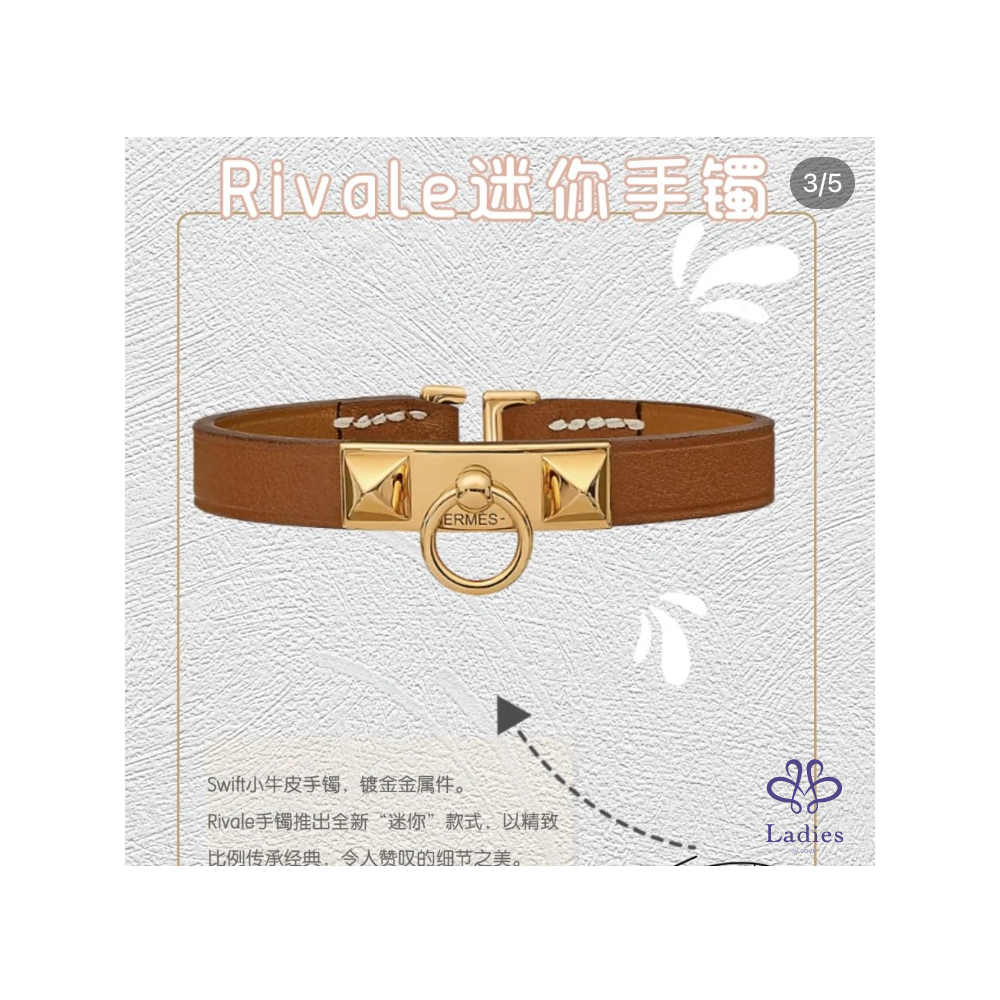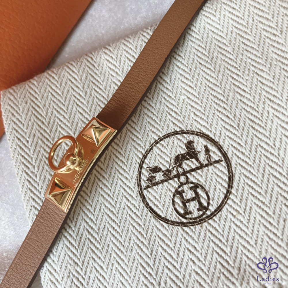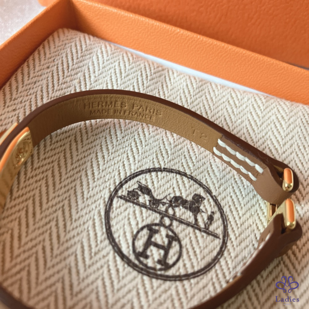 Hermes愛馬仕Mini Rivale 手環 金棕 T2 xW刻 |巴黎購證x全配