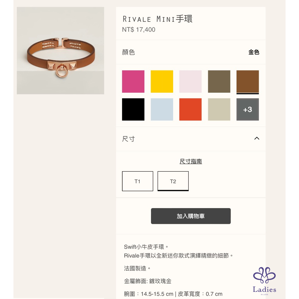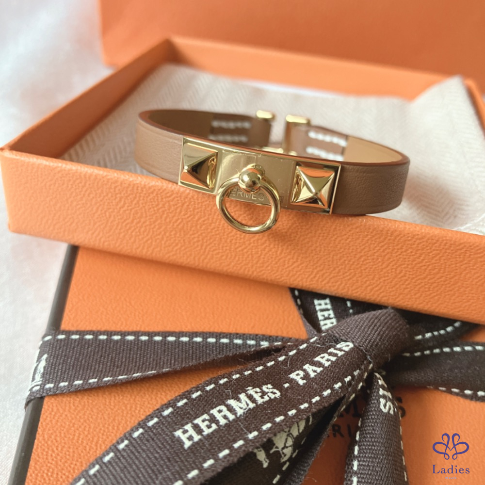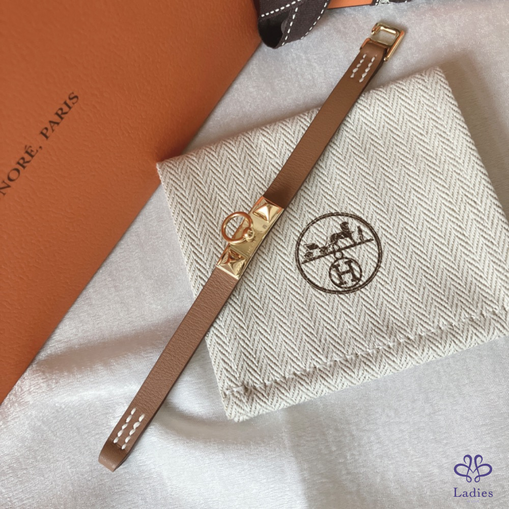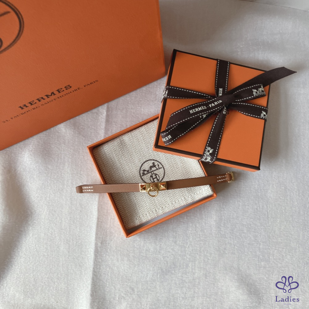 Hermes愛馬仕Mini Rivale 手環 金棕 T2 xW刻 |巴黎購證x全配