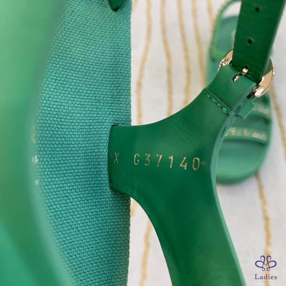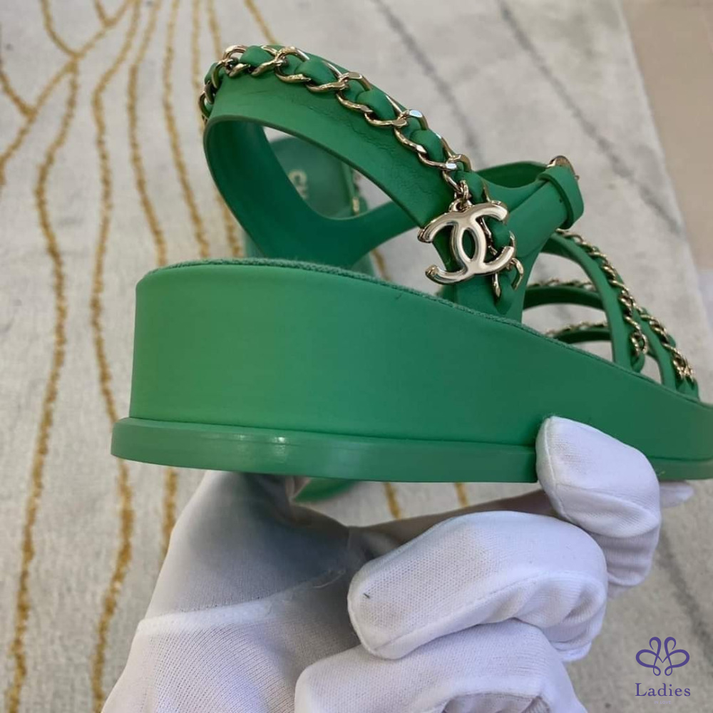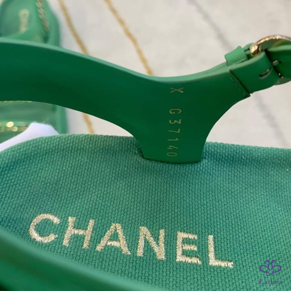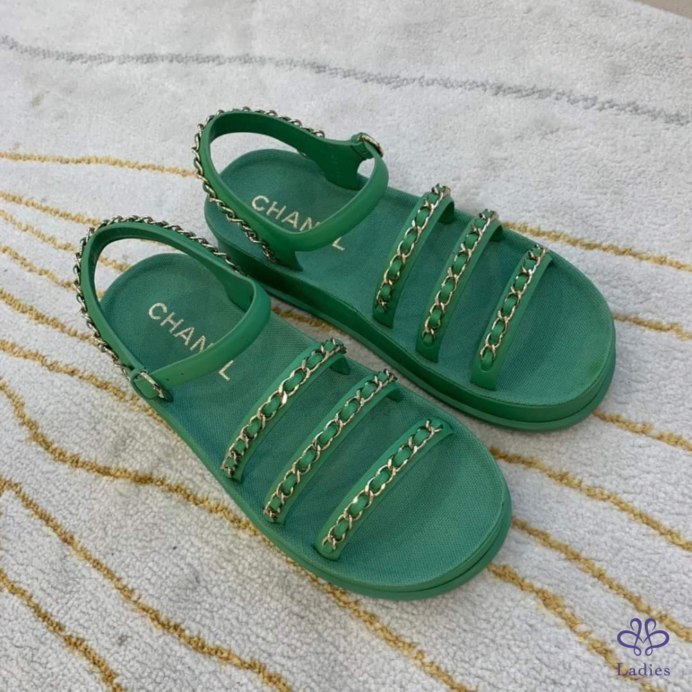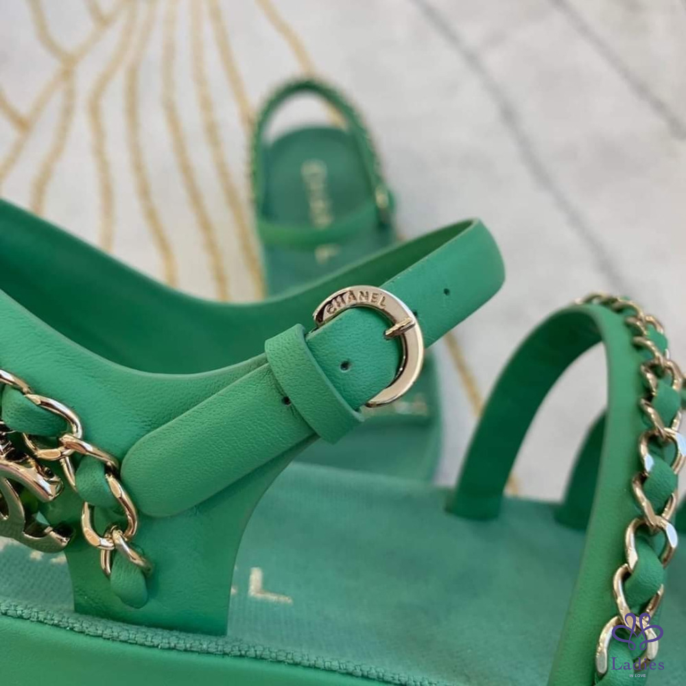 售 Chanel 香奈兒經典皮穿鍊綠金涼鞋/平底鞋/鞋子