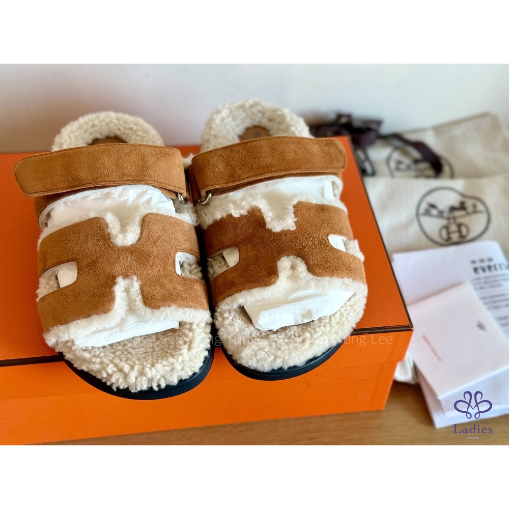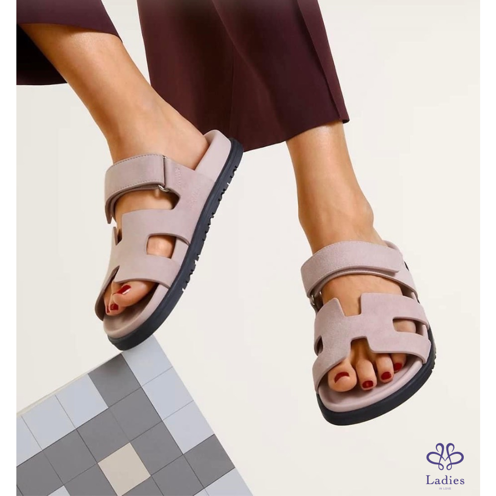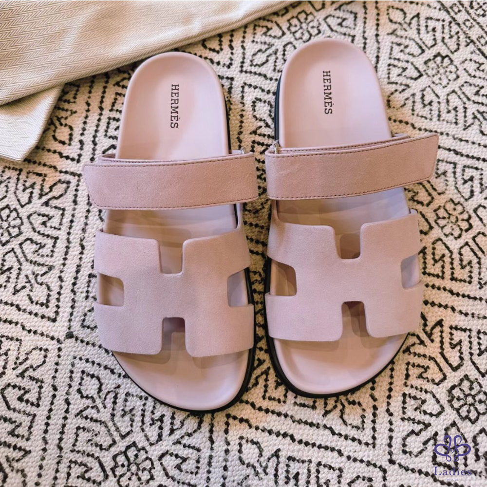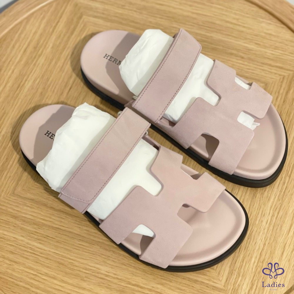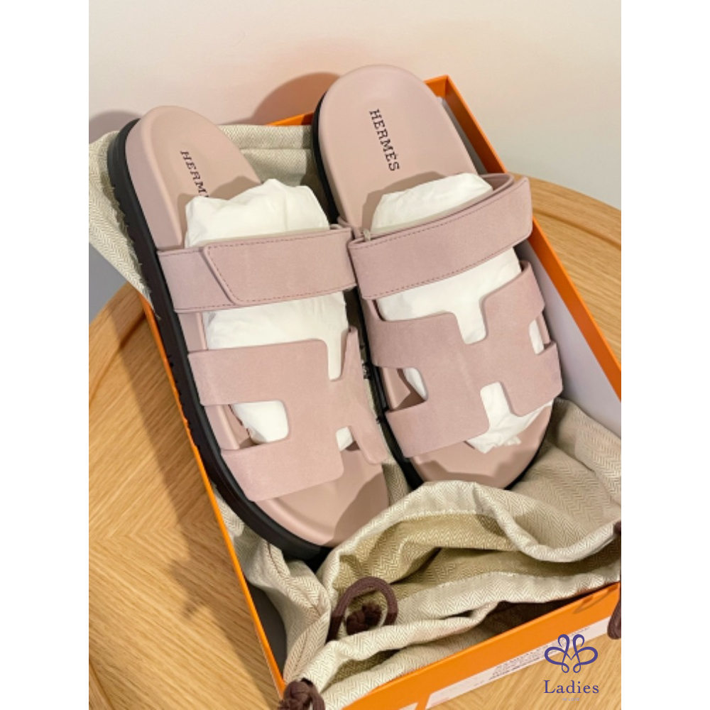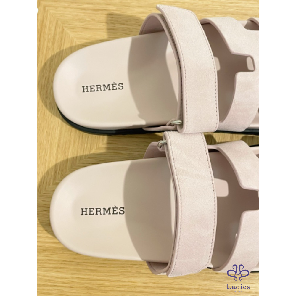 首頁 精品女鞋 Hermes Chypre Sandal 二舅麂皮玫瑰陶瓷粉 台灣購證 36