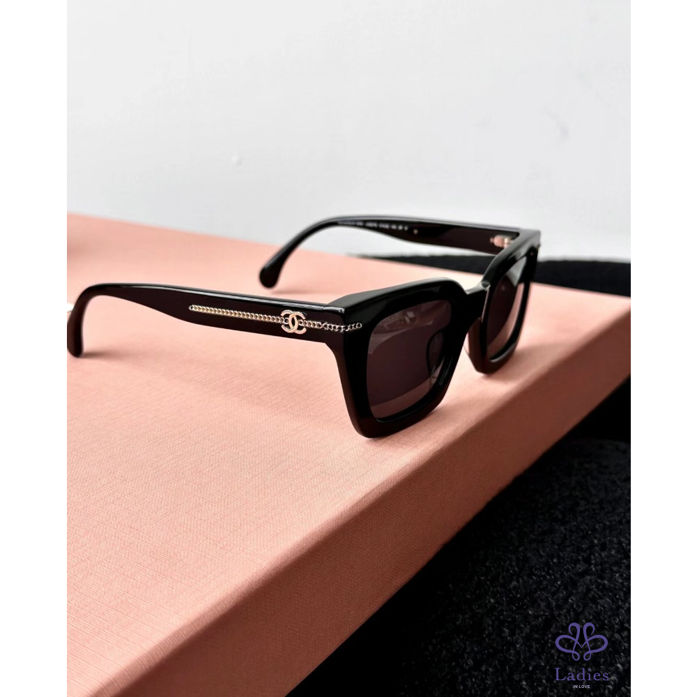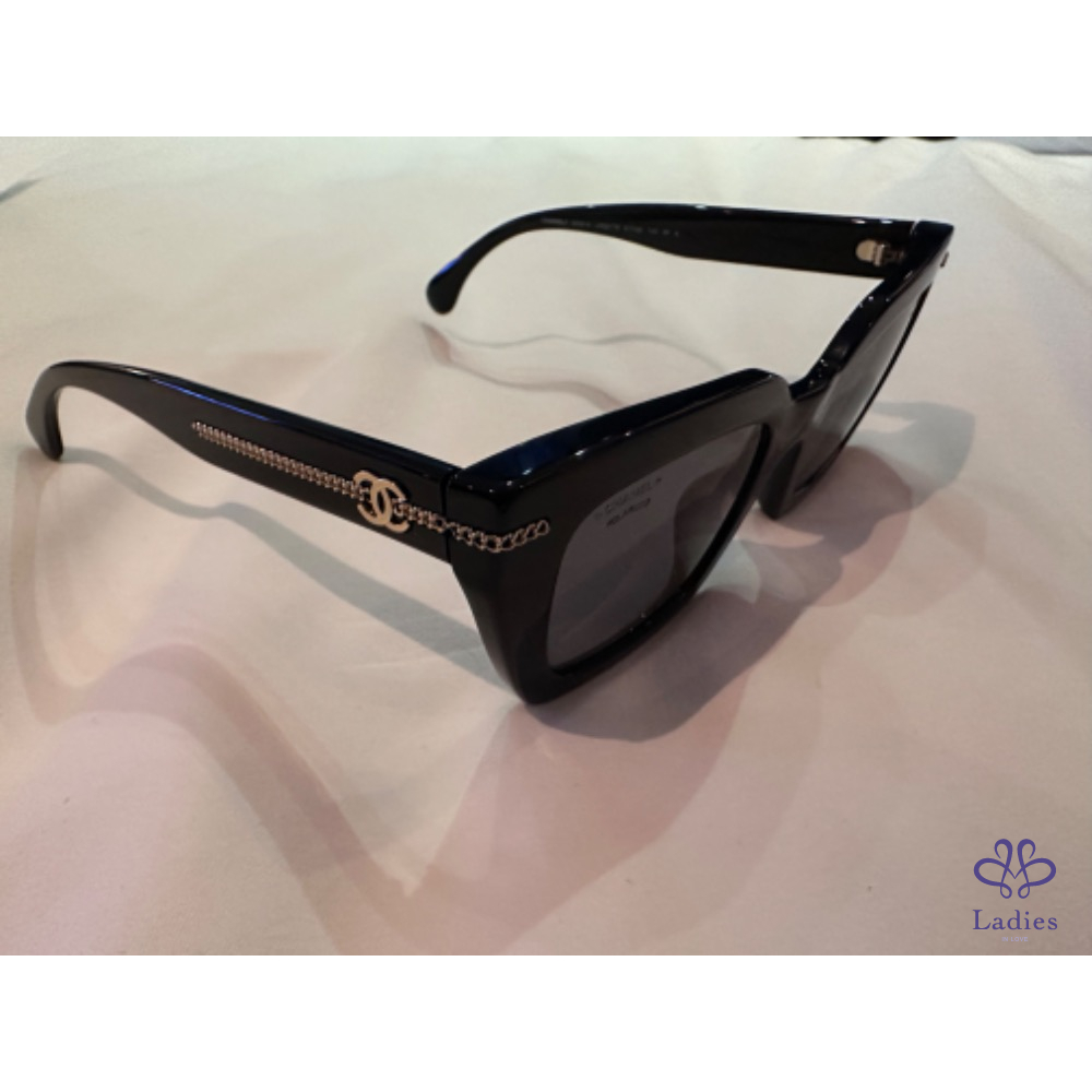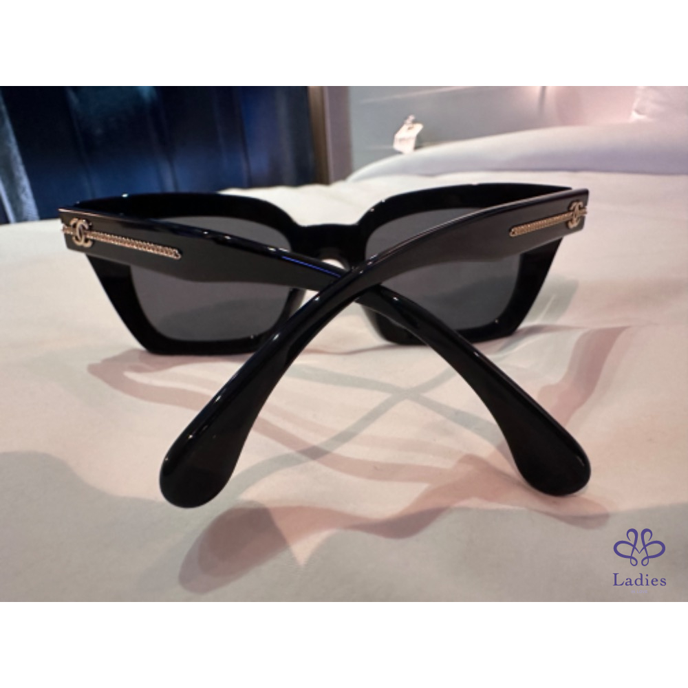 產品信息 Chanel 太陽眼鏡 CC鏈條款 - 黑色 - 款式5509 - 尺寸:長124x寬39x 鏡框到鏡腳140cm - 全新全配 經典黑框太陽眼鏡 重量不重對耳朵無負擔 側邊雙C簡約鏈條 低調優雅有個人風格 附全配:黑盒、緞帶、紙袋、眼鏡盒、擦拭布、去個資購證影本 ????台北新竹台中面交 ????順豐、掛號