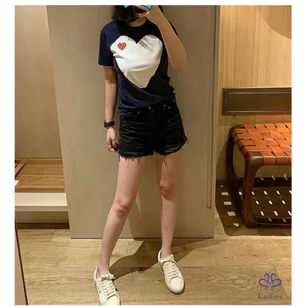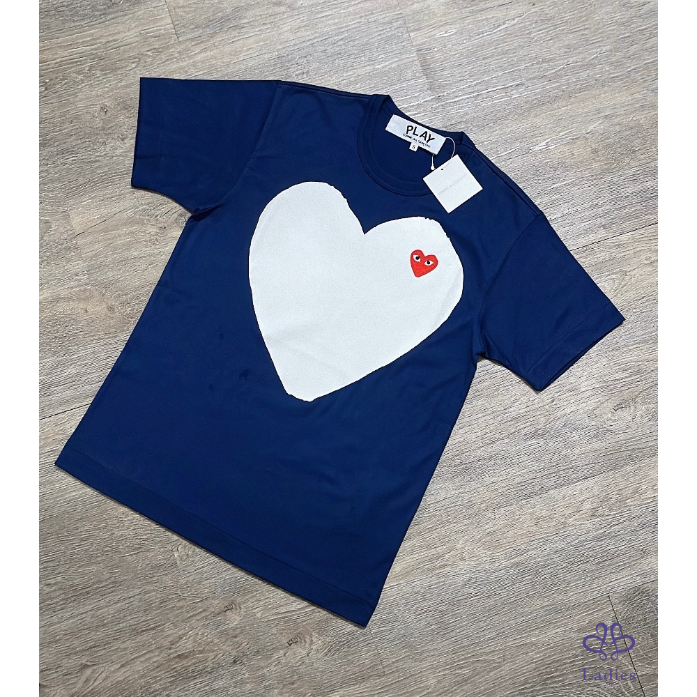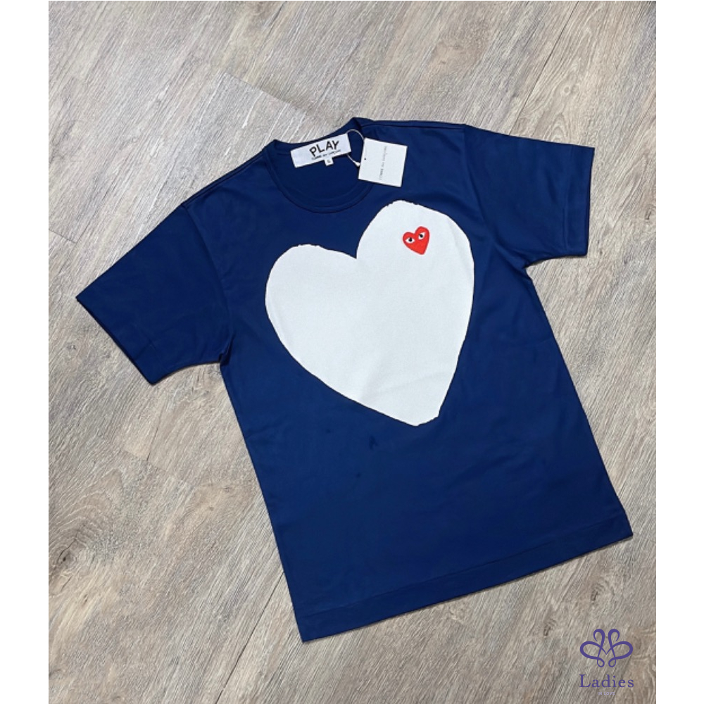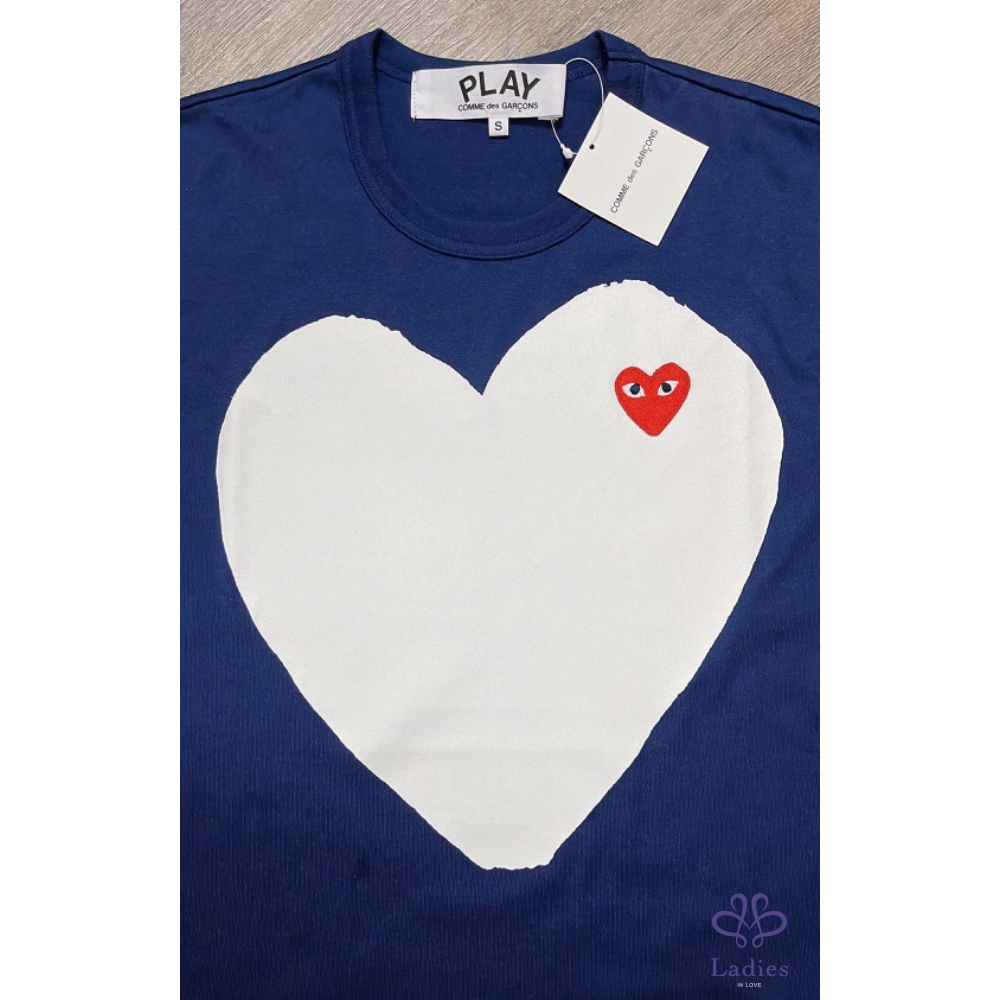 全新 川久保玲 CONNE des GARÇONS PLAY經典愛心❤️刺繡海軍藍T桖