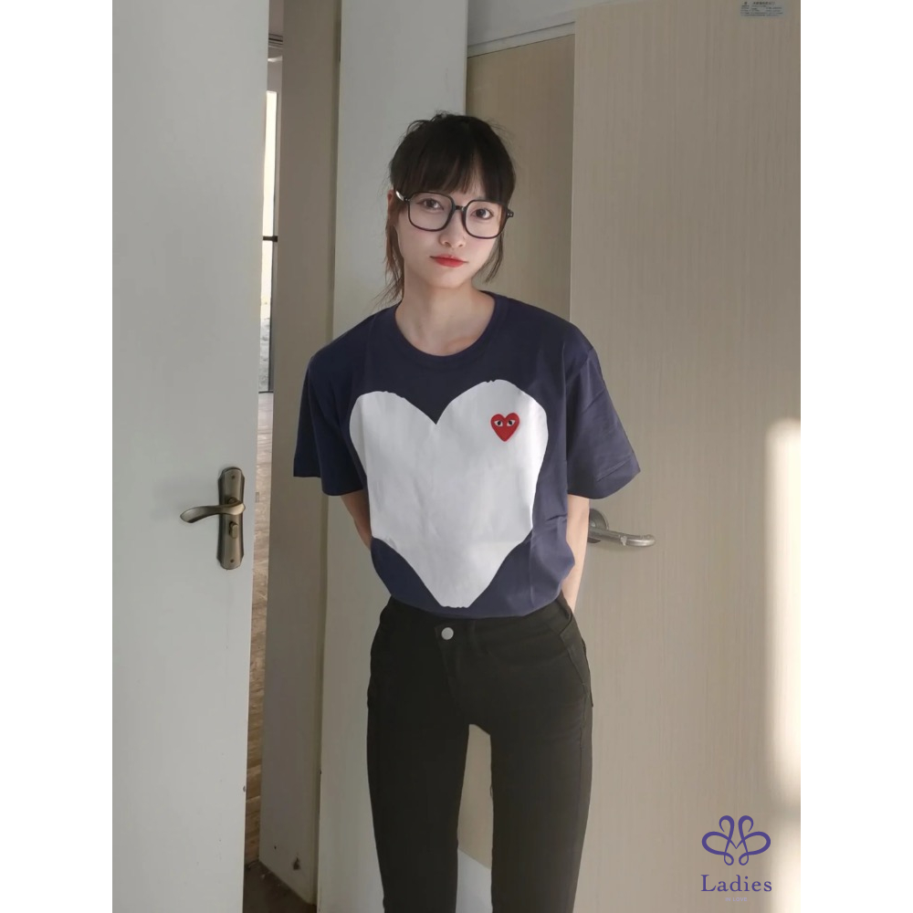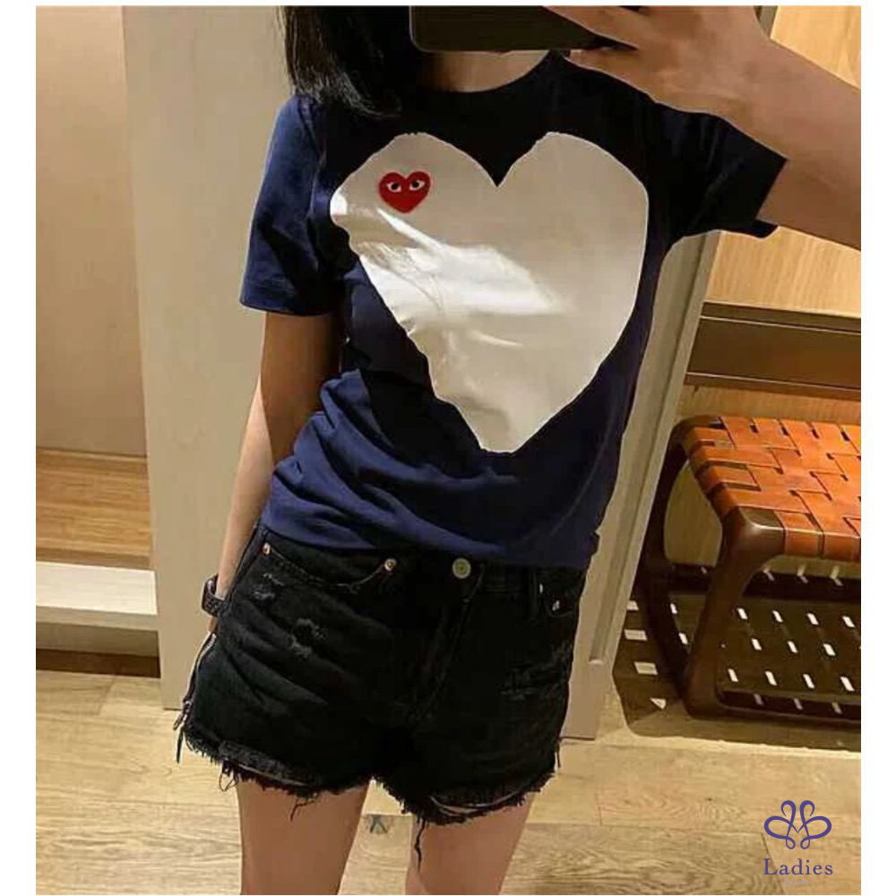 首頁 精品服飾 全新 川久保玲 CONNE des GARÇONS PLAY經典愛心❤️刺繡海軍藍T桖