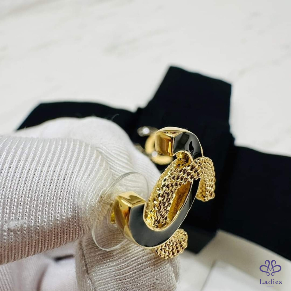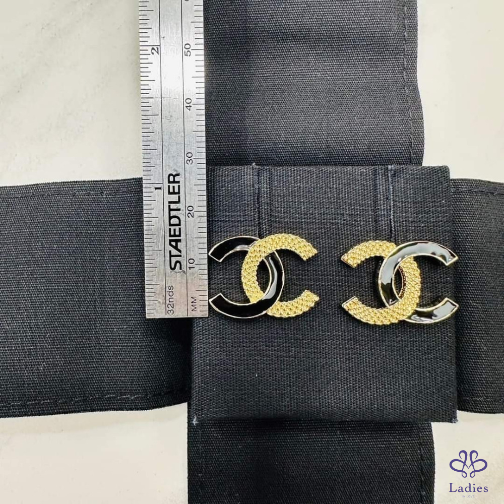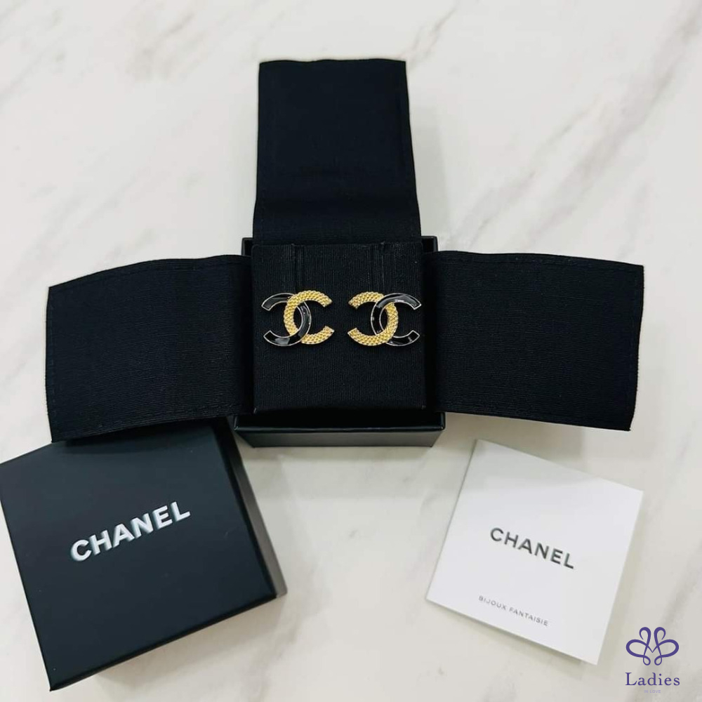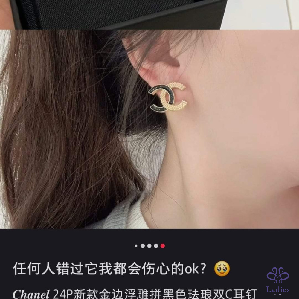 售 Chanel Earrings 香奈兒 復古/琺瑯/黑金/浮雕/鴛鴦/雙C 貼耳針式耳環