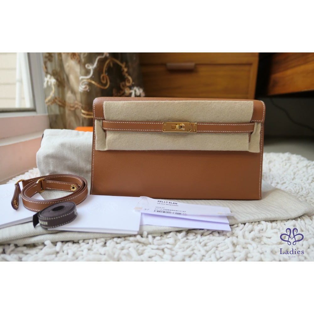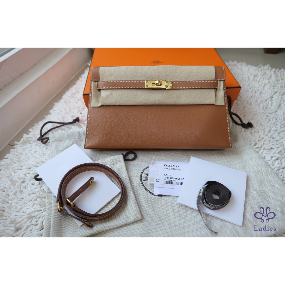 全新 Hermès Kelly Elan 金棕金釦