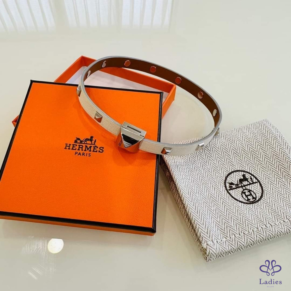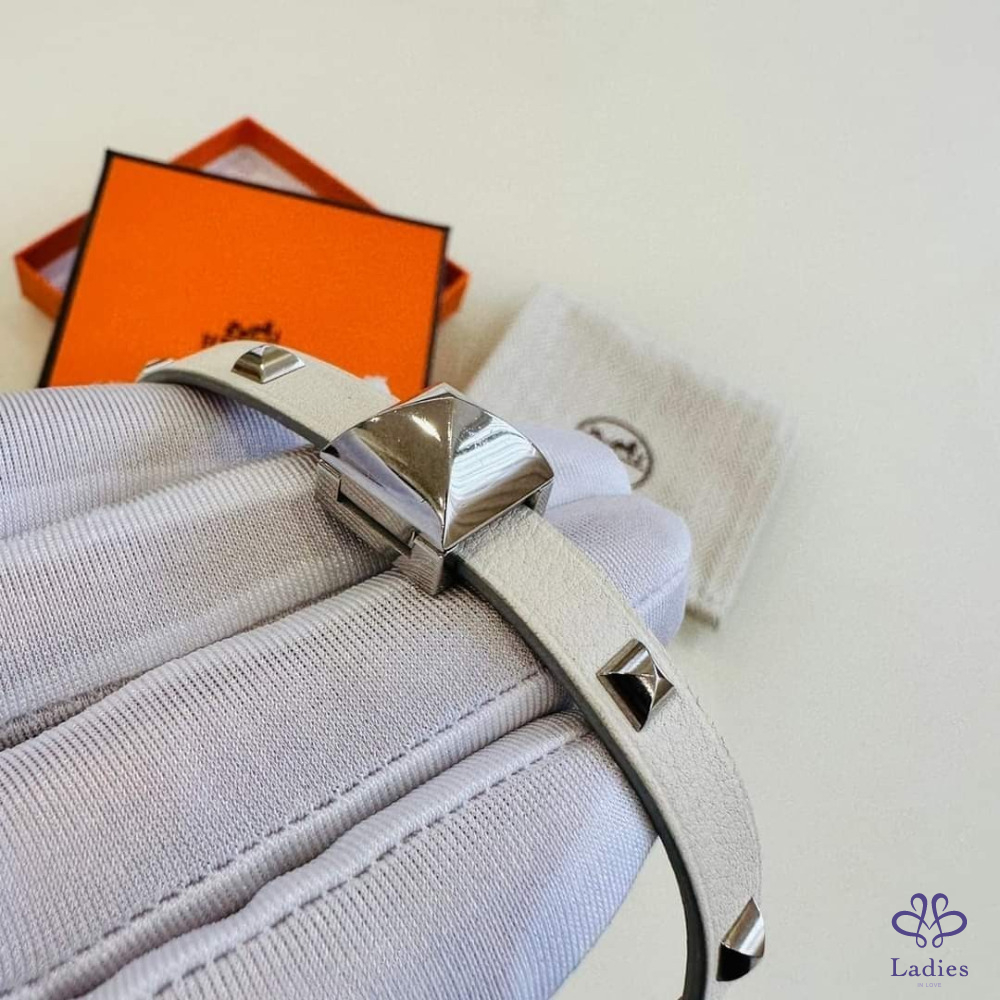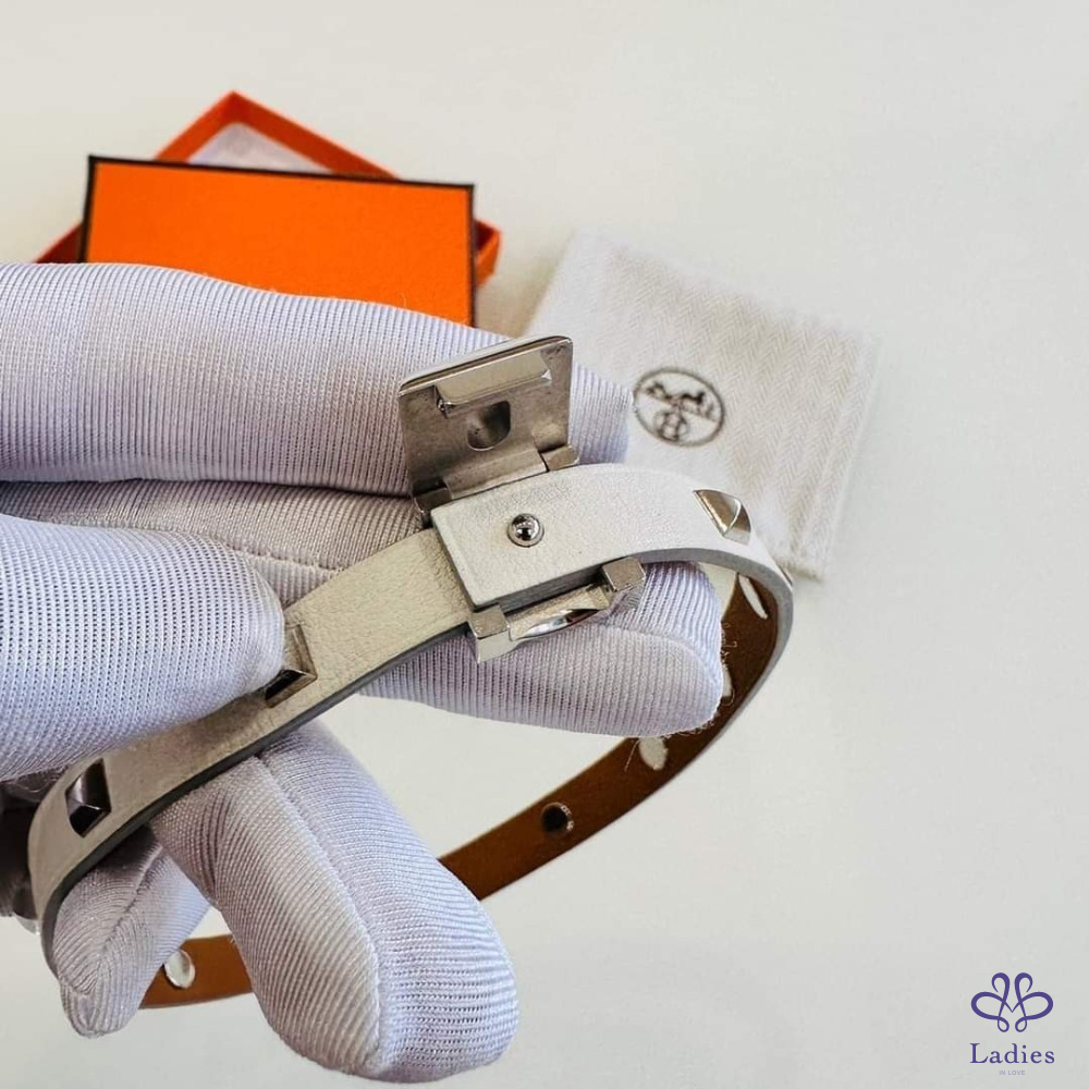 售 Hermes Medor Infini Clouté Double Tour Bracelet & Choker x blanc 愛馬仕經典白色雙圈手環/頸鍊