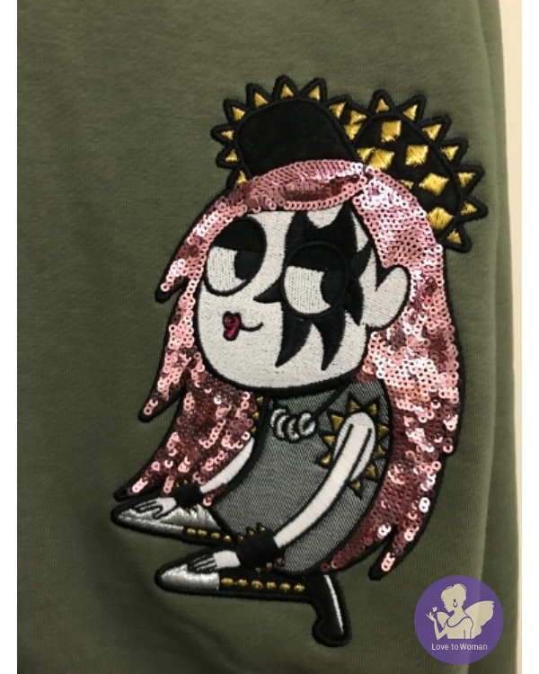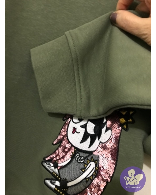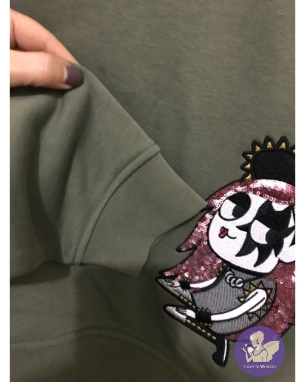 全新吊牌未拆,購於電商,購價稅後台幣約$8000這款精緻有型,觸感超級好,親膚不刺癢,可愛的亮片刺繡搞怪女孩,非常時尚又亮眼的一件衛衣,百搭又顯瘦