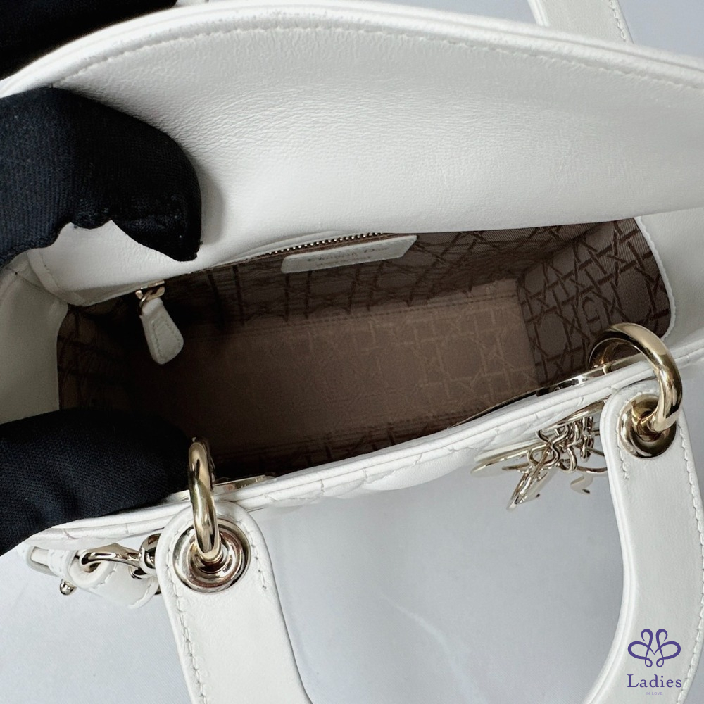 採用白色羊皮製成,搭配Cannage藤格紋圖案縫線