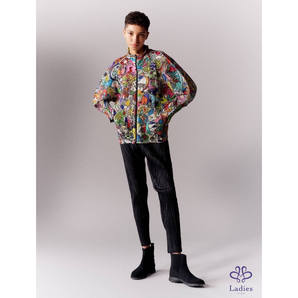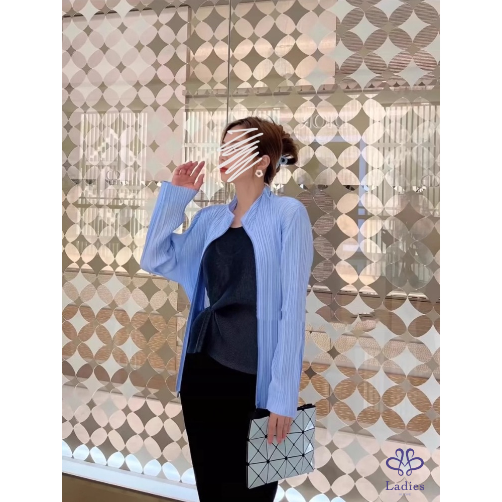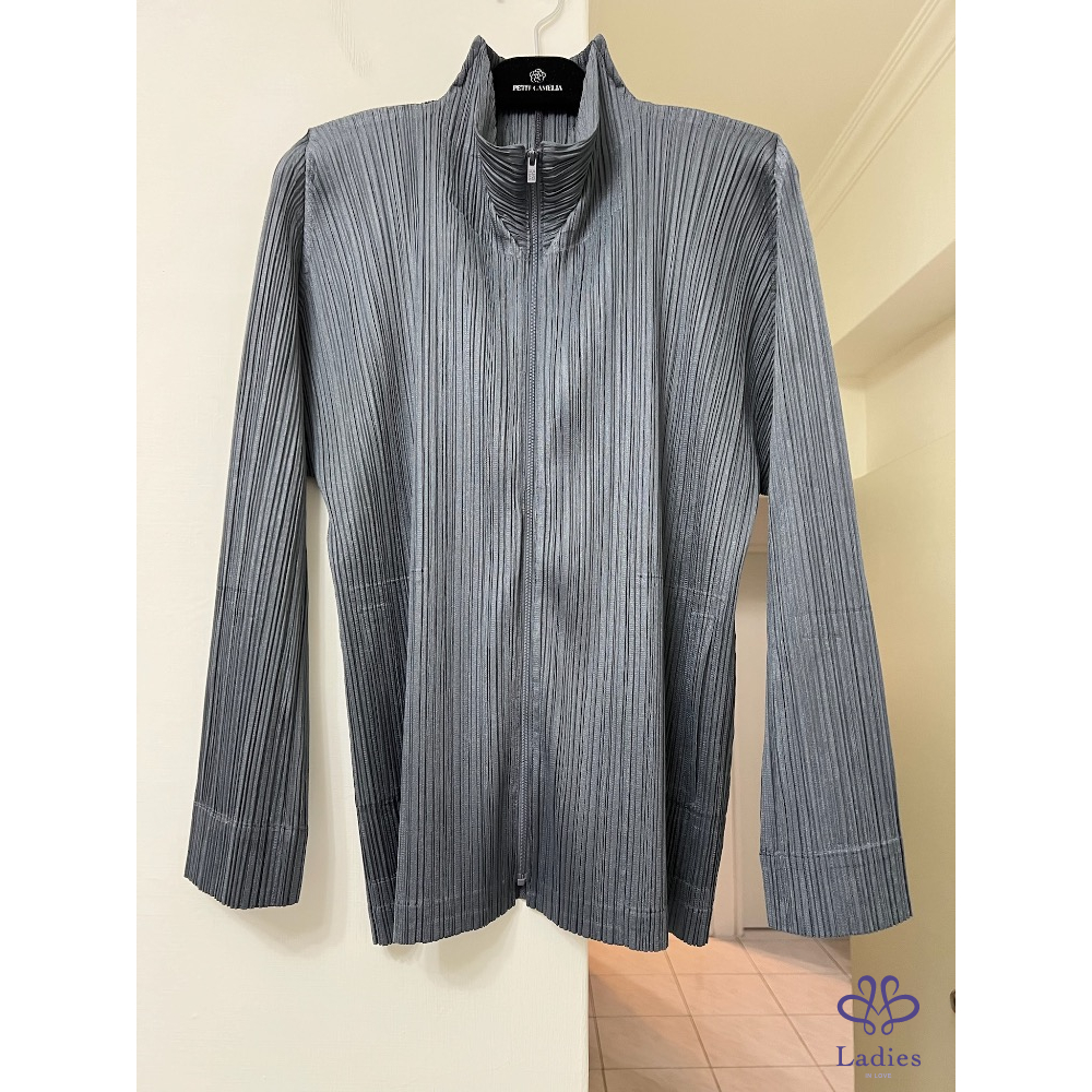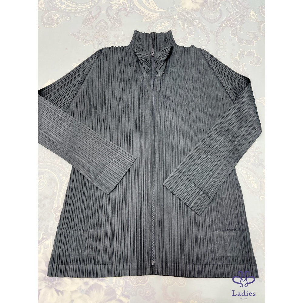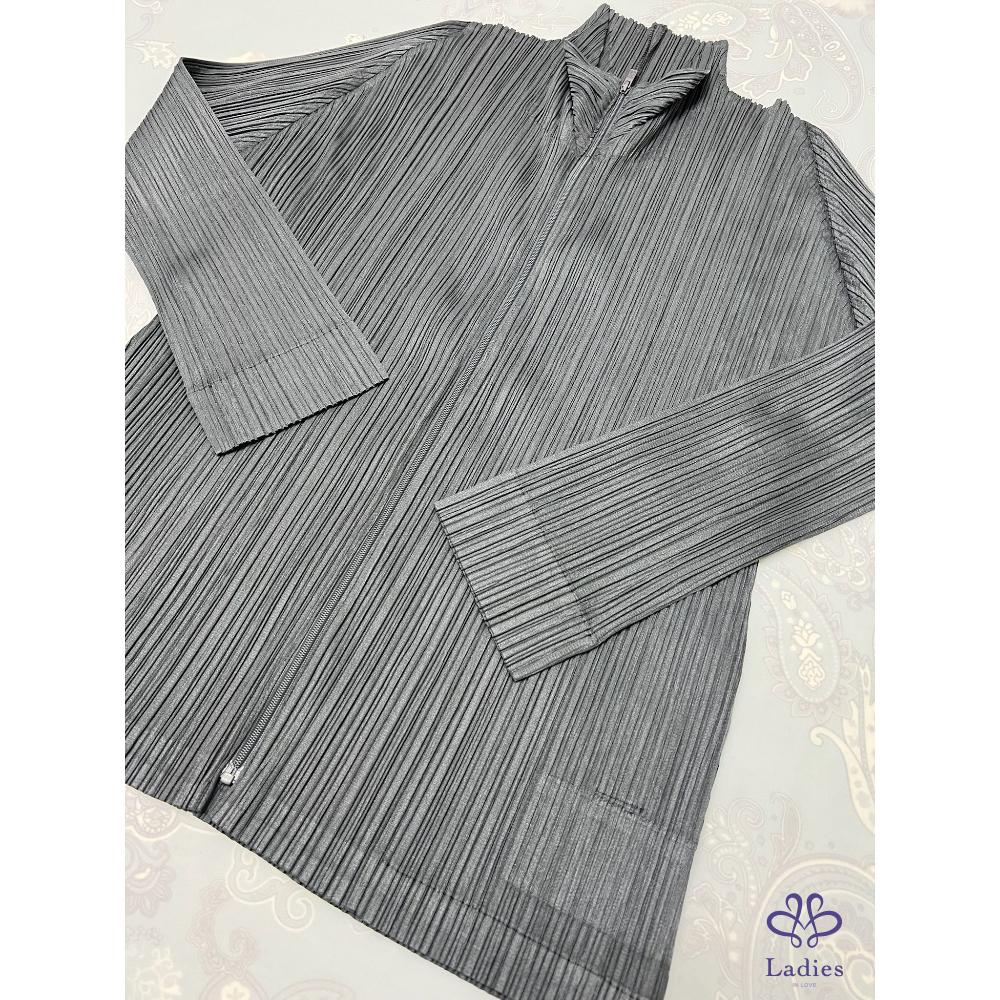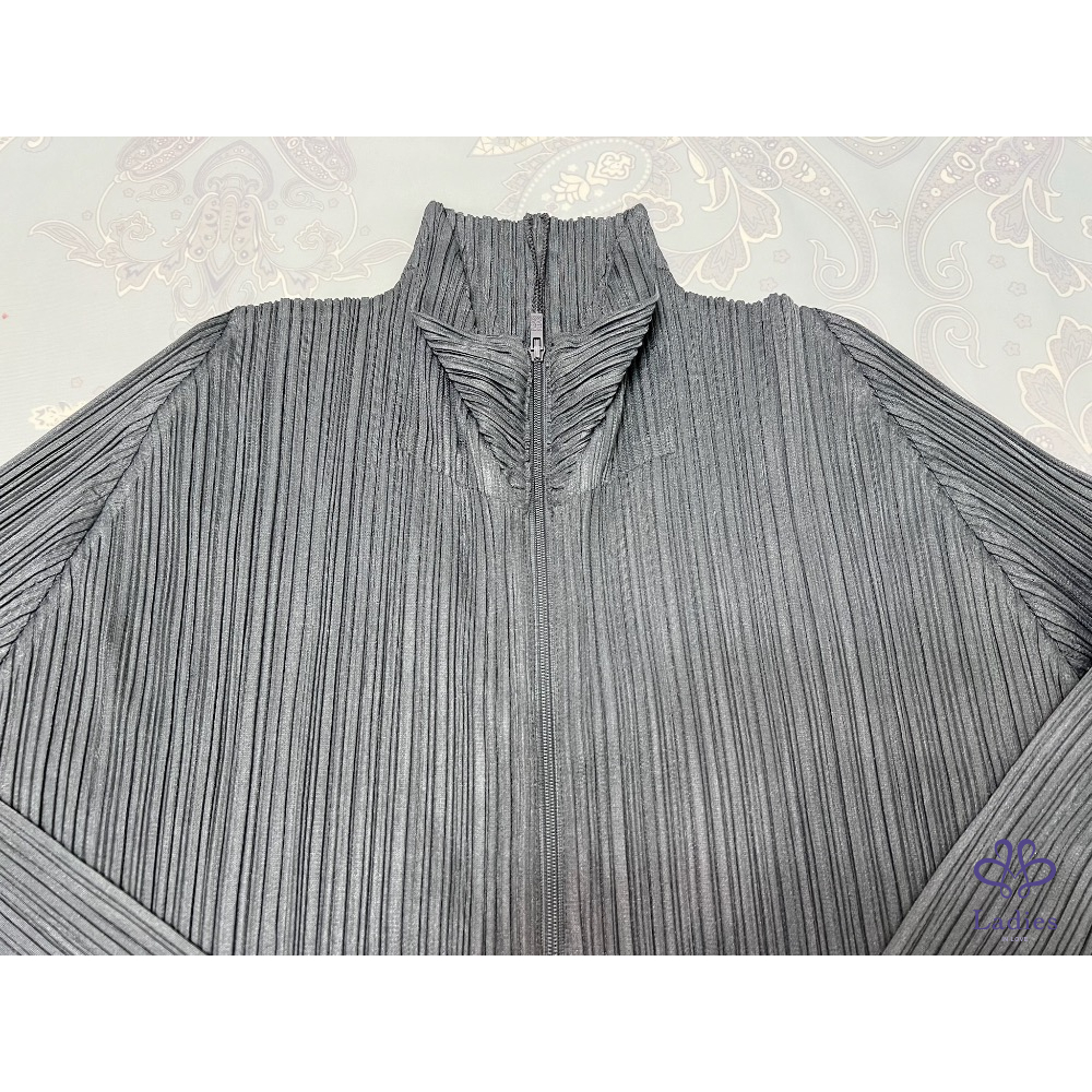 代家人售三宅一生Pleats Please深灰色褶皺拉鍊外套,22年7月款,和經典的塗鴉外套是同款不同色,????面隨便搭一件基本款上衣或T恤就很美,三宅粉必備款;