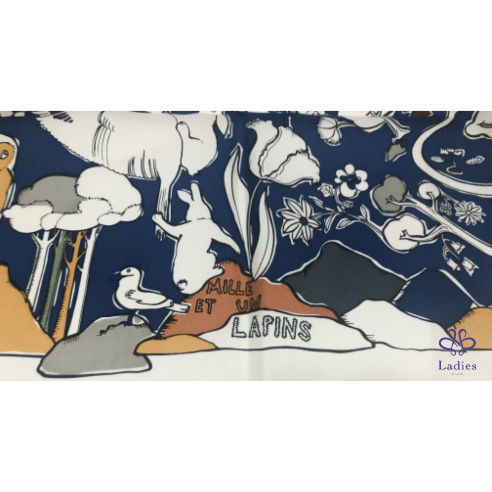 Hermes 愛馬仕 Mille et Un Lapins 90cm 絲巾方巾 白色 / 海軍藍 / 卡其色 全新✨