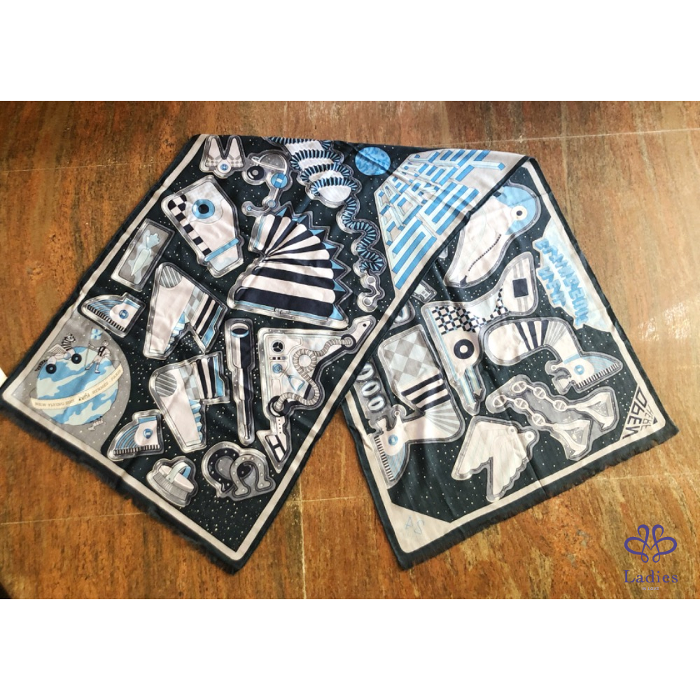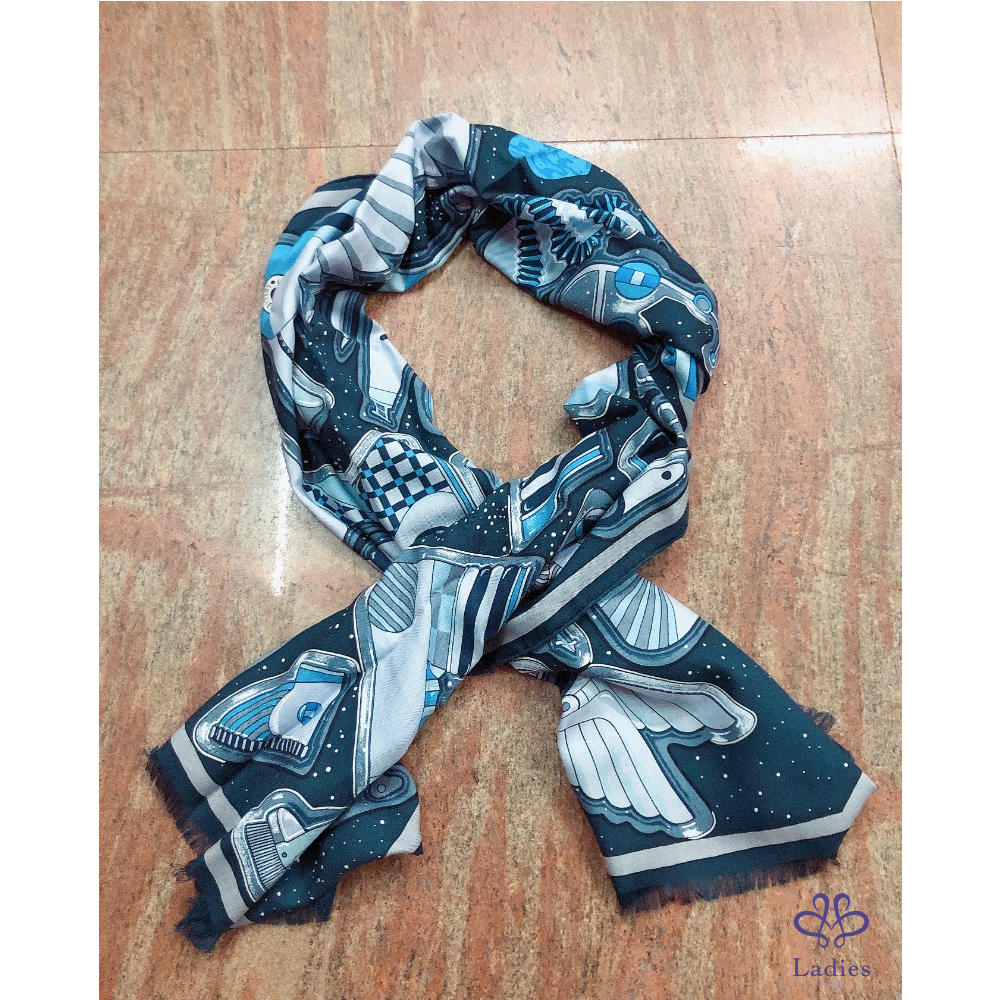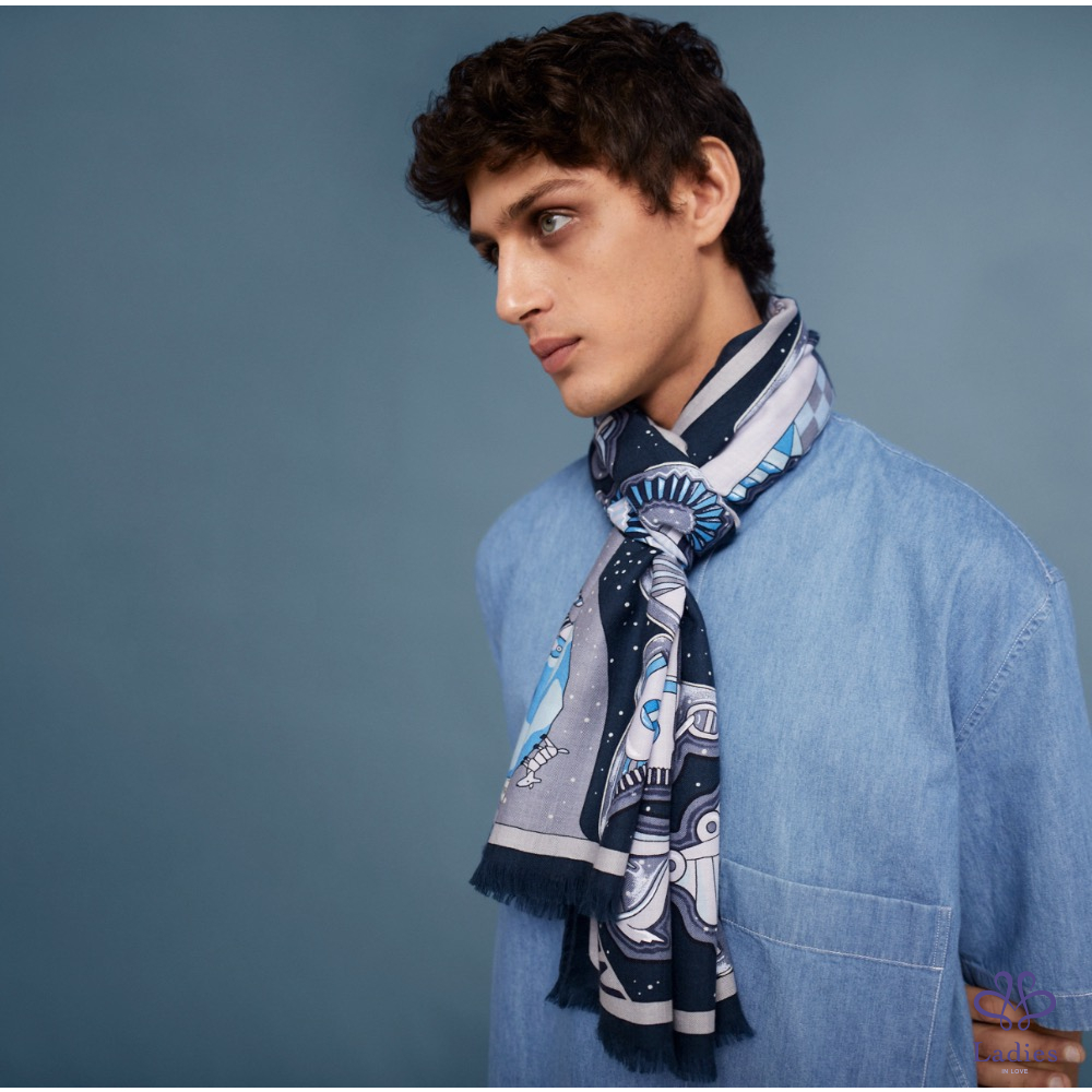 這款羊絨和絲綢矩形像圍巾一樣印刷和捲曲,非常適合休閒外觀。