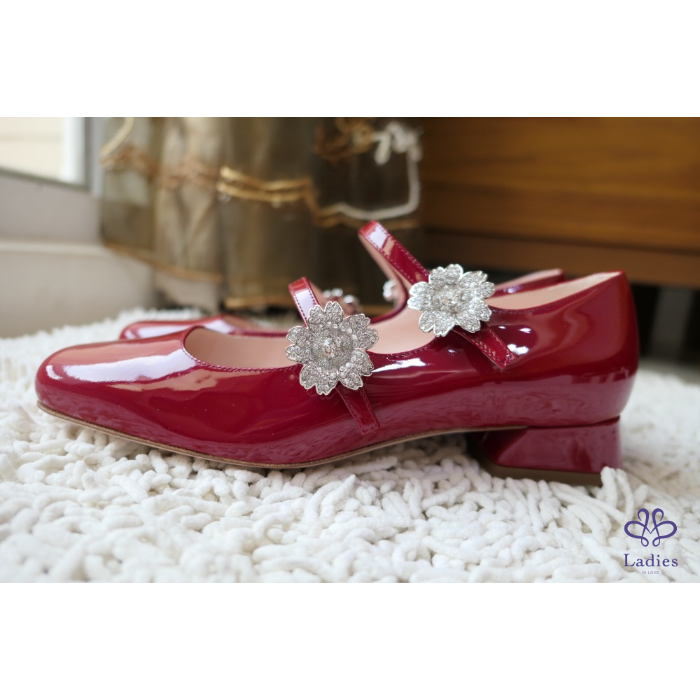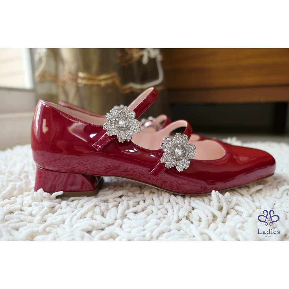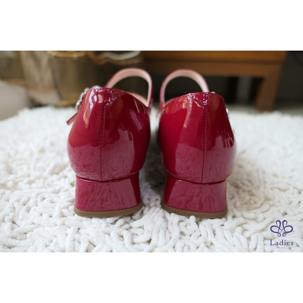 全新Roger Vivier寶石紅櫻花鑽扣瑪莉珍鞋 尺寸:37