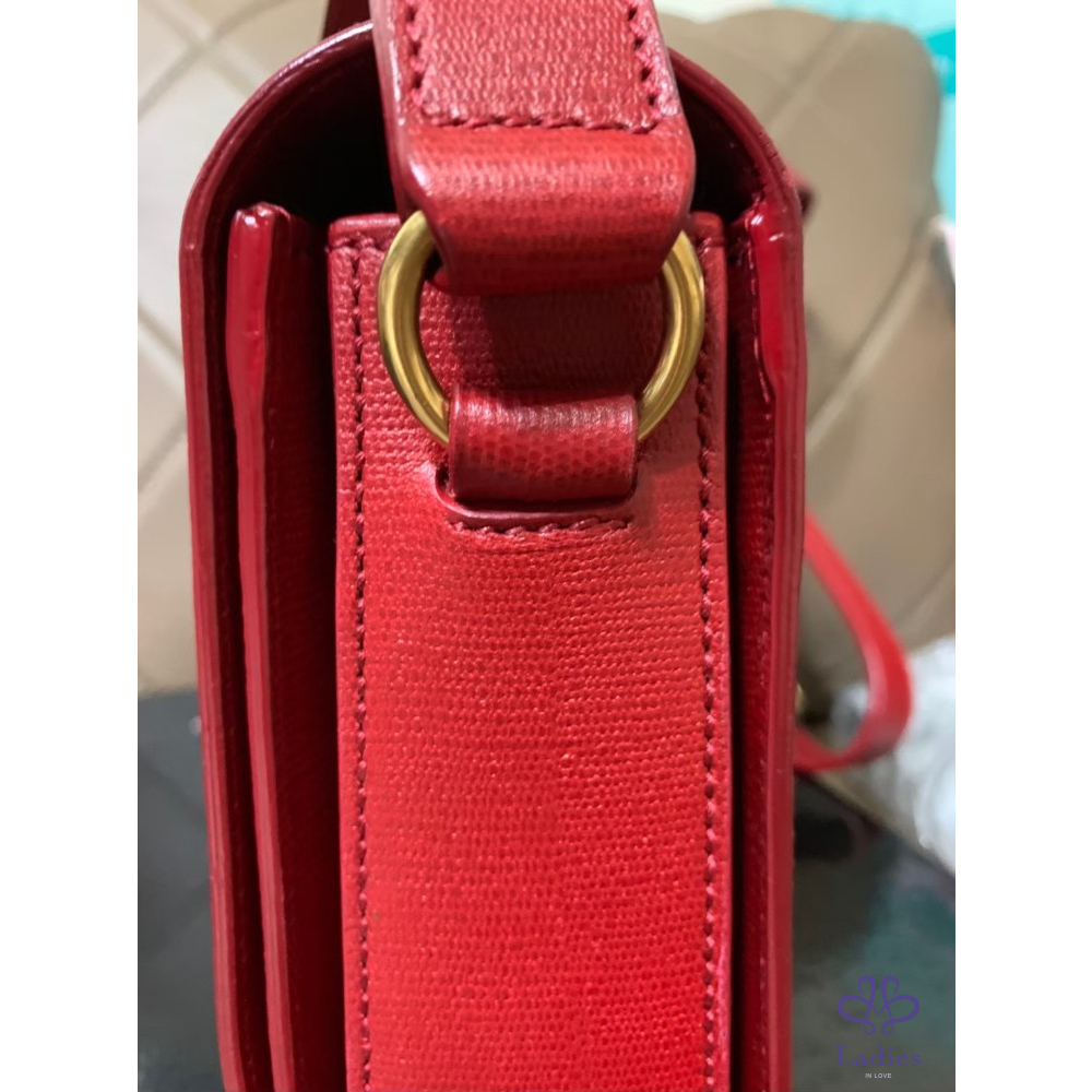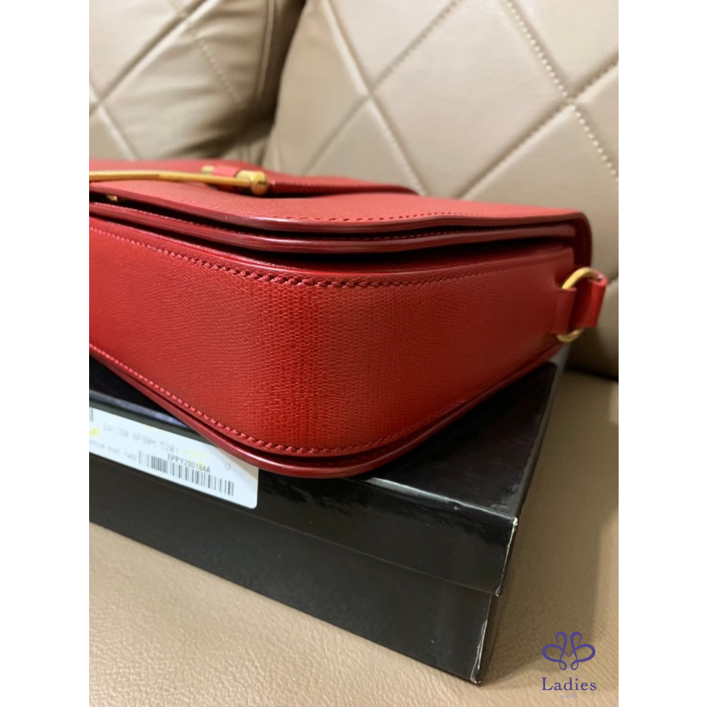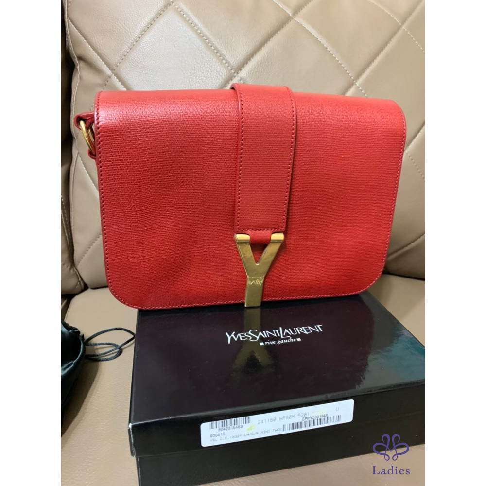YSL 經典Y字金屬牛皮正紅色 肩背包(肩帶可調整),長夾可放入,多年前巴黎購入 金額忘了