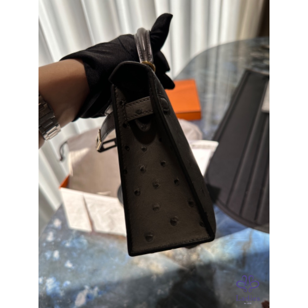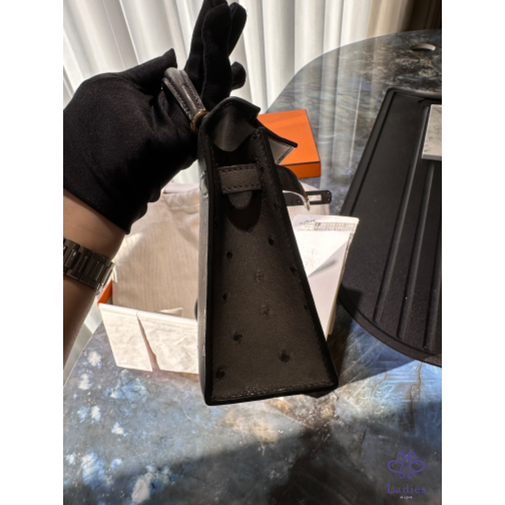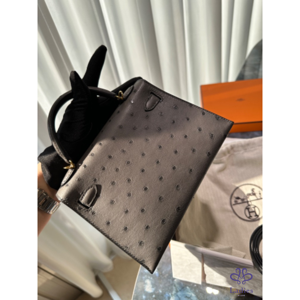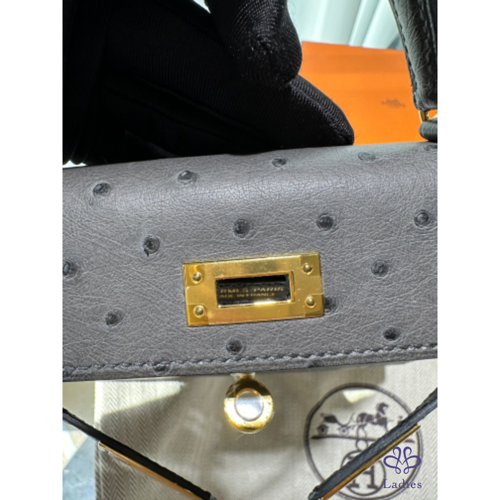 HERMÈS mini Kelly 石墨灰 駝鳥皮 Y