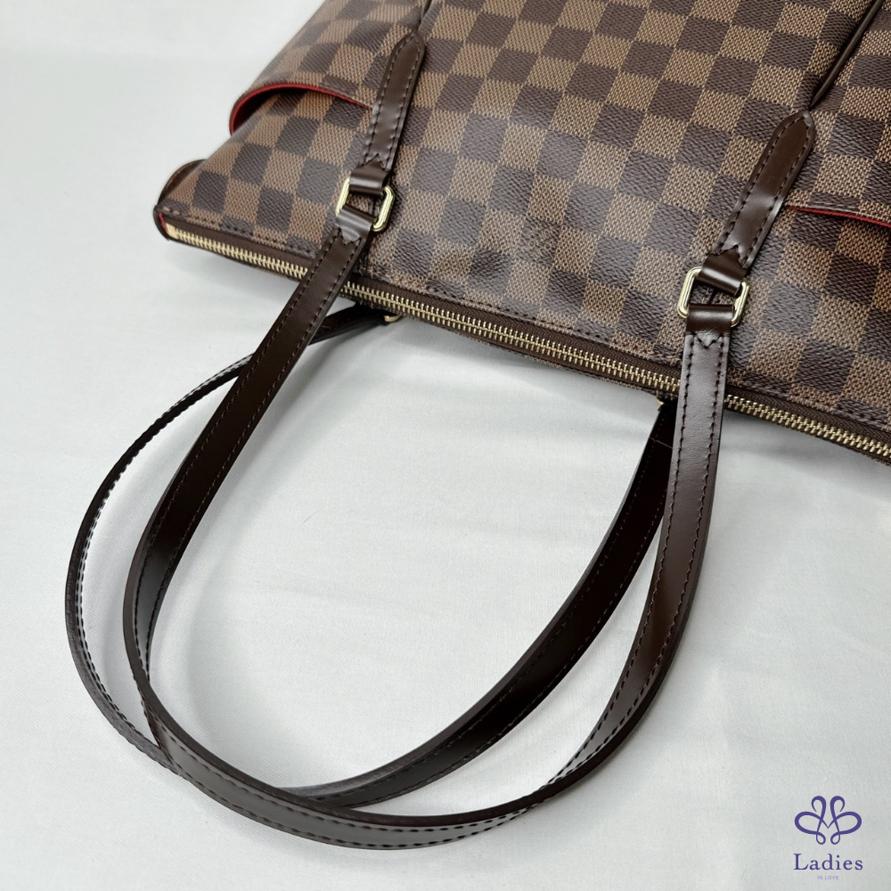 產品信息 【LV TOTALLY PM棋盤格雙口天心包】 這款Totally PM,增加內貼袋及D環扣 雙口超實用置物設計,安全的拉鍊開合 小款黃金尺寸剛剛好,包身狀況新穎良好 整體包況約9成6新,二手商品均有正常使用/存放痕跡 型號:N41282 尺寸:底28、上34x12x27cm 附件:原廠防塵袋 #A113062201