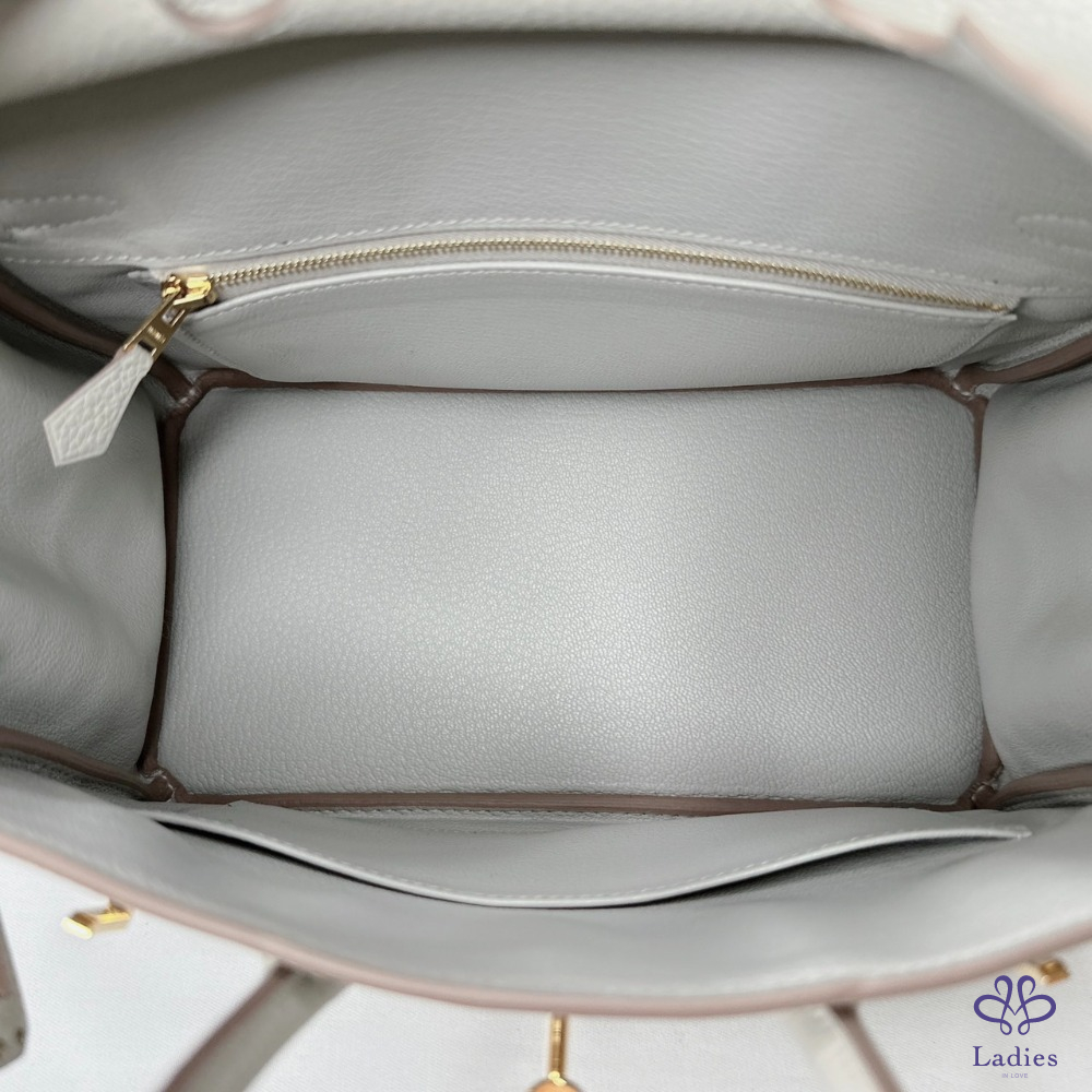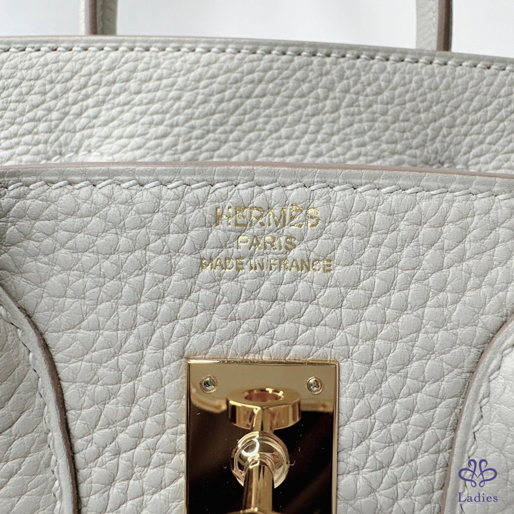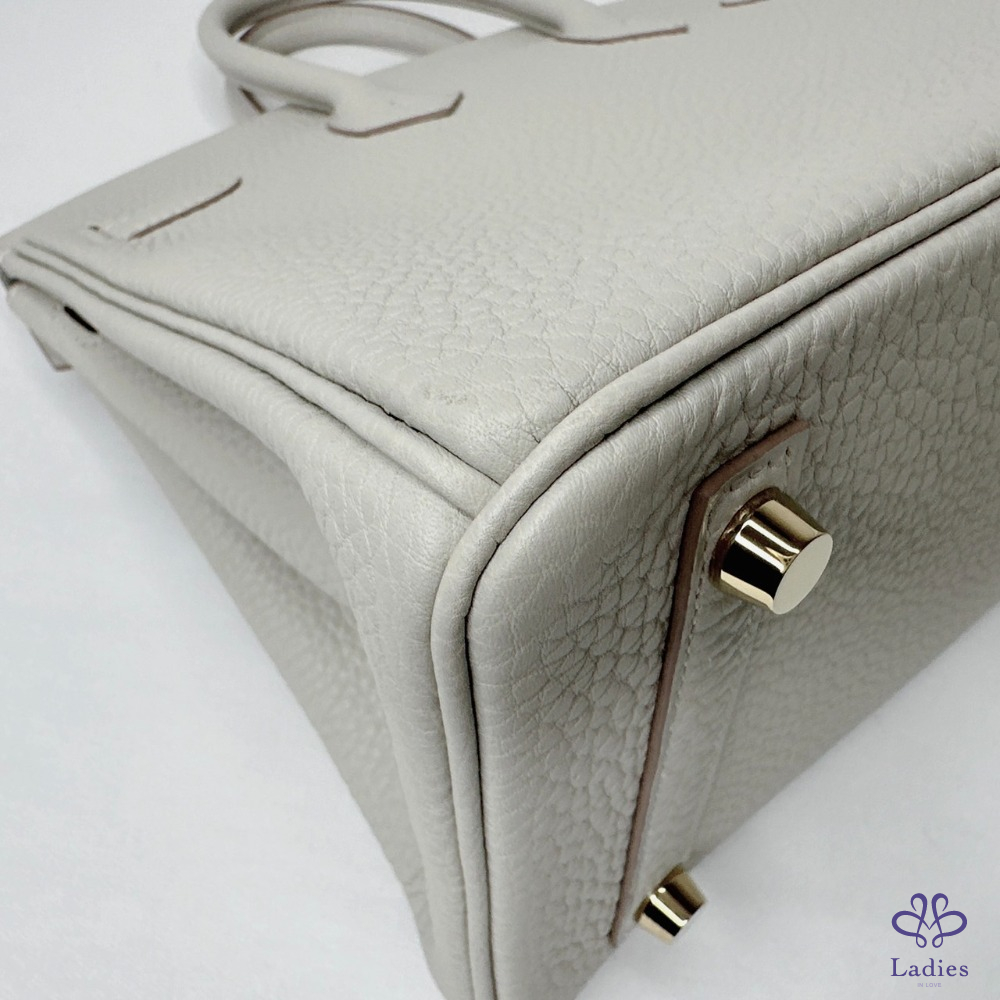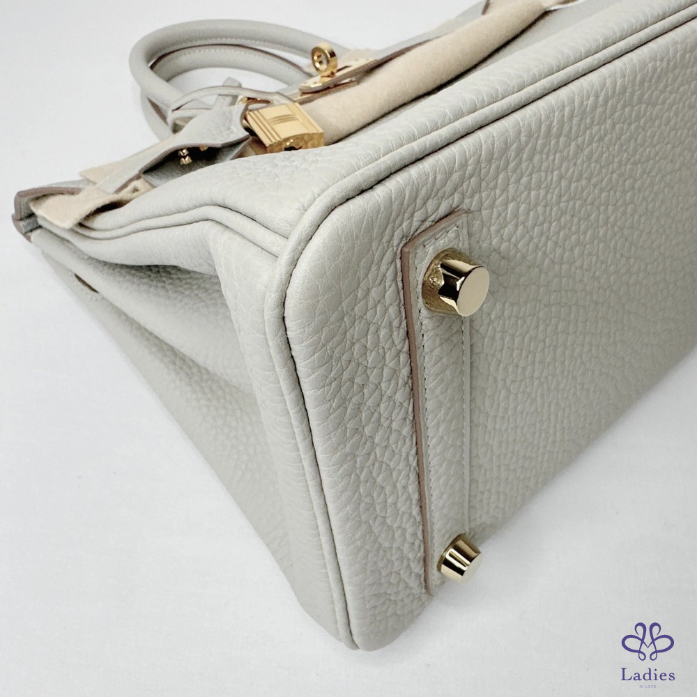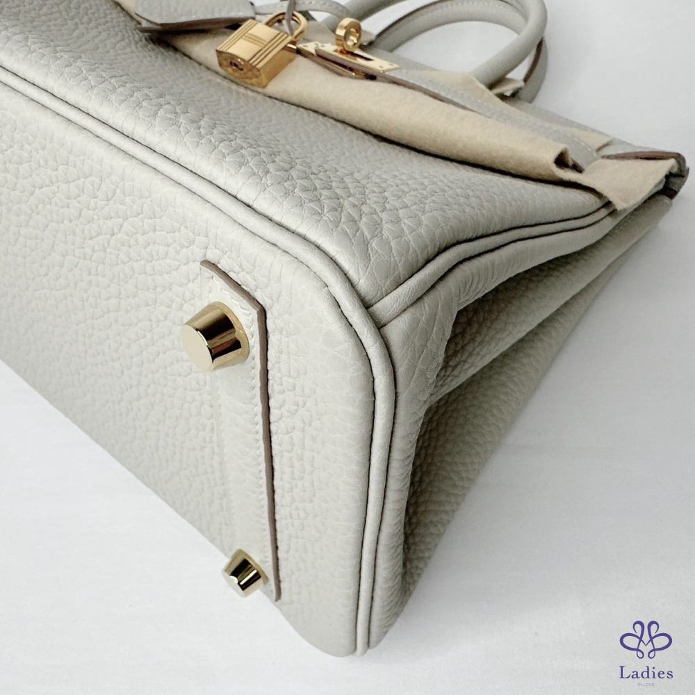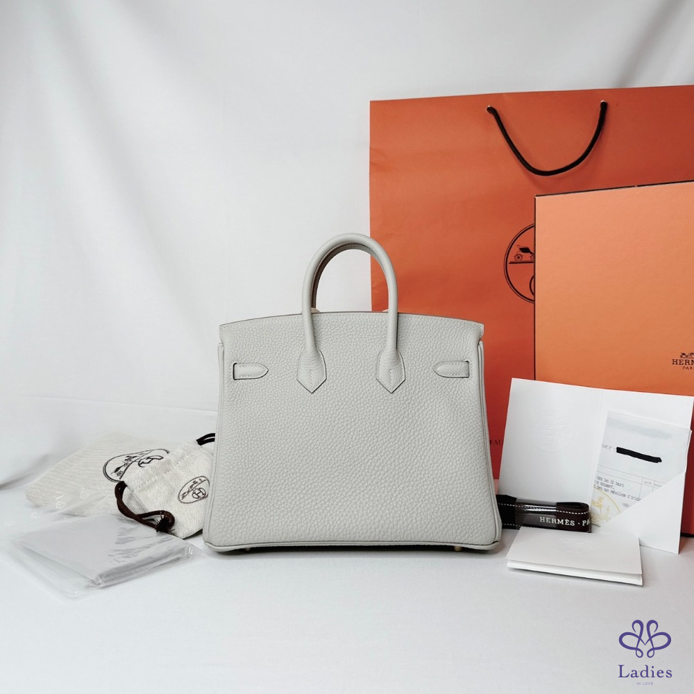產品信息 【HERMES Birkin 25柏金包】 #B刻 #80珍珠灰 #金扣Togo皮 灰色系中最淺的灰,正常光線偏冷調 金扣灰調更顯高冷感 極緻25黃金尺寸 直接深深陷入~不愛上她都難 整體包況約9成8新,二手商品均有正常存放痕跡 尺寸:25x20x14cm 附件:原廠盒、原廠紙袋、原廠防塵袋x2、原廠雨衣套、國外購證(去個資)、鎖匙組、說明書、緞帶 #A113073108