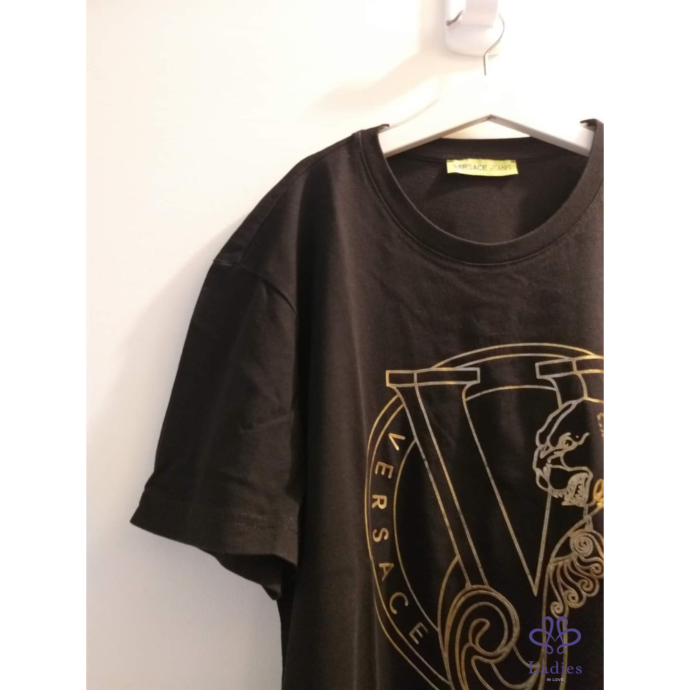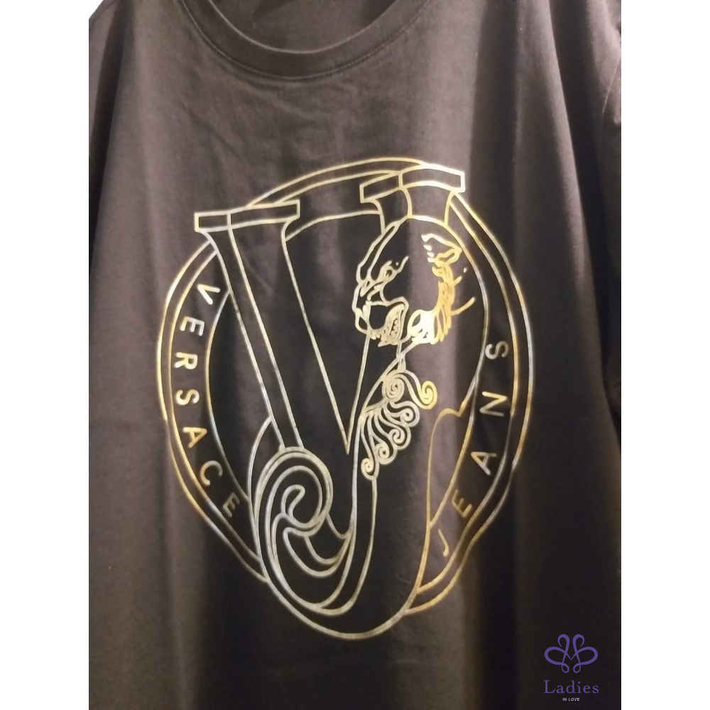 VERSACE JEANS 黑色虎頭燙金棉質T