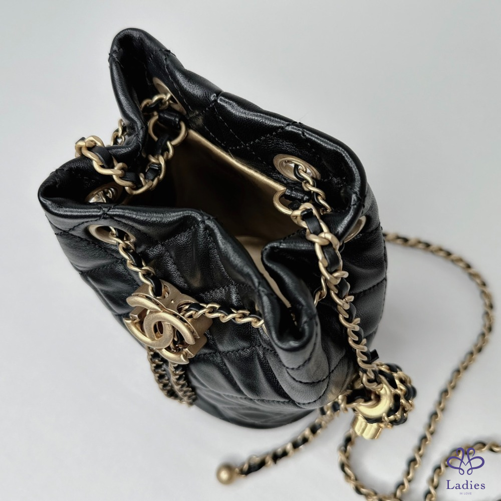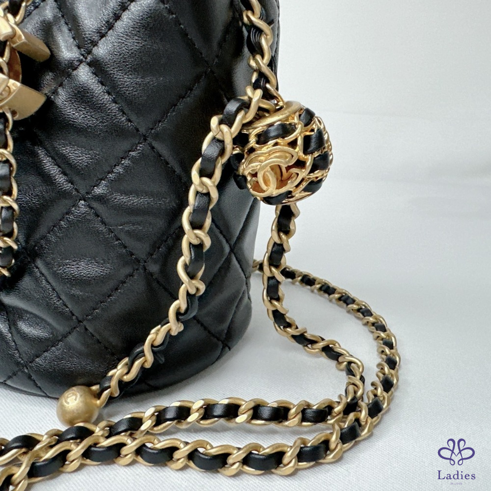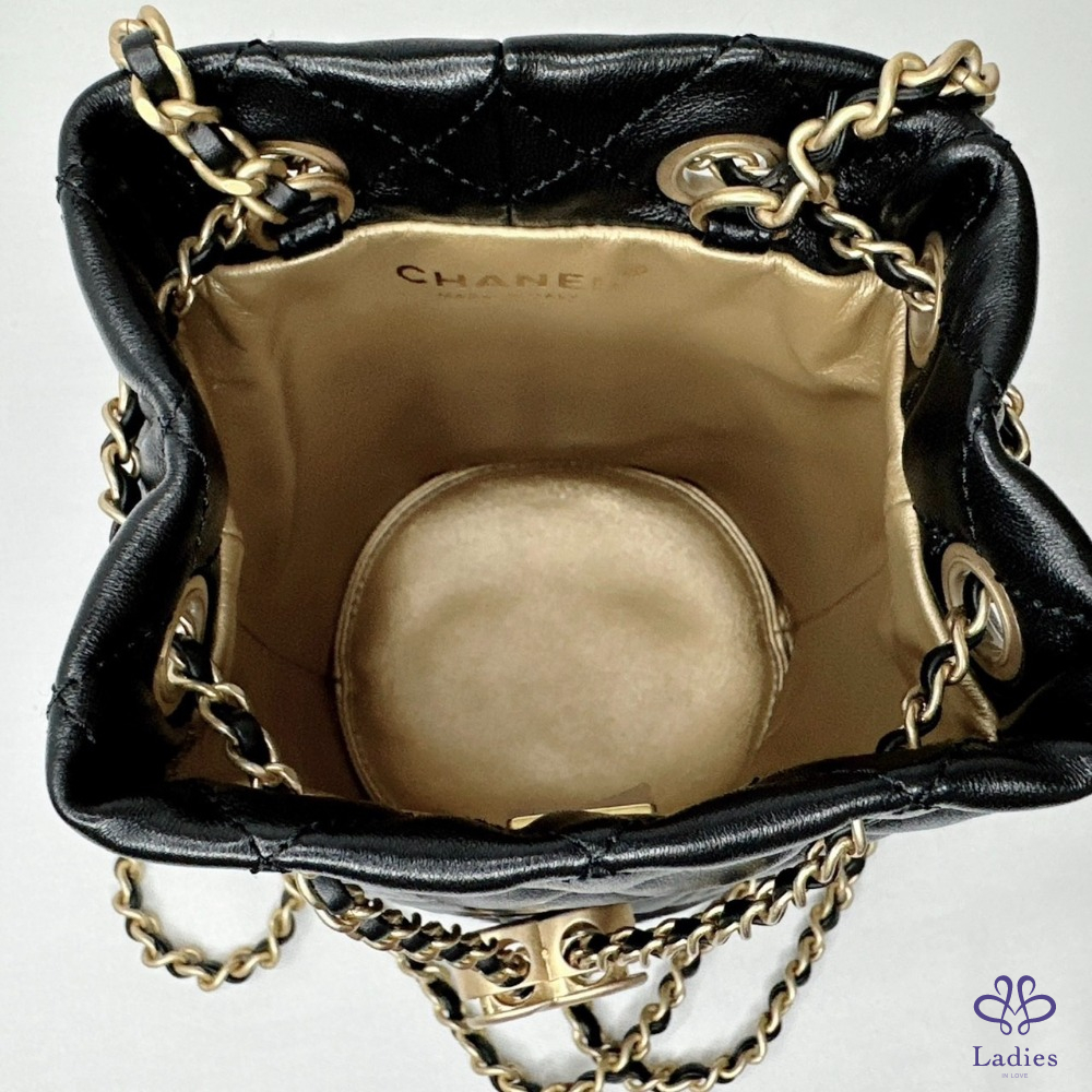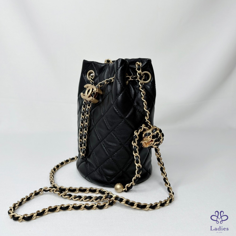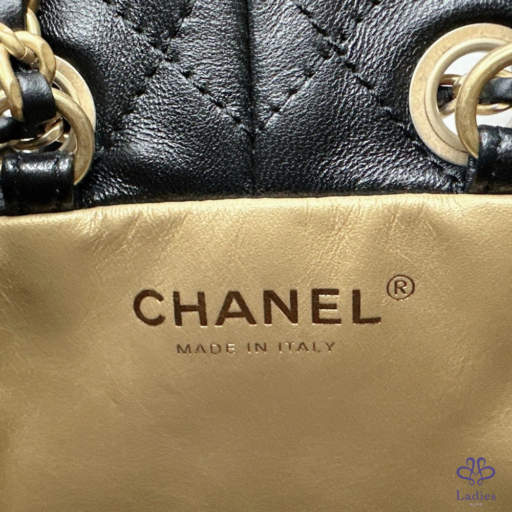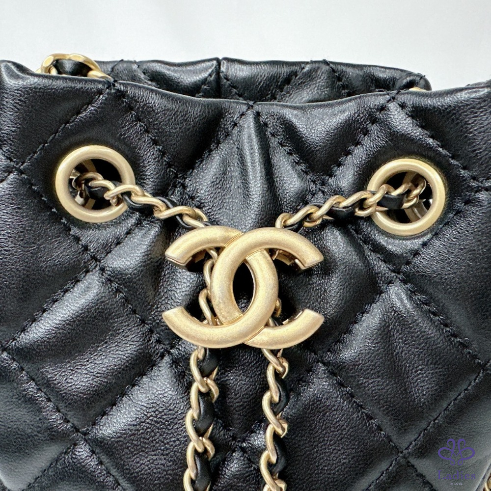 產品信息 【CHANEL 全新核桃金球水桶包】 #晶片款 #離櫃閒置全新未使用 皮鍊款的核桃金球調節扣+開口雙C調節,超可愛 小款尺寸很剛好捏~ #遠離小廢包 零錢包、鑰匙、手機、隨身補妝小物都能放 整體包況約9成9新,二手商品均有正常使用/存放痕跡 型號:AS1894 尺寸:13x17x11cm 附件:原廠盒、緞帶 #A113073106