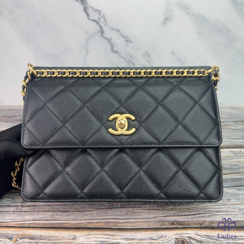 #CHANEL 23A荔枝牛皮鏈條斜背包 芯片款