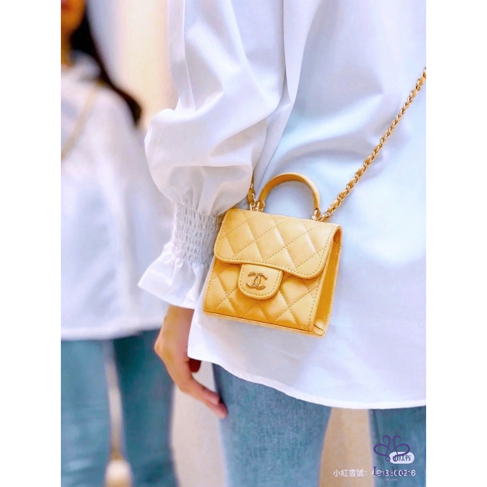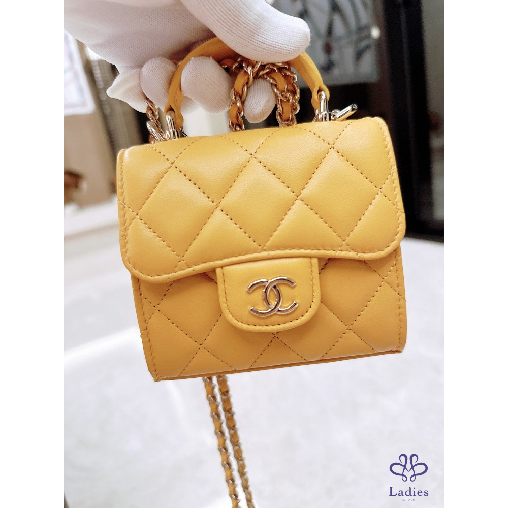 Chanel 迷你鏈條包 太陽黃淡金