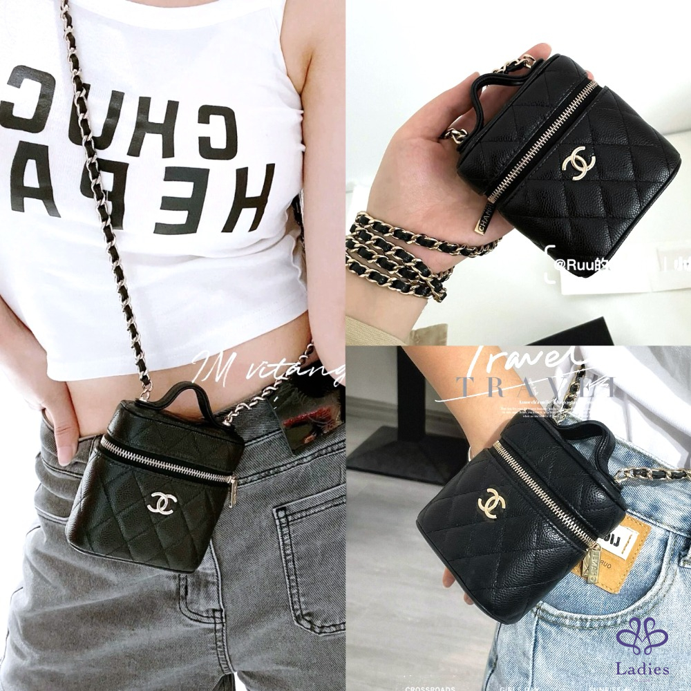 首頁 精品包包 Chanel 提把 煙盒包 黑金荔枝