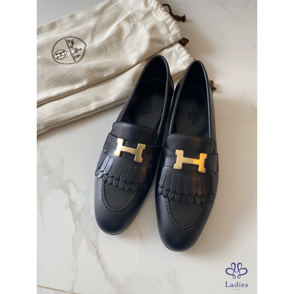 產品信息 Hermes 大H皮革流蘇涼鞋24800元 95新,購價記得38000多元(有誤請指正) ????尺寸:36 1/2,版大,我37號/23.5公分腳穿還有些空間(圖2是同款涼鞋實穿照網路抓圖) ????大H銀釦很亮????️刮痕 皮革????️污損,只出場ㄧ次鞋況近新 已加前墊、穿起來更有避震效果 附件:原廠防塵袋X2+橘盒