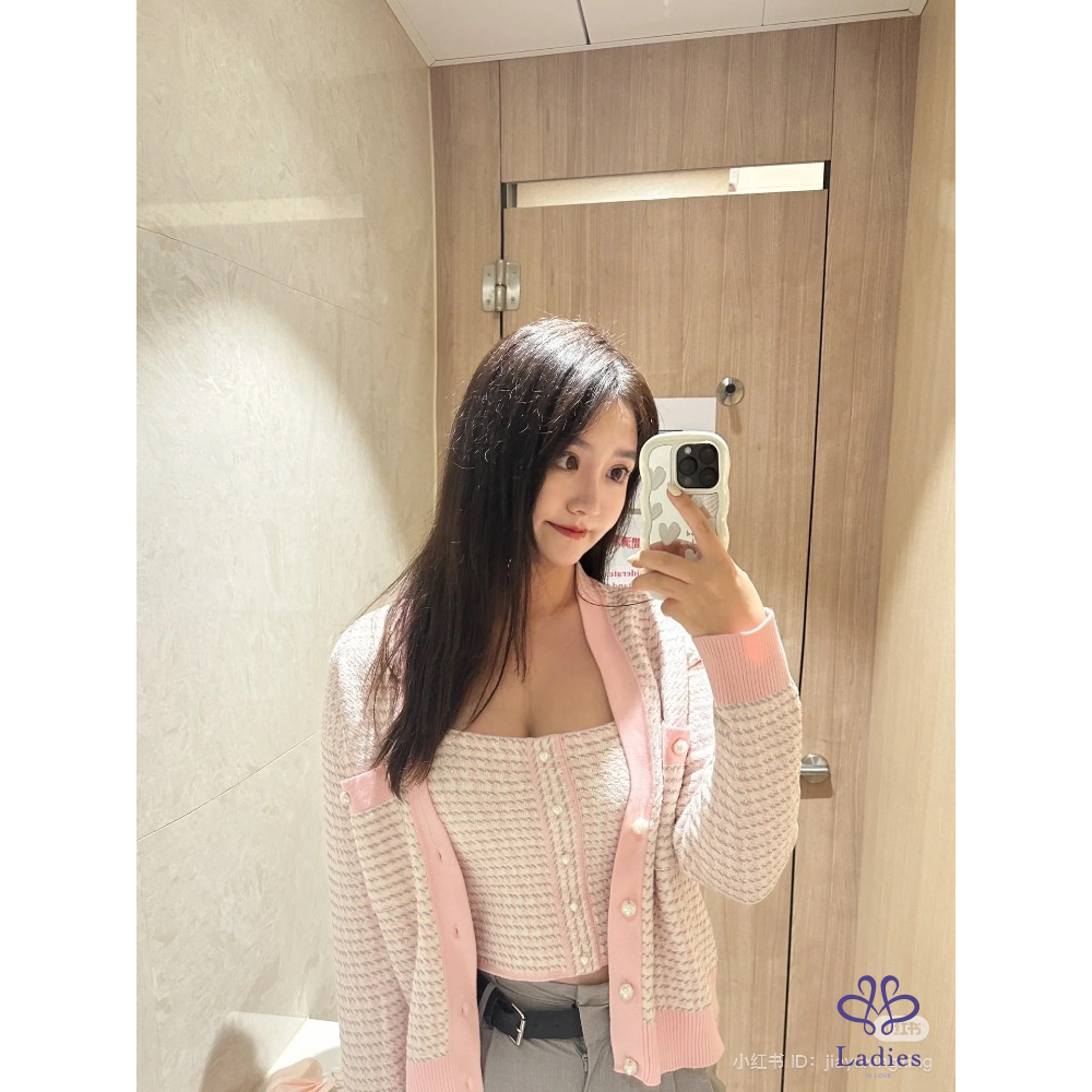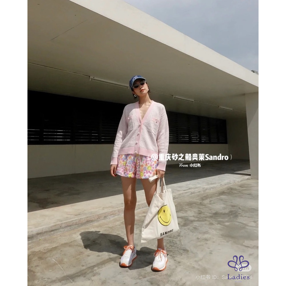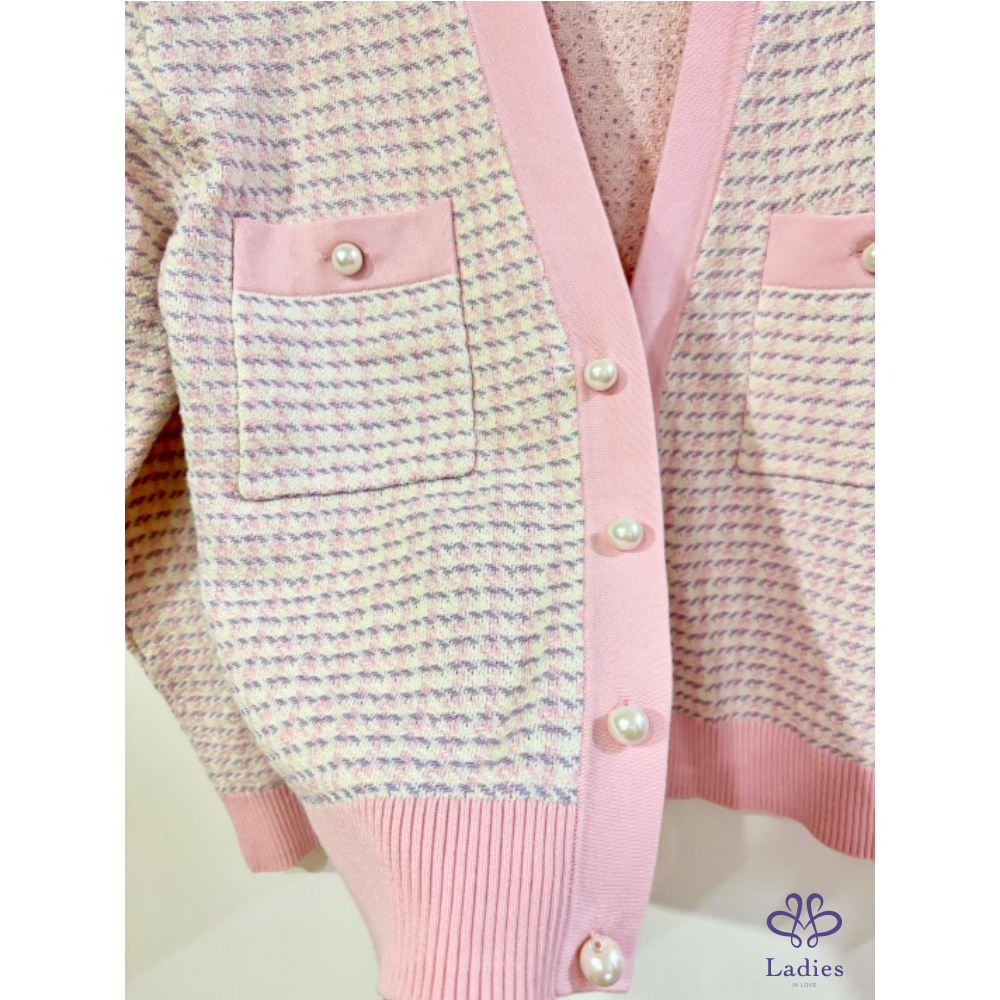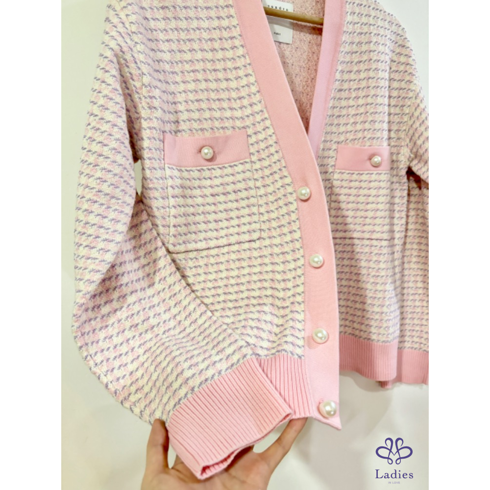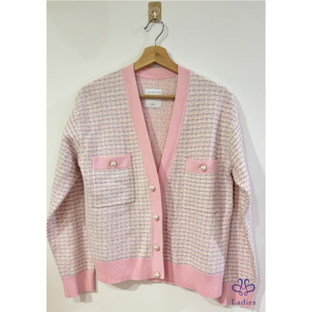 首頁 精品服飾 SANDRO 小香風 粉紫 千鳥紋珍珠開襟外套(早秋薄款)