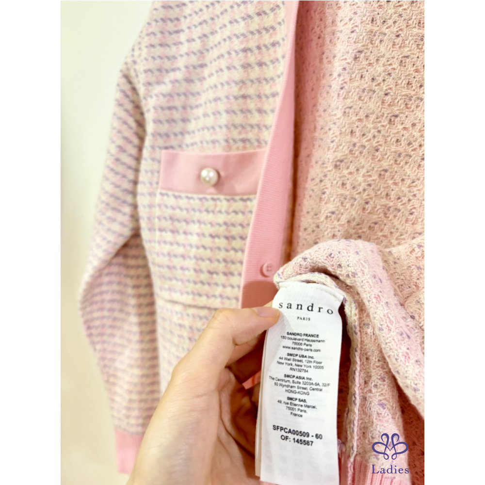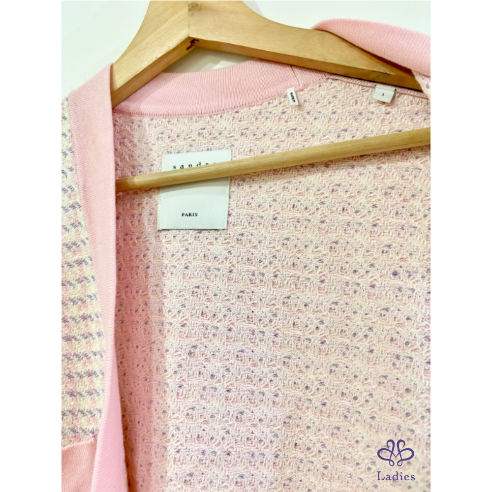 SANDRO 小香風 粉紫 千鳥紋珍珠開襟外套(早秋薄款)