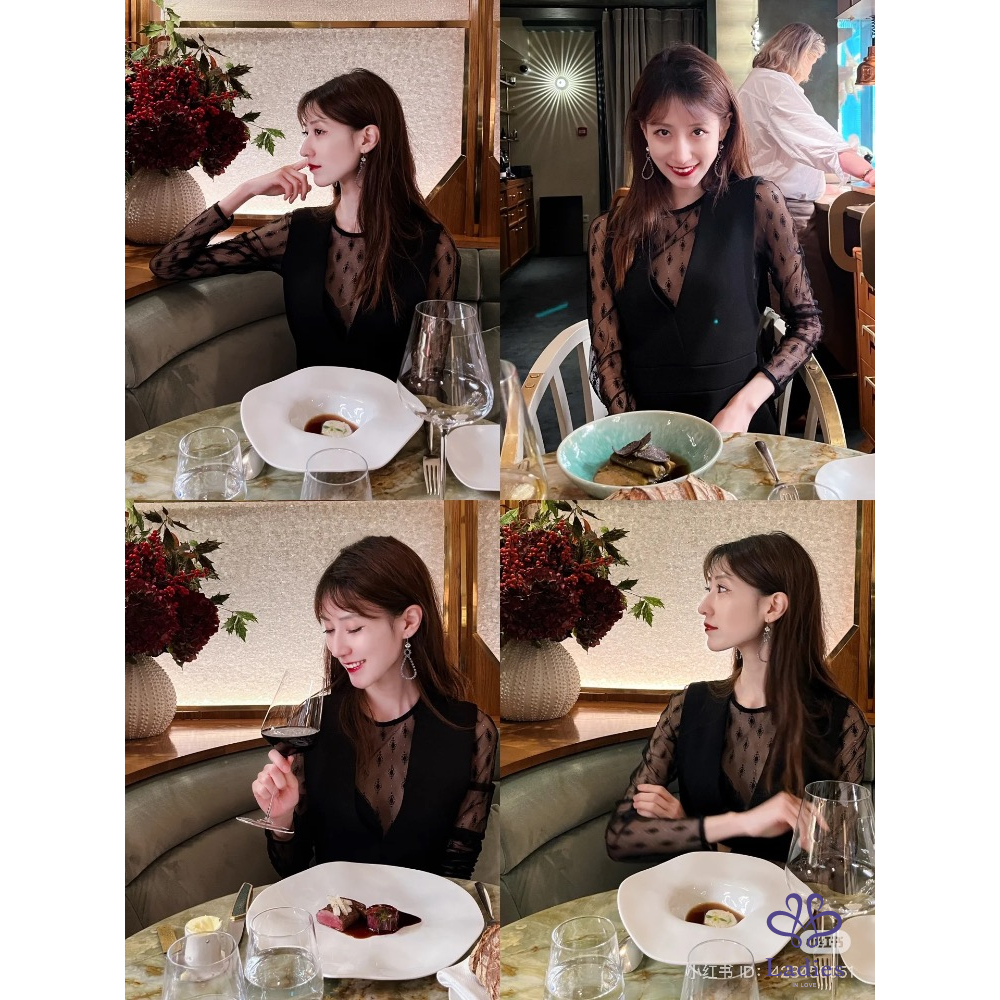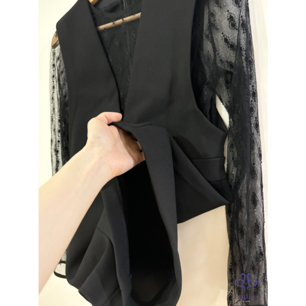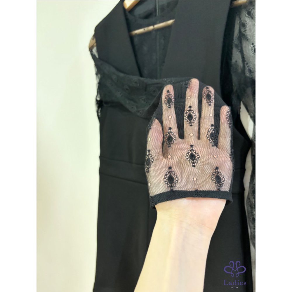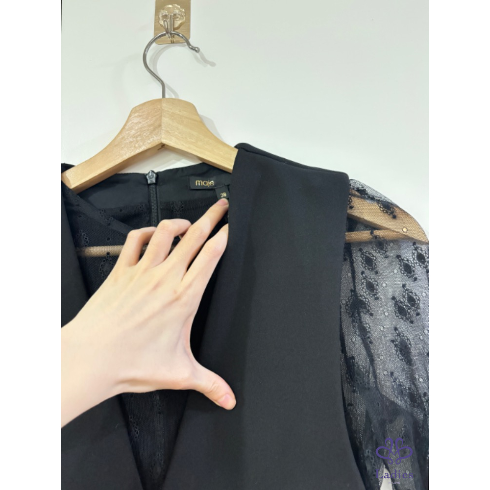 MAJE 法式 硬挺重磅透膚刺繡連身褲
