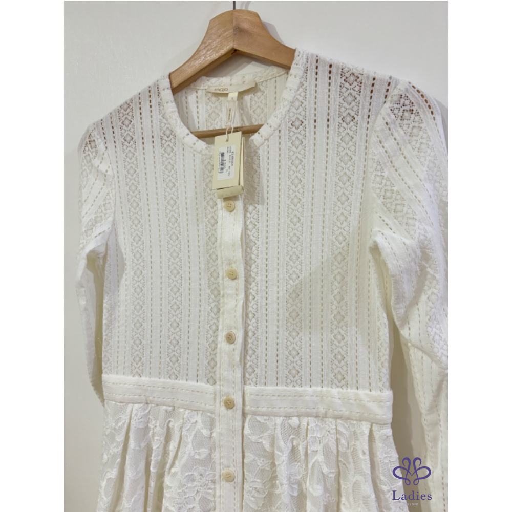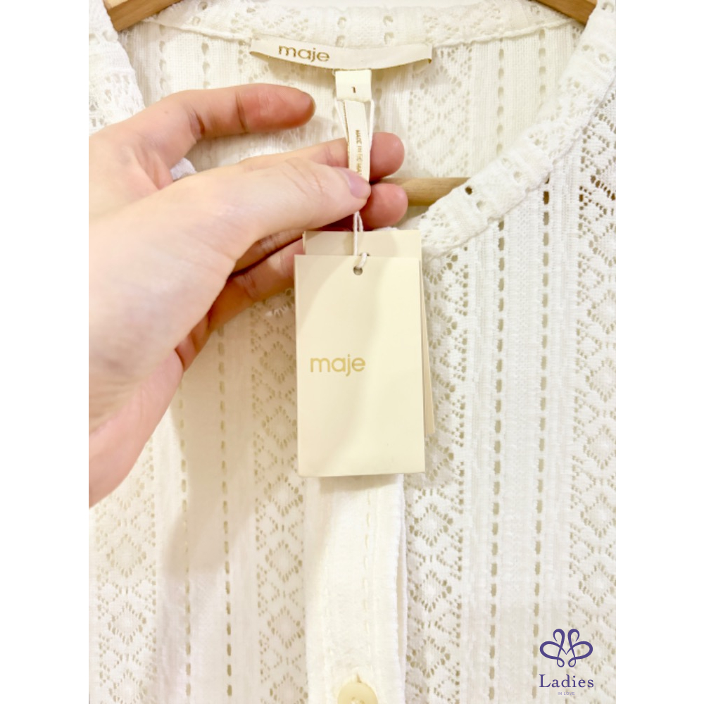 MAJE 奶油白 柔軟彈性七分袖雕花簍空針織洋裝