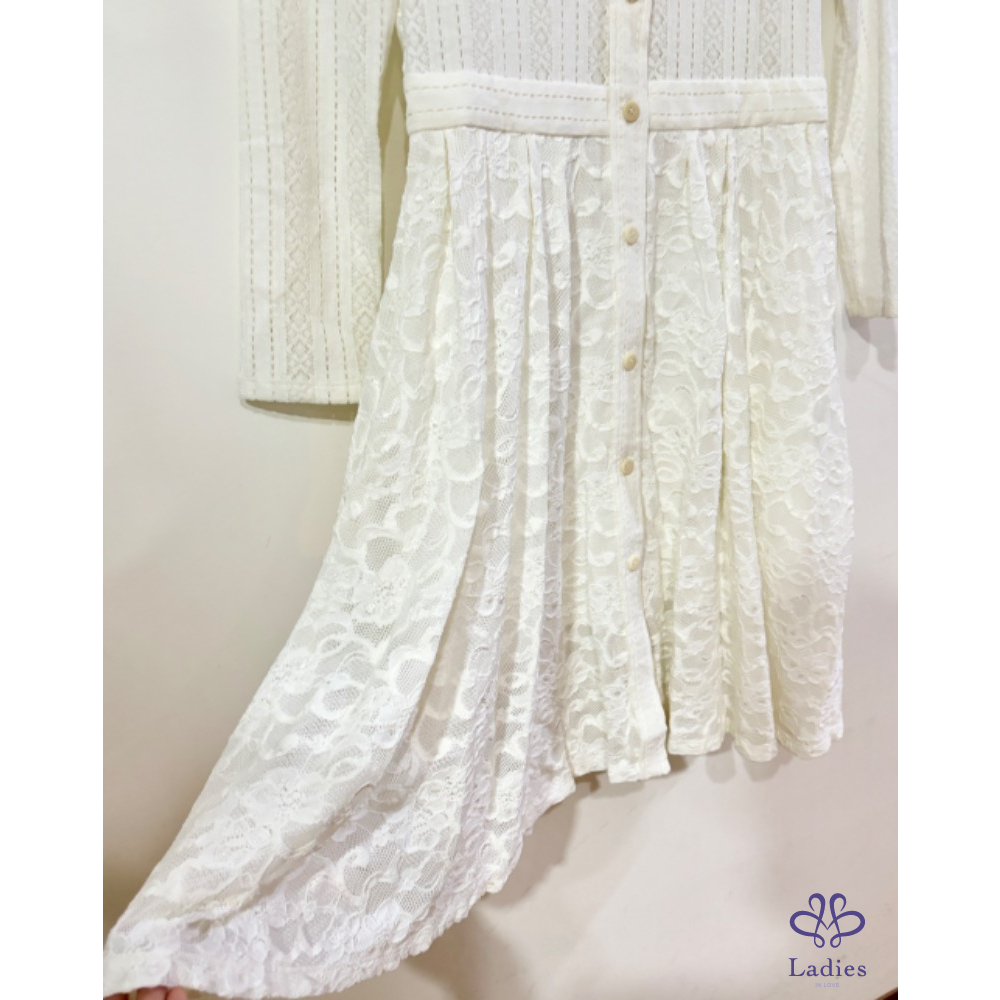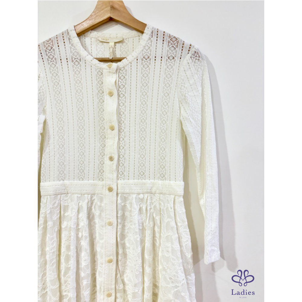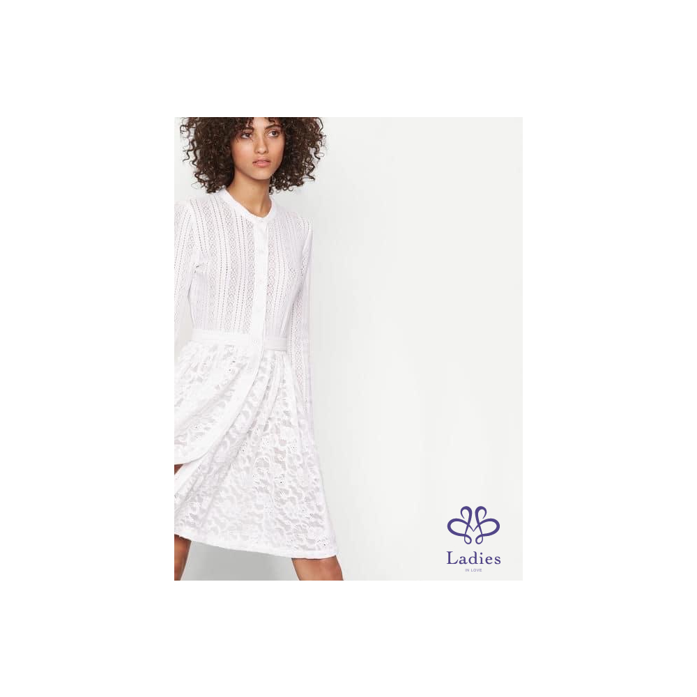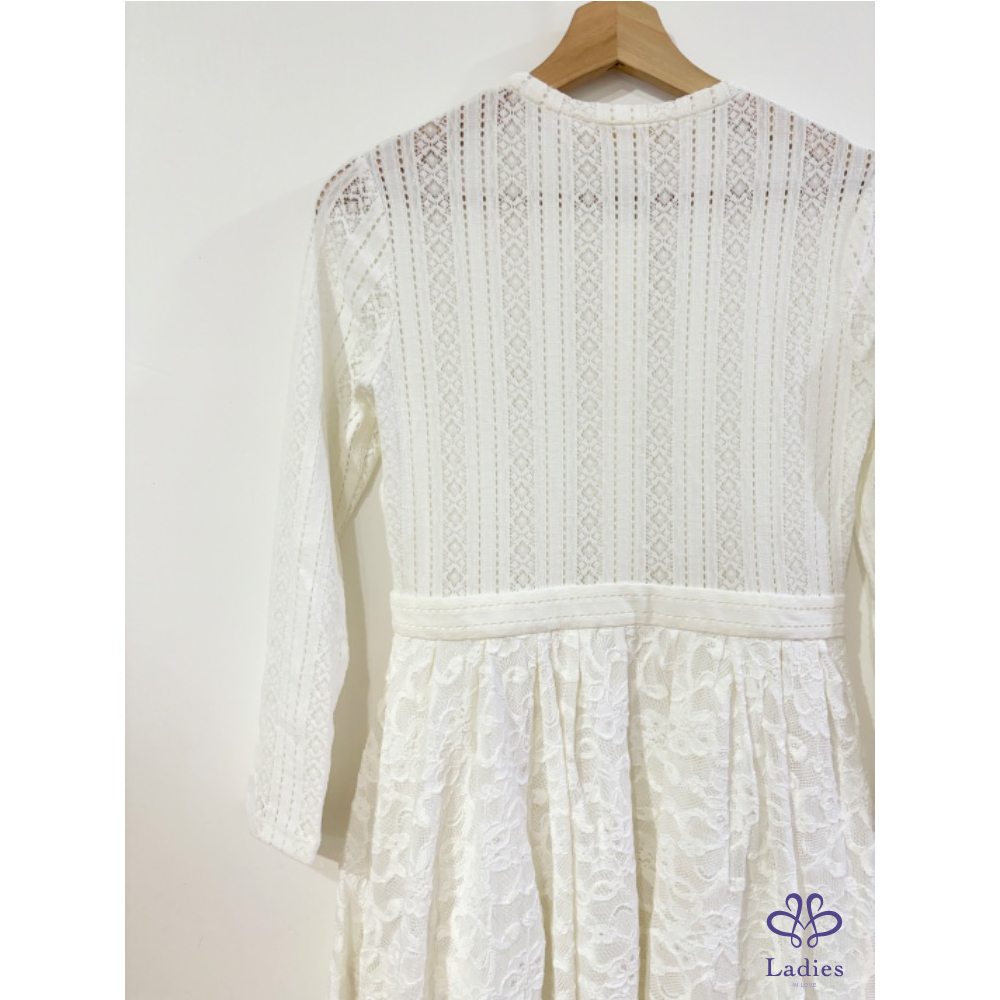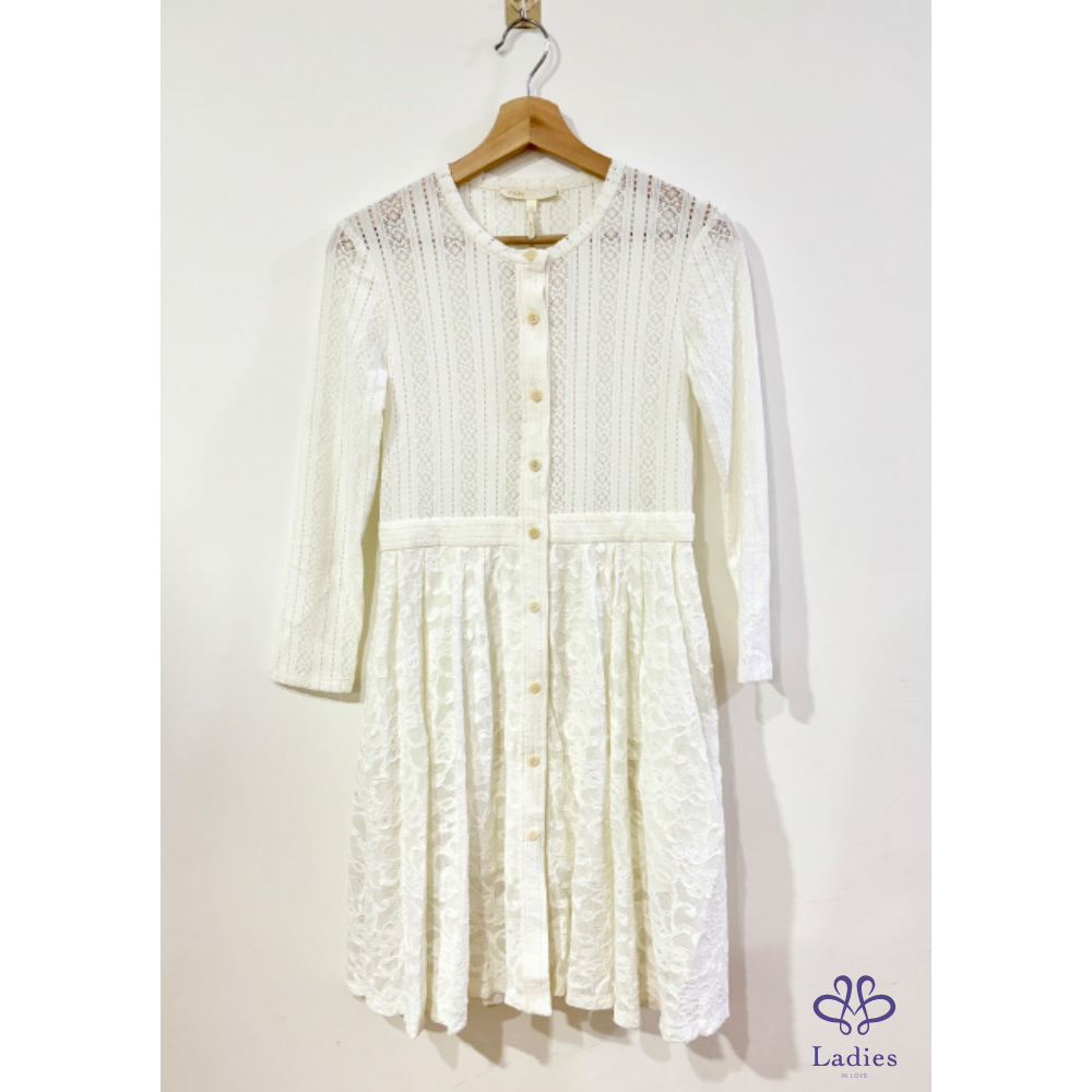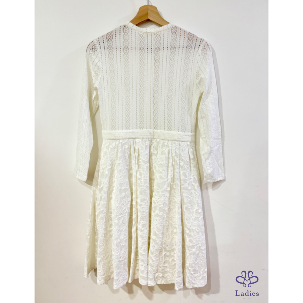 首頁 精品服飾 MAJE 奶油白 柔軟彈性七分袖雕花簍空針織洋裝