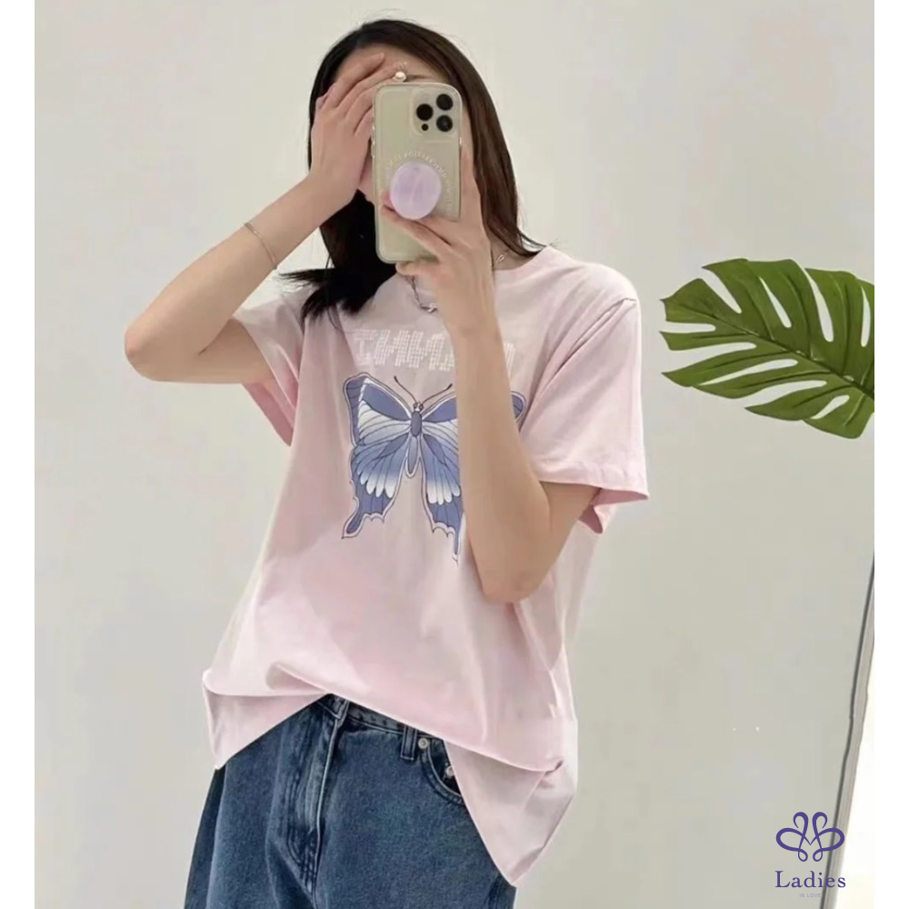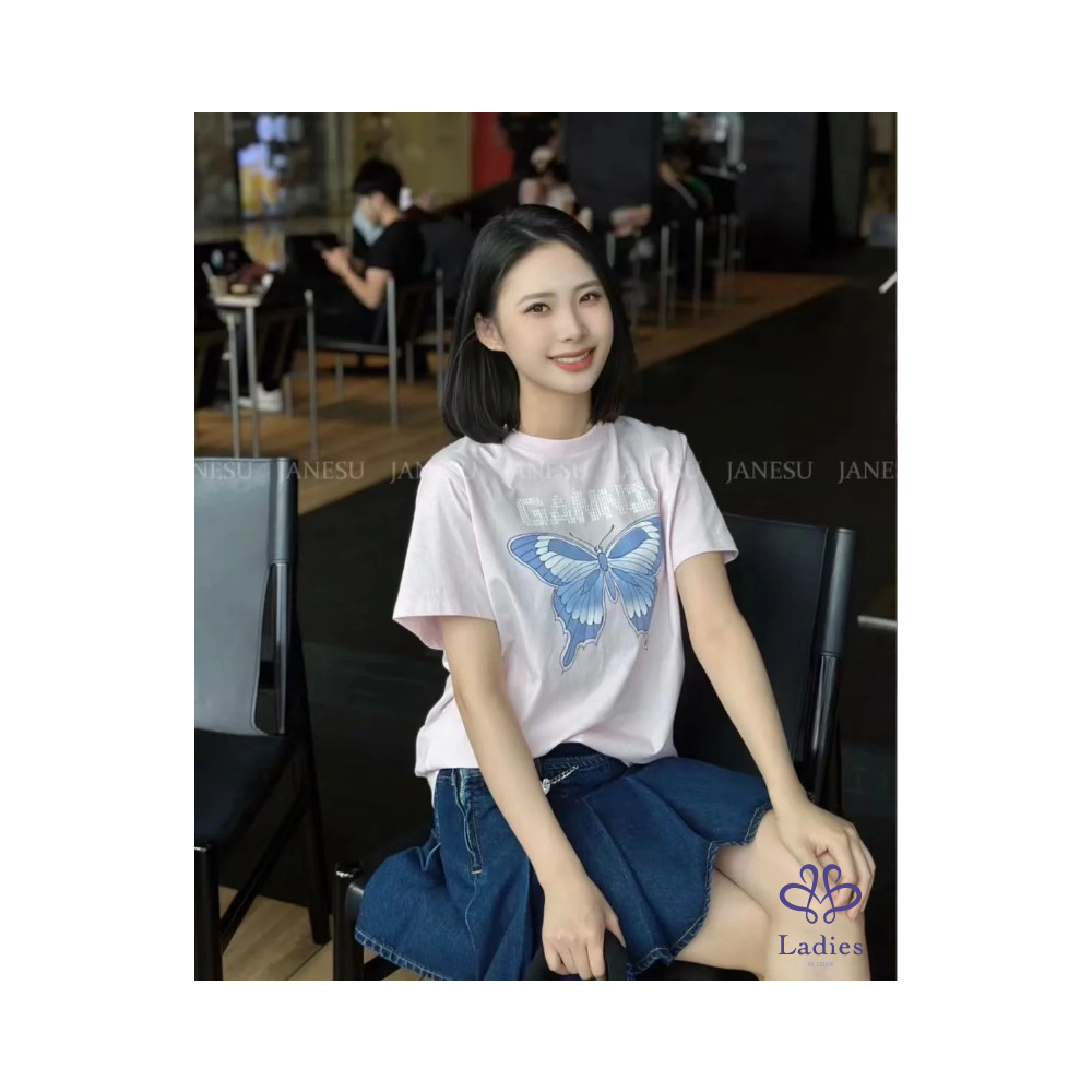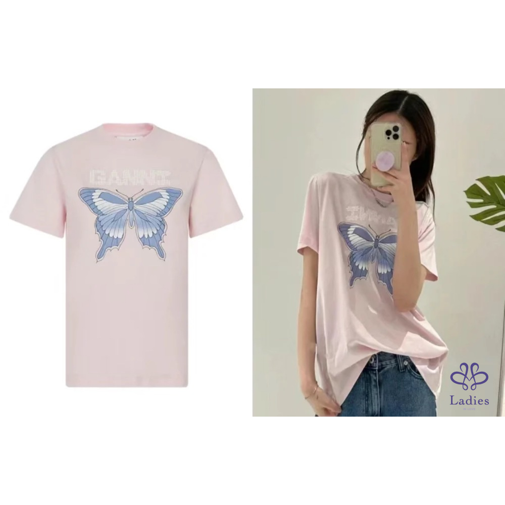 首頁 精品服飾 『全新』 Ganni 品牌字母蝴蝶粉色T