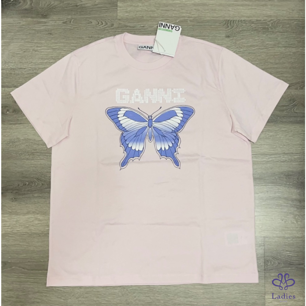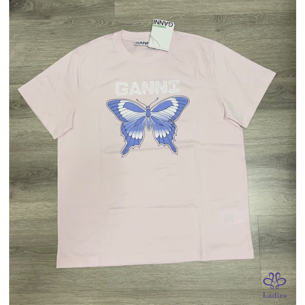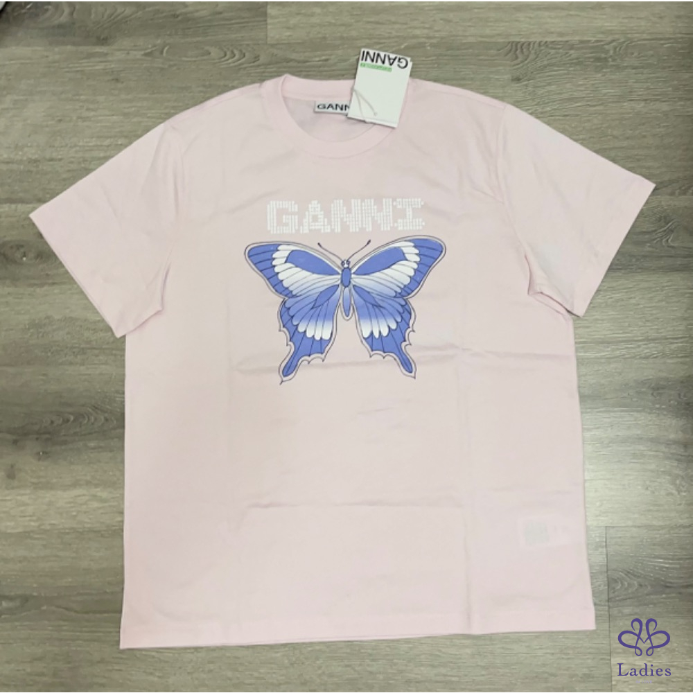 『全新』 Ganni 品牌字母蝴蝶粉色T