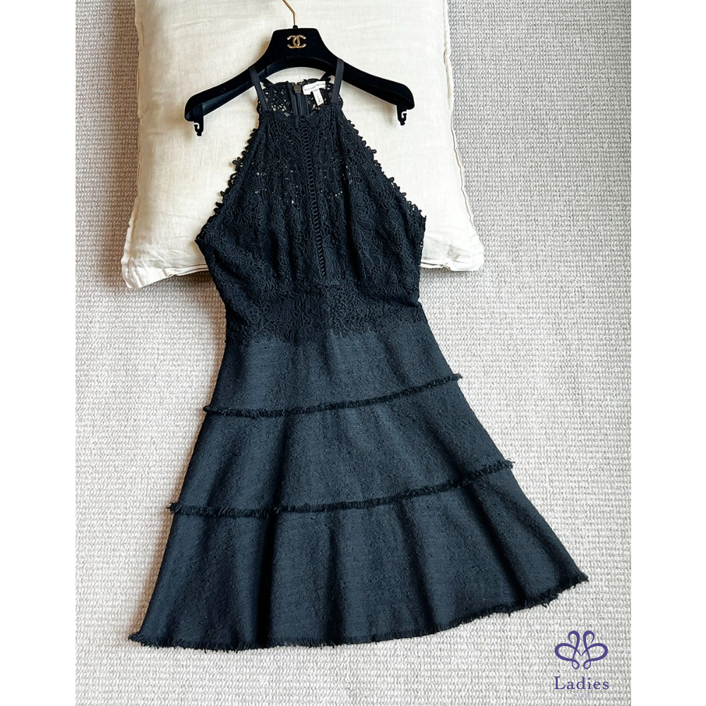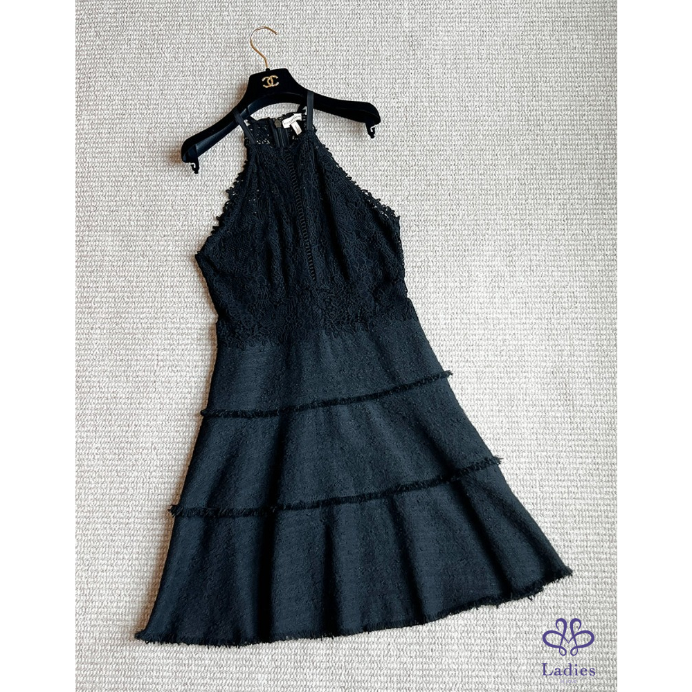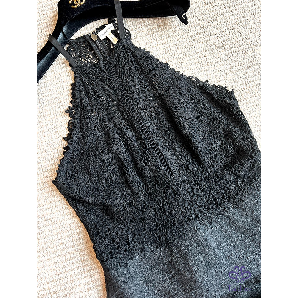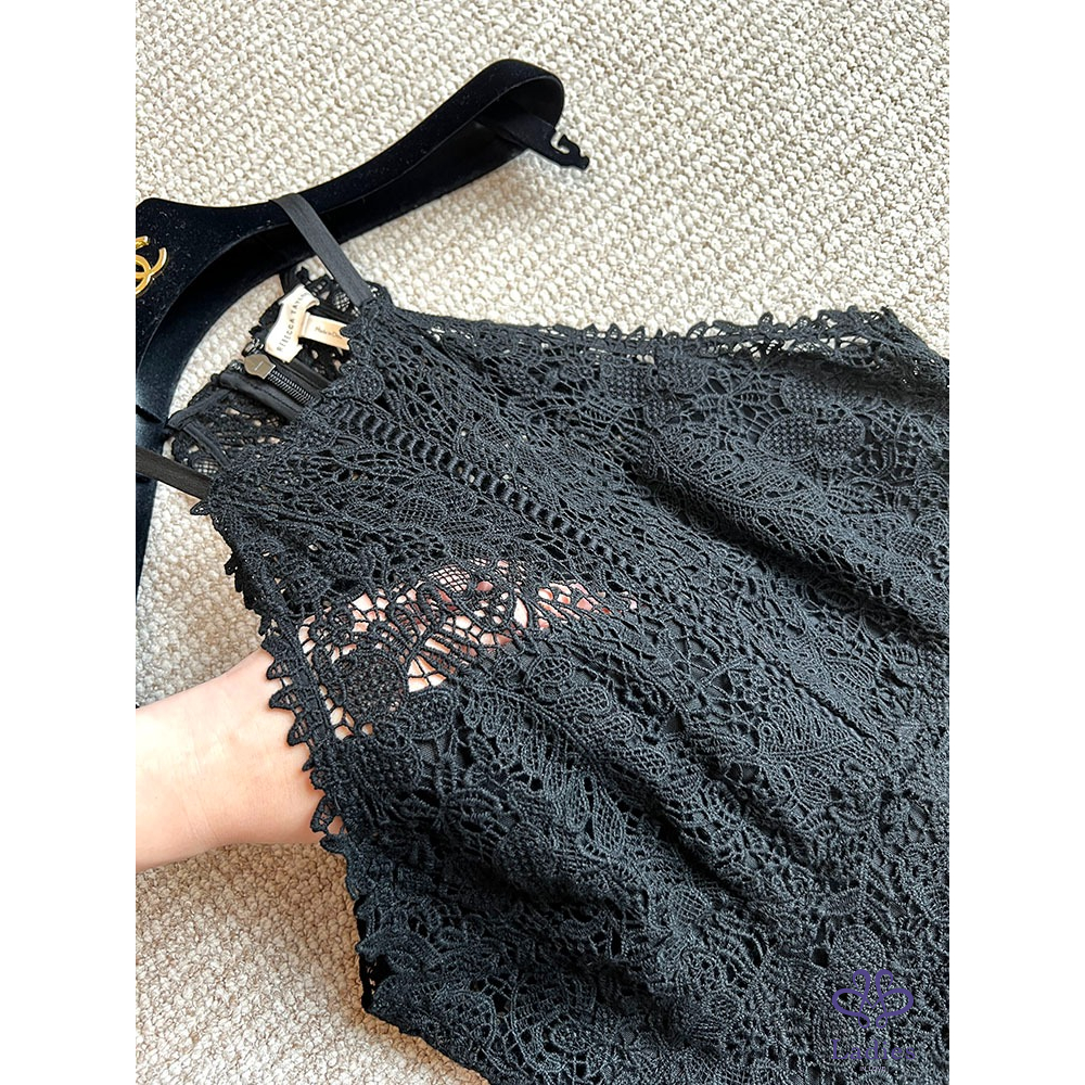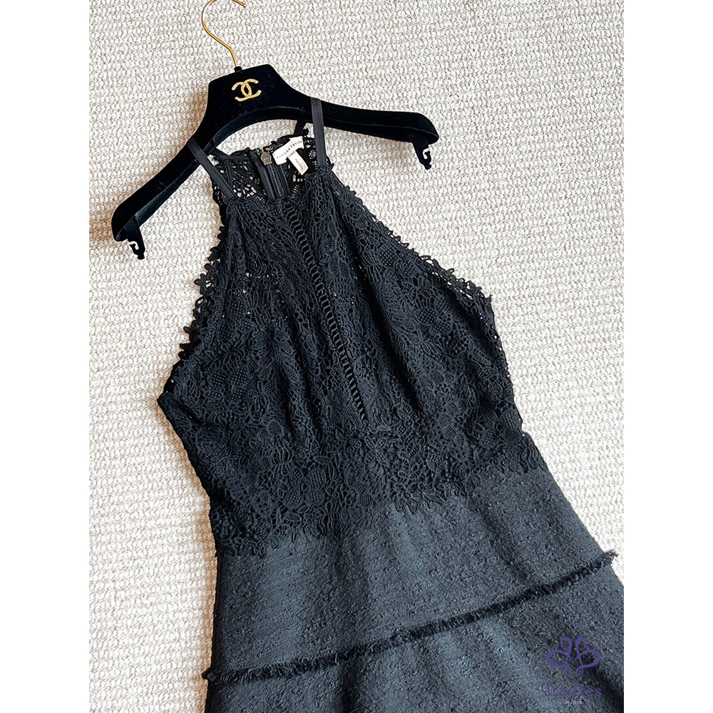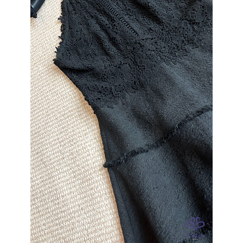 上半處是縷空重磅蕾絲, 下身為黑毛呢 / 整件超黑! 實體無泛白 .