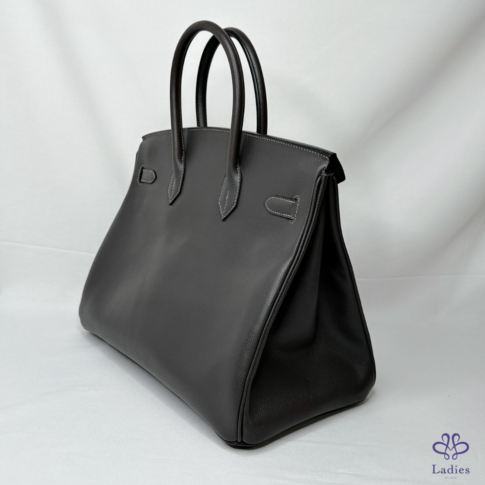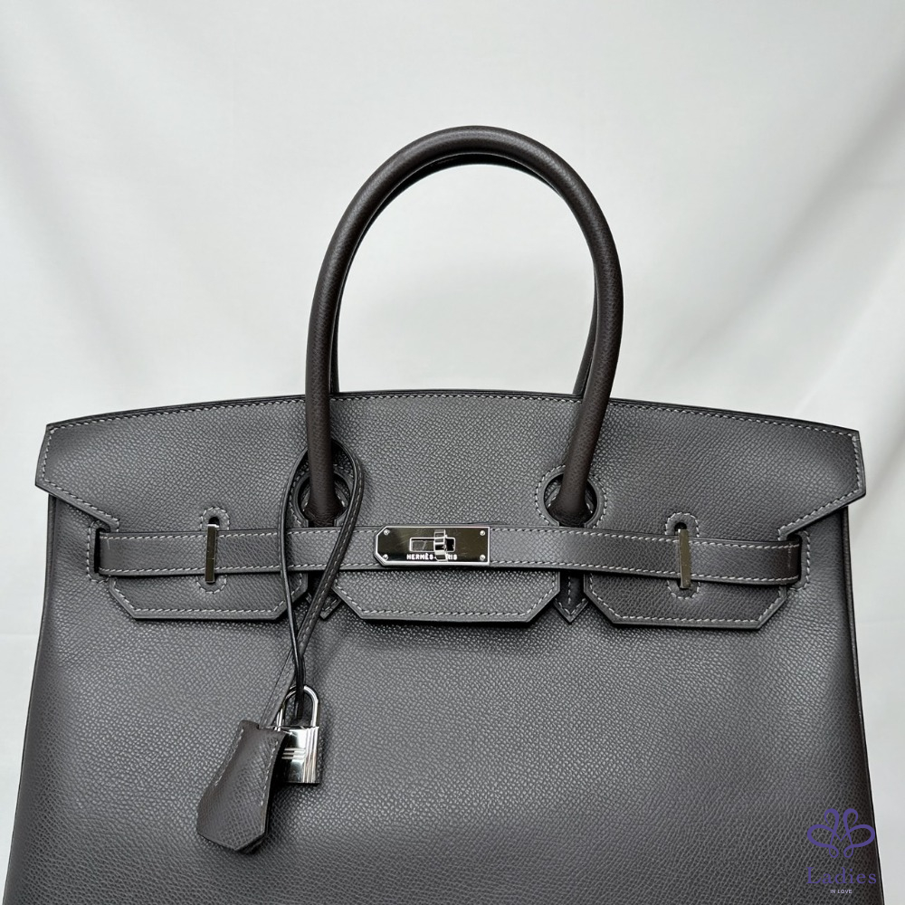 產品信息 【HERMES Birkin35柏金包】 #框I刻 #Epsom牛皮 大包控不能錯過 尤其超熱門銀扣 硬挺E皮扎實部鬆垮,防水防刮耐磨比togo皮輕盈 質感高端大包超推首選 男生入手柏金大包極其好看,董娘手拎35霸氣全場 整體包況約9成新,二手商品均有正常使用/存放痕跡 尺寸:35x18x25cm 附件:原廠盒、原廠防塵袋x2、原廠雨衣套、鎖匙組 #A113080201