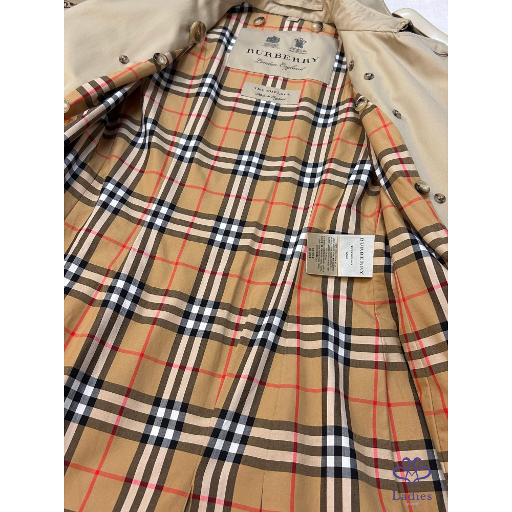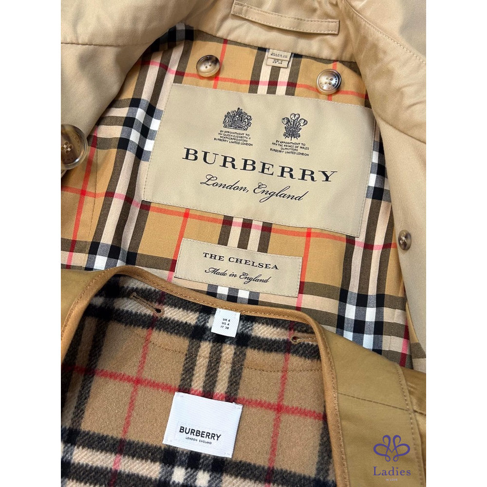 ????介紹:標誌性Burberry Trench 風衣,選用防護性棉質嘎巴甸面料打造,於英格蘭工坊精製而成。内側為Burberry 格纹棉質面料,于於1920 年起便廣泛用於品牌外套精品内襯。切爾西風衣来自品牌 Heritage 系列,融入嵌入式直袖設計,呈現修身版型。